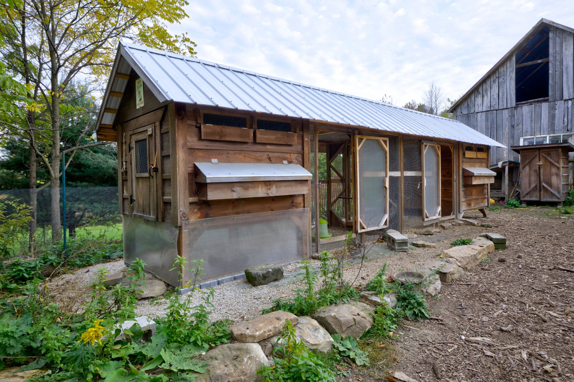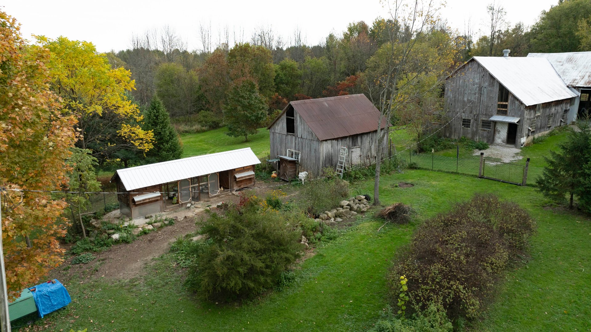 La grange d'origine à poteaux et poutres a été entièrement restructurée et solidifiée, ce qui en fait un bâtiment très fonctionnel avec un espace atelier, un hangar à outils pour l'équipement et une escalier pour accéder au rangement au 2ème étage.