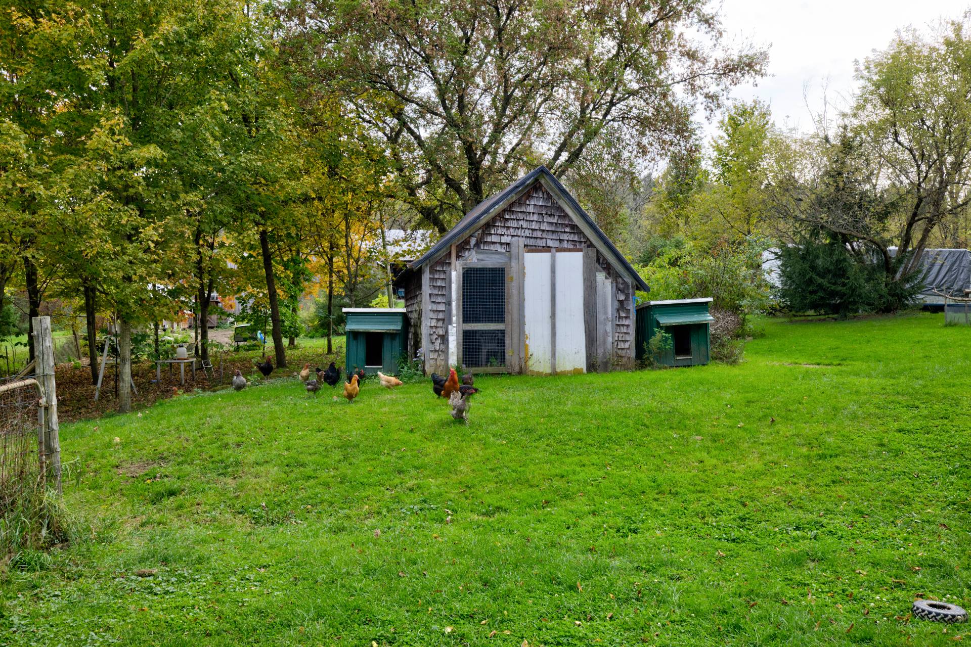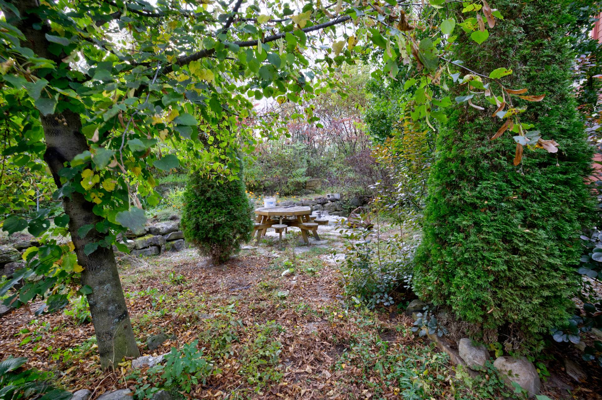 Champs verts cultivables, forêt mixte mature avec sentiers entretenus pour promenades, ski de fond ou randonnées en raquettes.