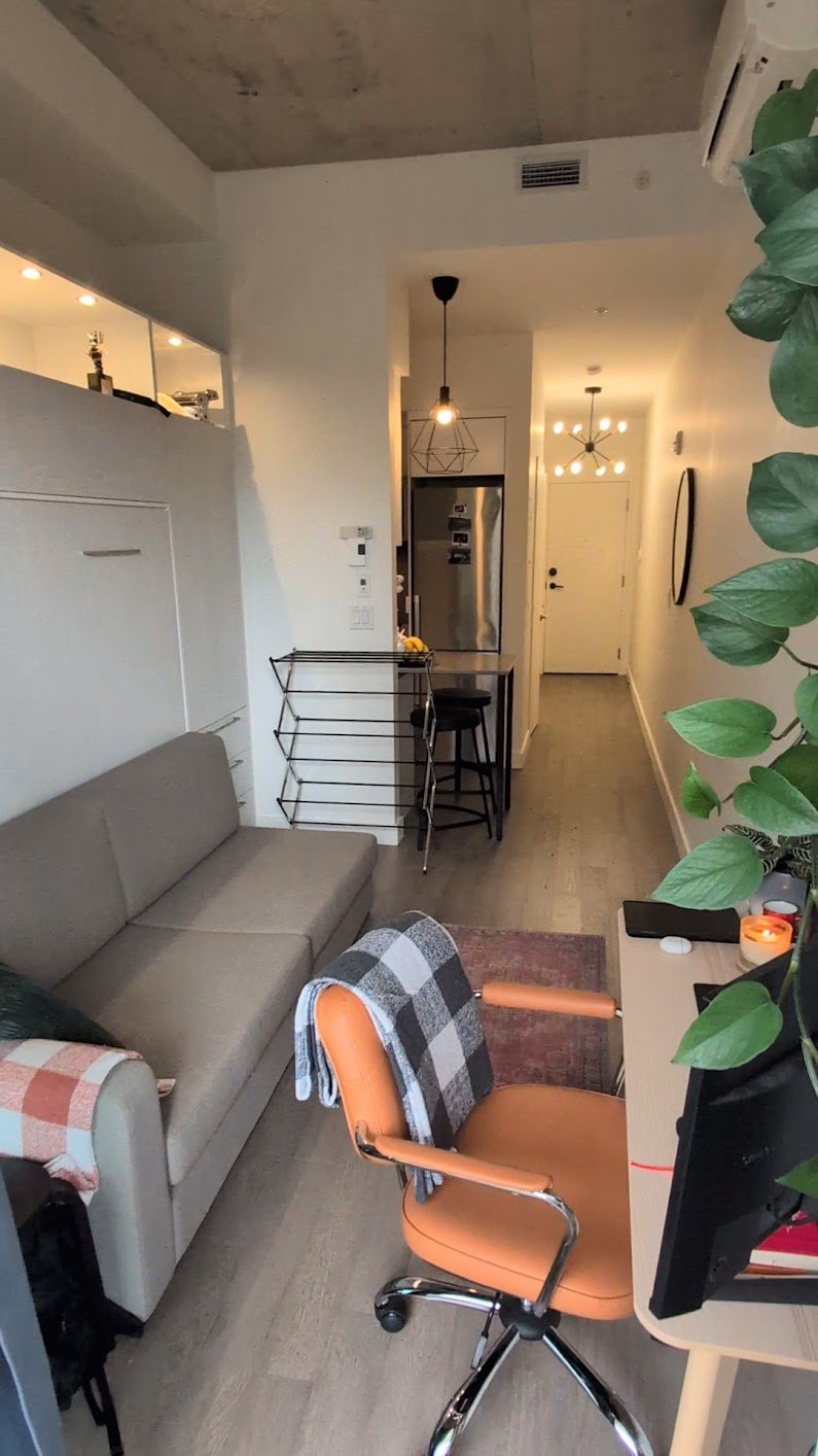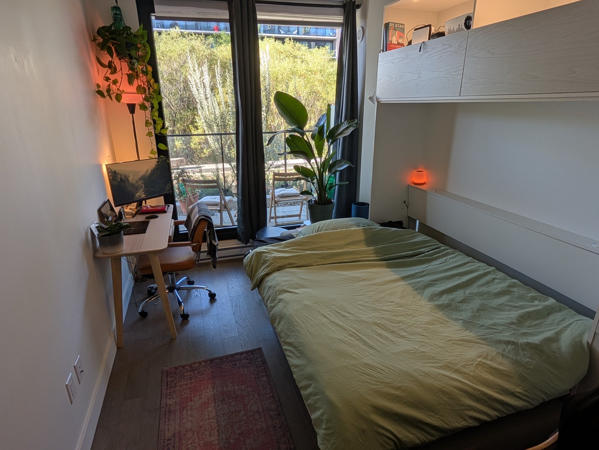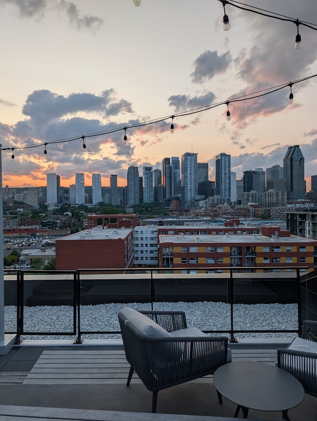 Cession de bail -- Studio moderne et lumineux au coeur de Griffintown, à quelques pas du canal Lachine. Cuisine et salle de bain entièrement équipées, laveuse/sécheuse intégrée, climatisation, balcon côté verdure et lit escamotable. Immeuble calme avec gym complet, centre multisport, terrasse sur le toit avec piscine et vue sur le centre-ville, espace de co-travail, salle de conférence et rangement à vélos. Emplacement idéal près du marché Atwater, restos et transports.