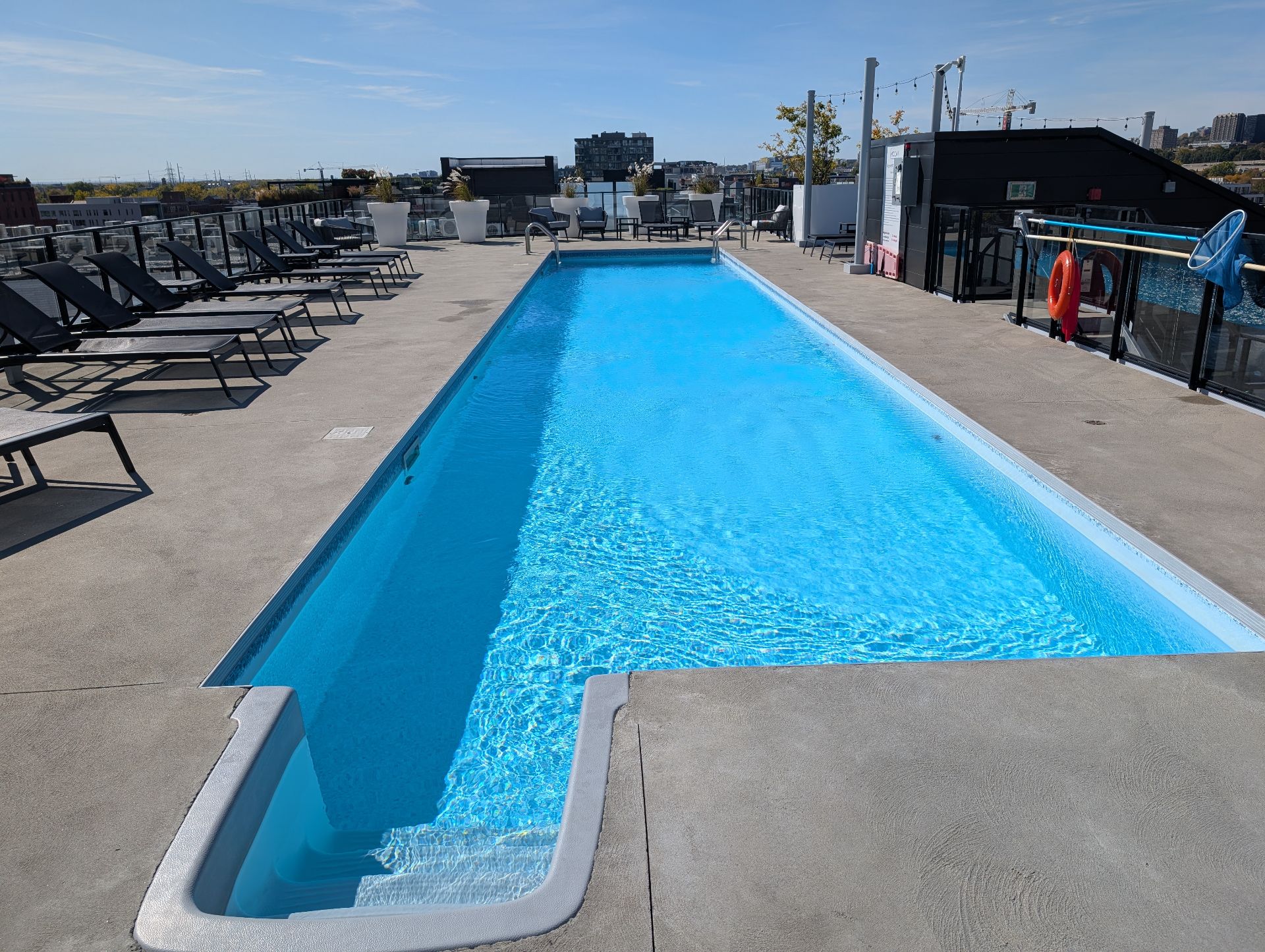 -- Magnifique terrasse sur le toit avec piscine et vues imprenables sur le centre-ville.