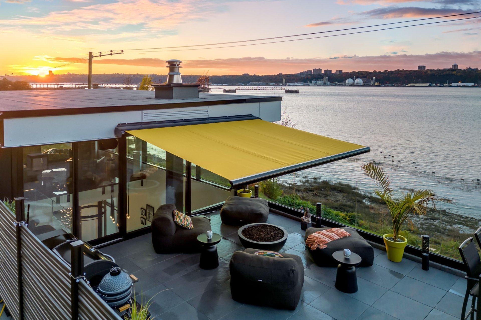 Maison Penthouse. Imagination et audace sont à l'origine de la création de cette résidence de prestige au bord du fleuve. Avec sa façade tout en verre, les amoureux de l'eau en vous auront l'impression de remonter le courant à chaque marée et de redescendre pour s'échouer paisiblement face à Québec en contemplant le soleil se coucher. Passionnés de design, les propriétaires ont pensé à chaque petit détail pour profiter en tout confort de ce paysage si apaisant. Ascenseur de verre, plancher radiant, stores motorisés, walk-in dissimulé derrière des finitions d'ébénisterie laquée, cuisine avec électroménager haut de gamme et ilot comprenant un bar encastré. Nulle part dans la maison vous ne serez privé du fleuve qui coule à vos pieds. Du lit de la chambre principale, à votre baignoire, au boudoir ou encore à la terrasse au toit, vous serez toujours émerveillé de ce paysage toujours en mouvement.