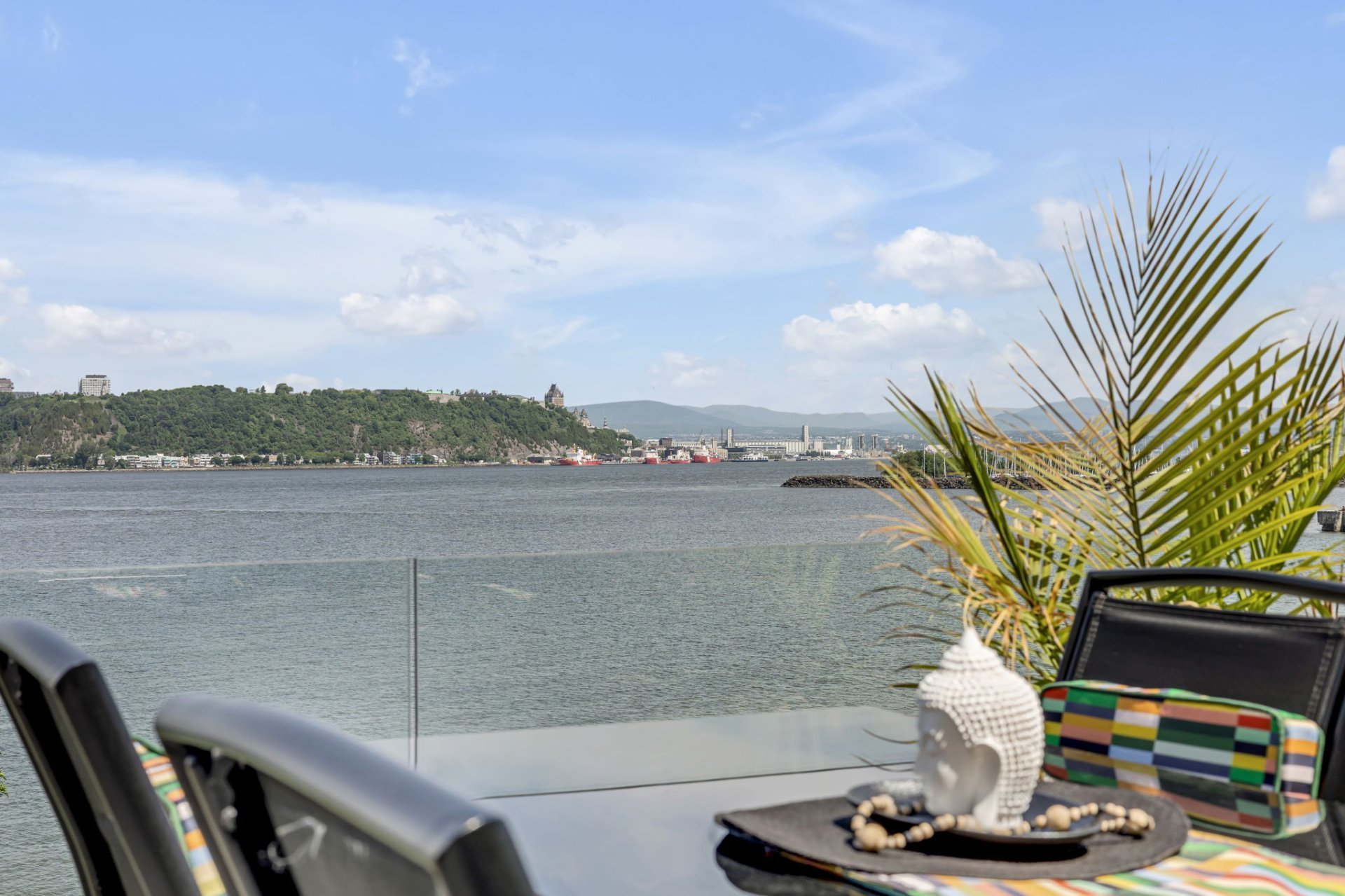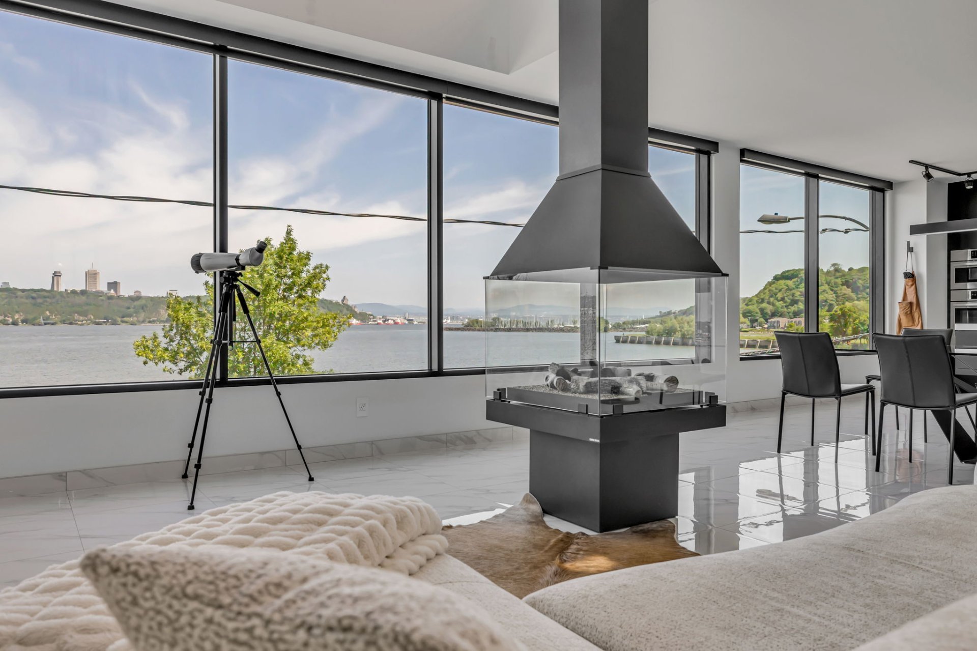 Luxueuse "Maison Penthouse" sans voisin!... Sans tracas!... Les amoureux de l'eau auront l'impression de remonter le courant à chaque marée pour venir s'échouer paisiblement face à Québec au soleil couchant. Chaque petit détail a été pensé pour profiter en tout confort de ce paysage si apaisant. Ascenseur de verre, plancher radiant, stores motorisés, finitions d'ébénisterie laquée, électroménager haut de gamme et ilot comprenant un bar encastré. Du lit de la chambre principale, à votre baignoire, au boudoir ou encore à la terrasse au toit, vous serez toujours émerveillé de ce paysage toujours en mouvement.