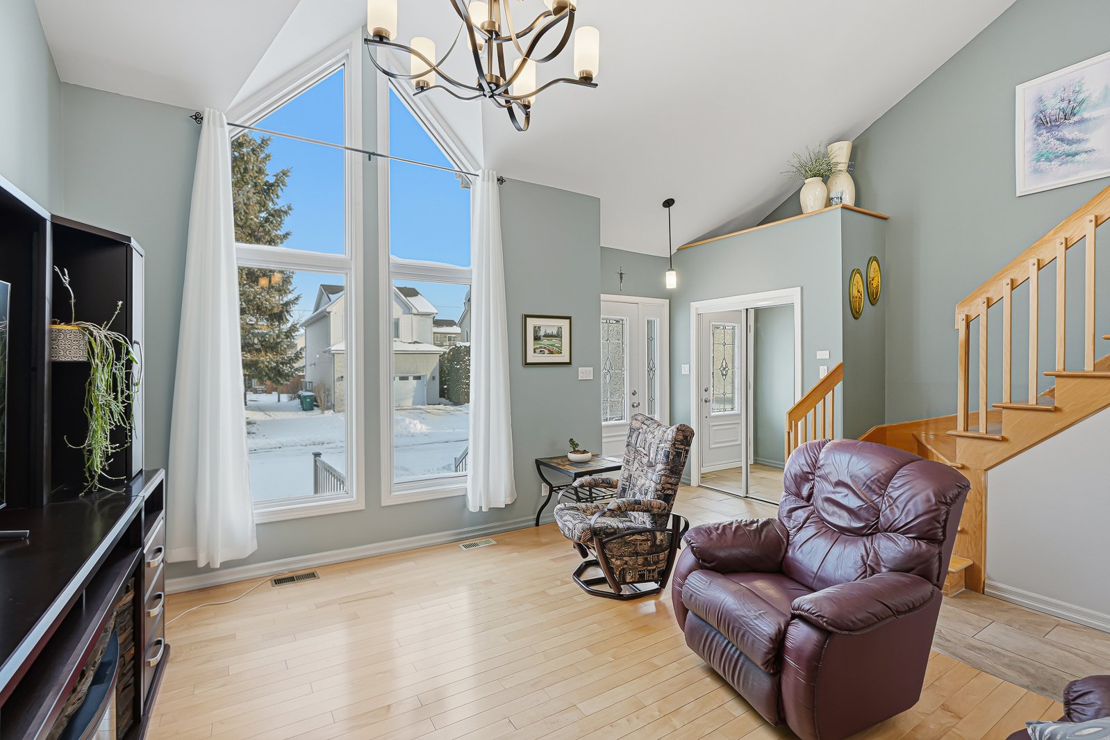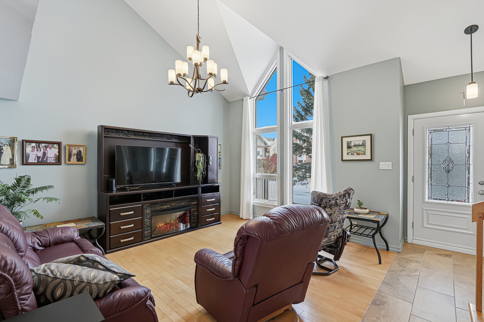 Située dans un secteur recherché de Chambly, cette élégante propriété de 3 chambres avec garage intégré séduit par son architecture distinctive et ses espaces lumineux. Dès l'entrée, le plafond cathédrale et la généreuse fenestration créent une impression de grandeur et de convivialité. Le salon chaleureux s'ouvre sur une aire de vie harmonieuse, idéale pour recevoir. La cuisine fonctionnelle, dotée d'armoires en bois et d'un îlot central avec comptoir de granit, communique avec la salle à manger menant à la terrasse arrière. Le sous-sol offre la possibilité d'ajouter une chambre supplémentaire selon les besoins.