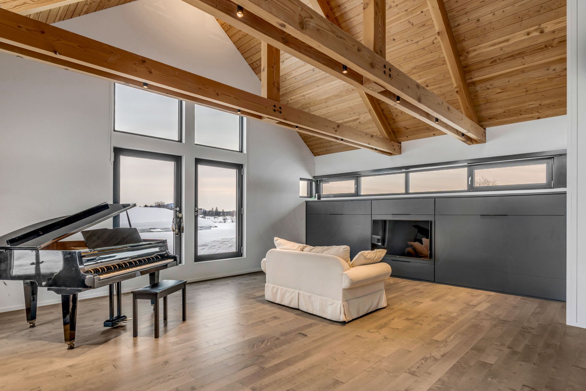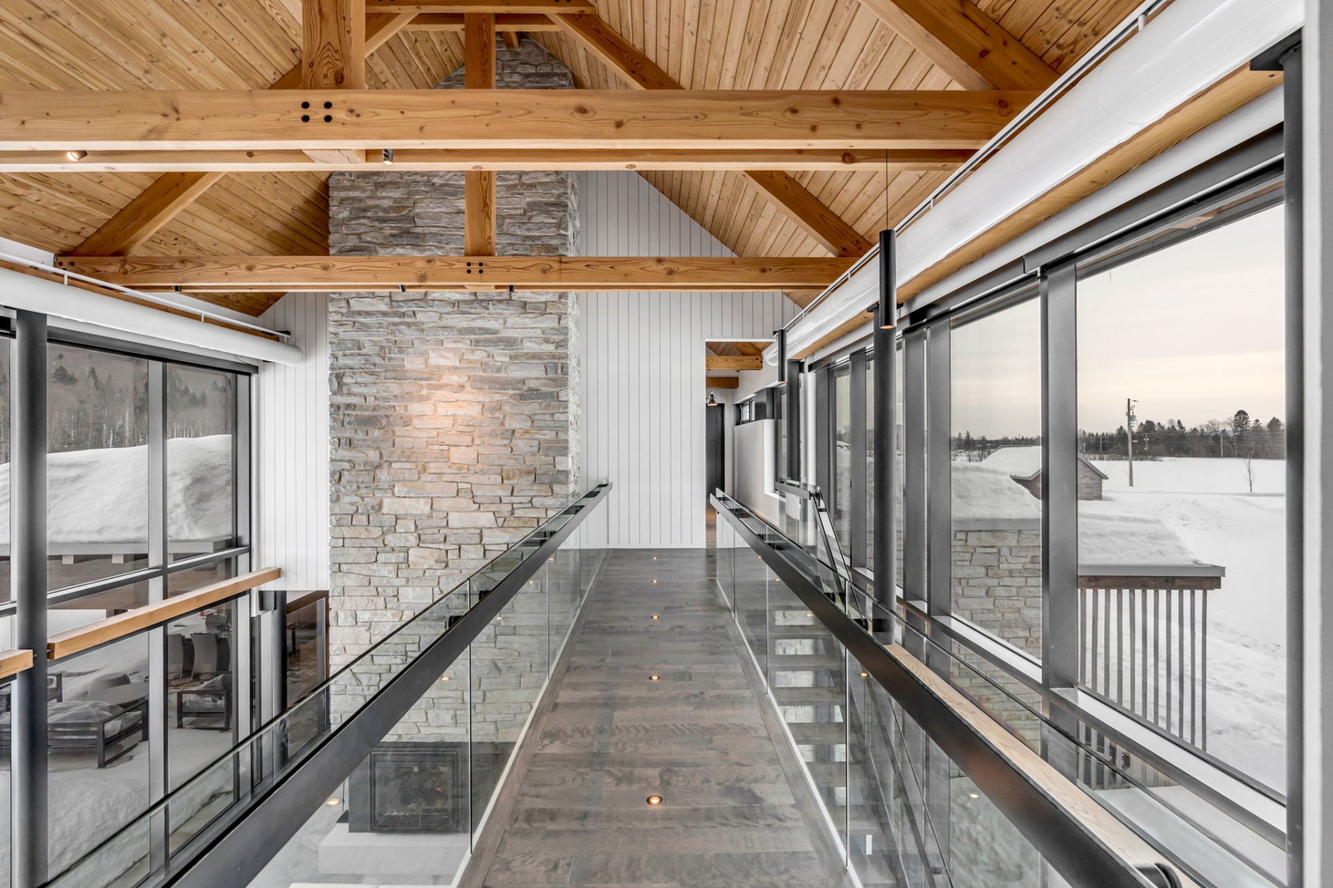 Monumental domaine privé pour GENTLEMAN FARMER. Demeure de 10 000 pc habitables 30 pièces incluant MAN CAVE ludique, construction Timber frame 2020 sur 7,5 hectares agricoles parfaits pour élevage ou centre équestre. Terre boisée vallonnée, caressée par une rivière paisible. L'architecture de Pierre Martin, inspirée de la maison longue Wendat, et le design inédit de Sylvain Tousignant révèlent toute leur magie. Terrasse couverte avec cuisine extérieure, cinéma maison, garage triple, staff house, tout pour vivre en harmonie avec ce cadre bucolique à 30 minutes du centre-ville. La mâchoire se décroche et la joie de vivre s'empare de vous !