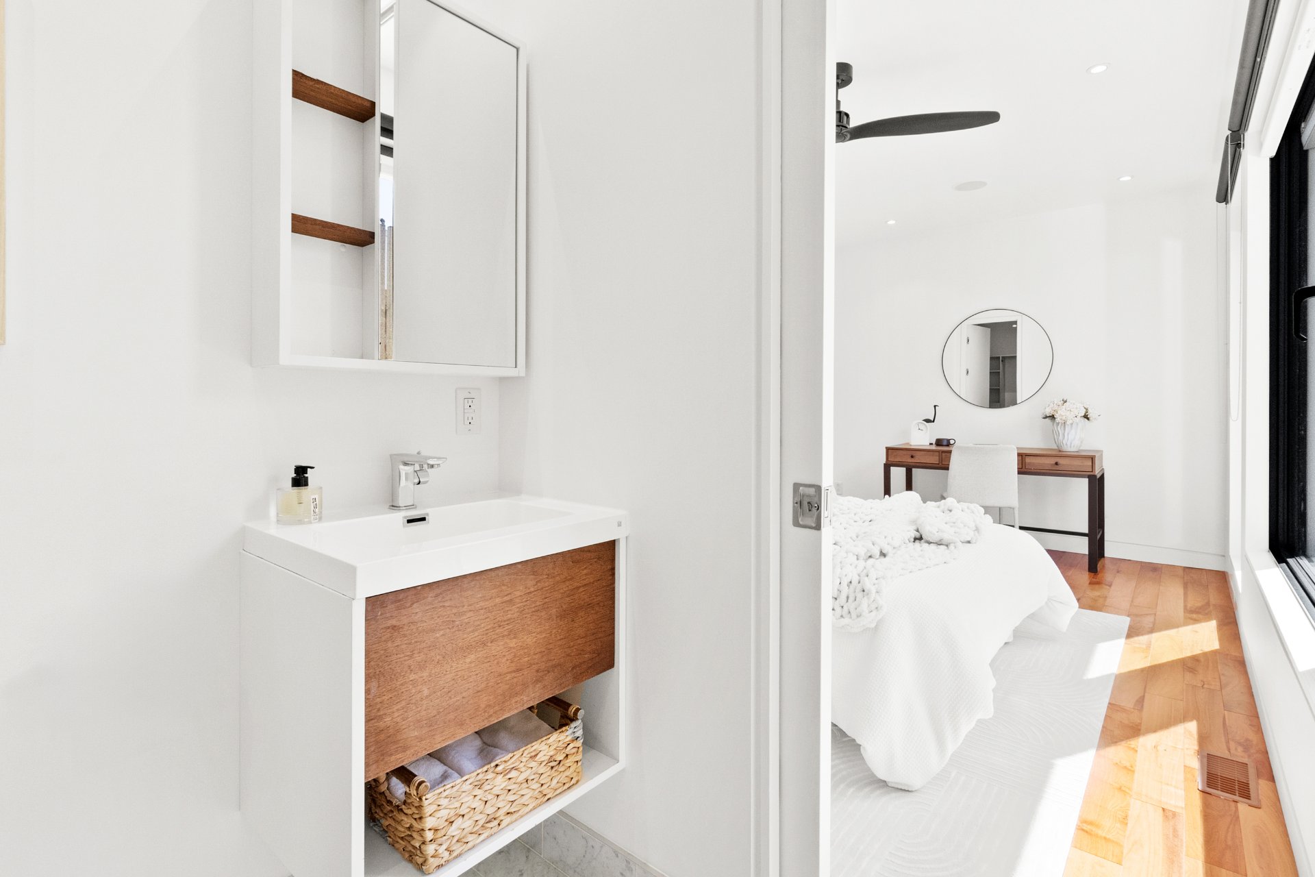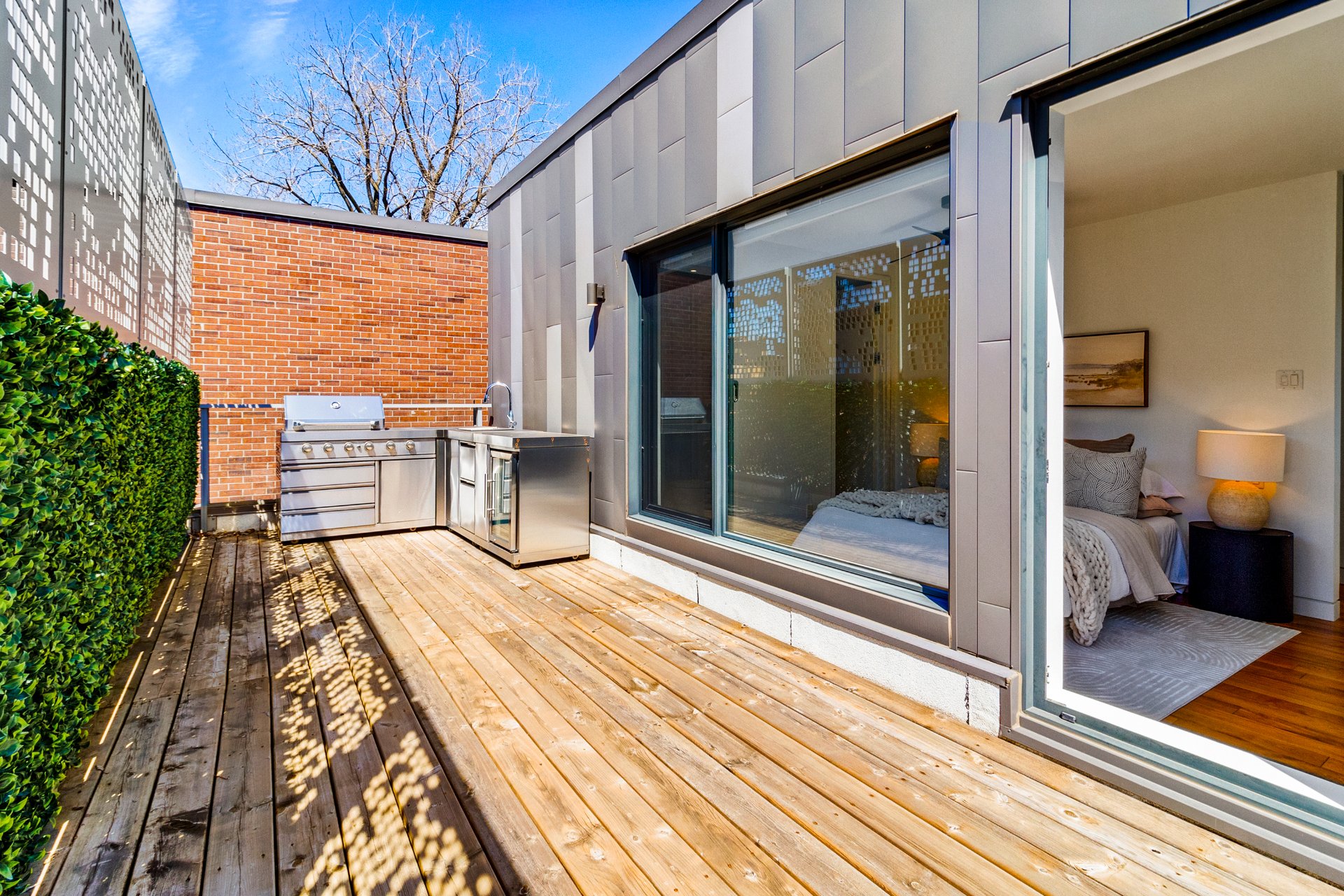 Le dernier niveau est entièrement dédié à la suite principale, offrant un walk-in, une salle de bains attenante avec plancher chauffant et un accès direct à une vaste terrasse privée aménagée avec cuisine extérieure incluant BBQ, évier et réfrigérateur.