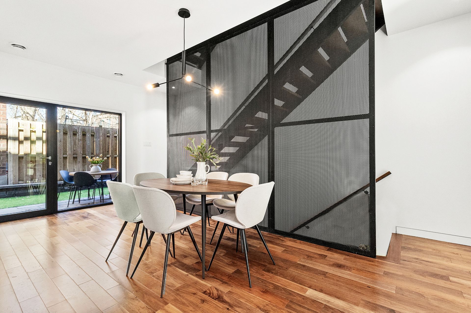 Ce projet intime de six maisons de ville offre un environnement paisible, en retrait de la rue, accessible par un passage piétonnier et organisé autour d'un jardin commun soigneusement aménagé.