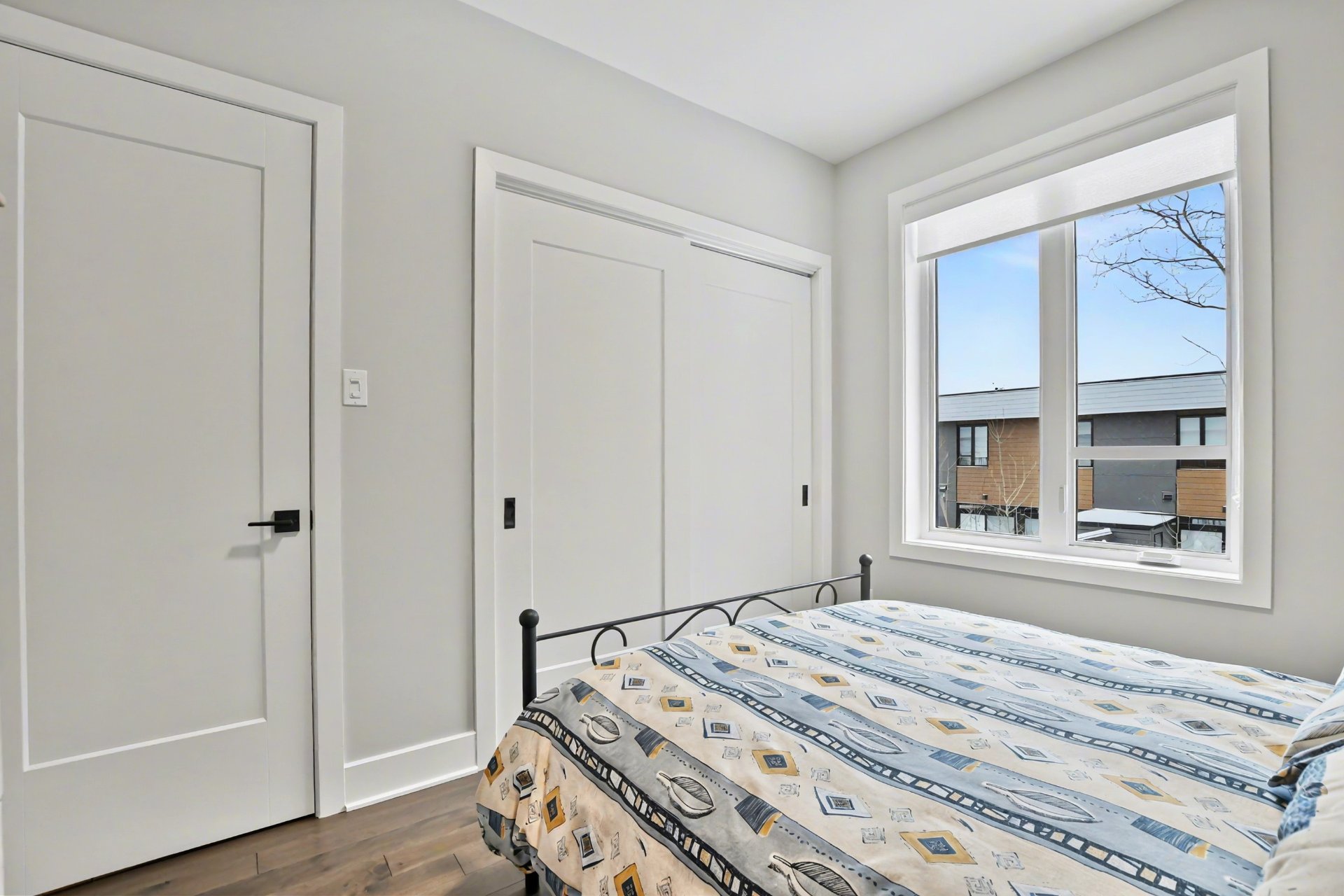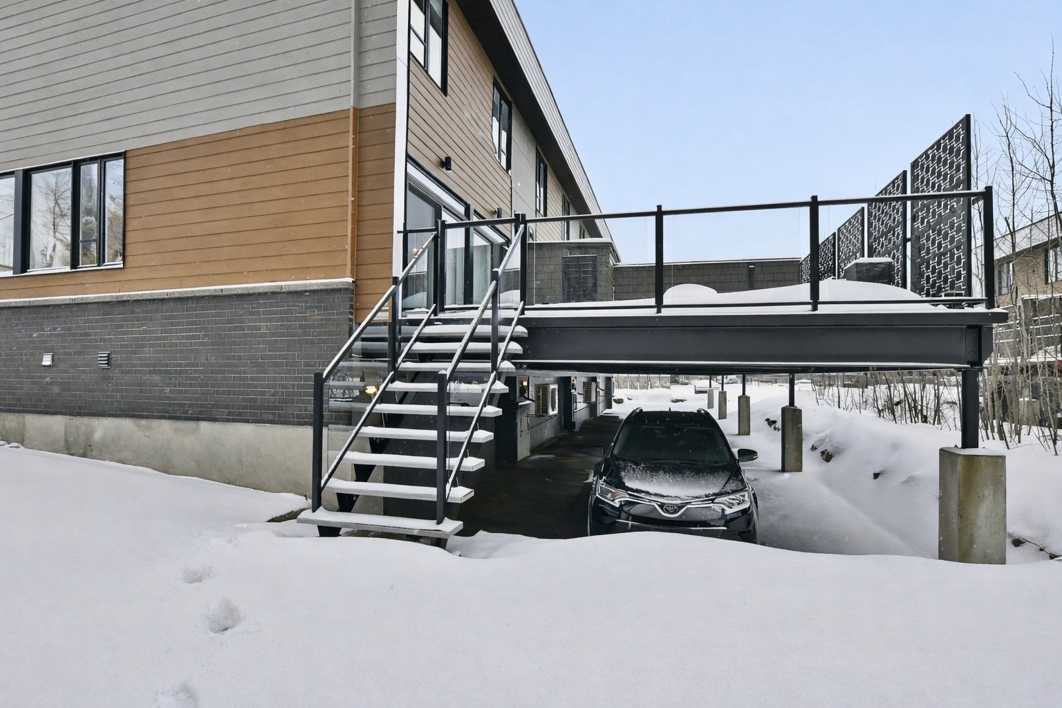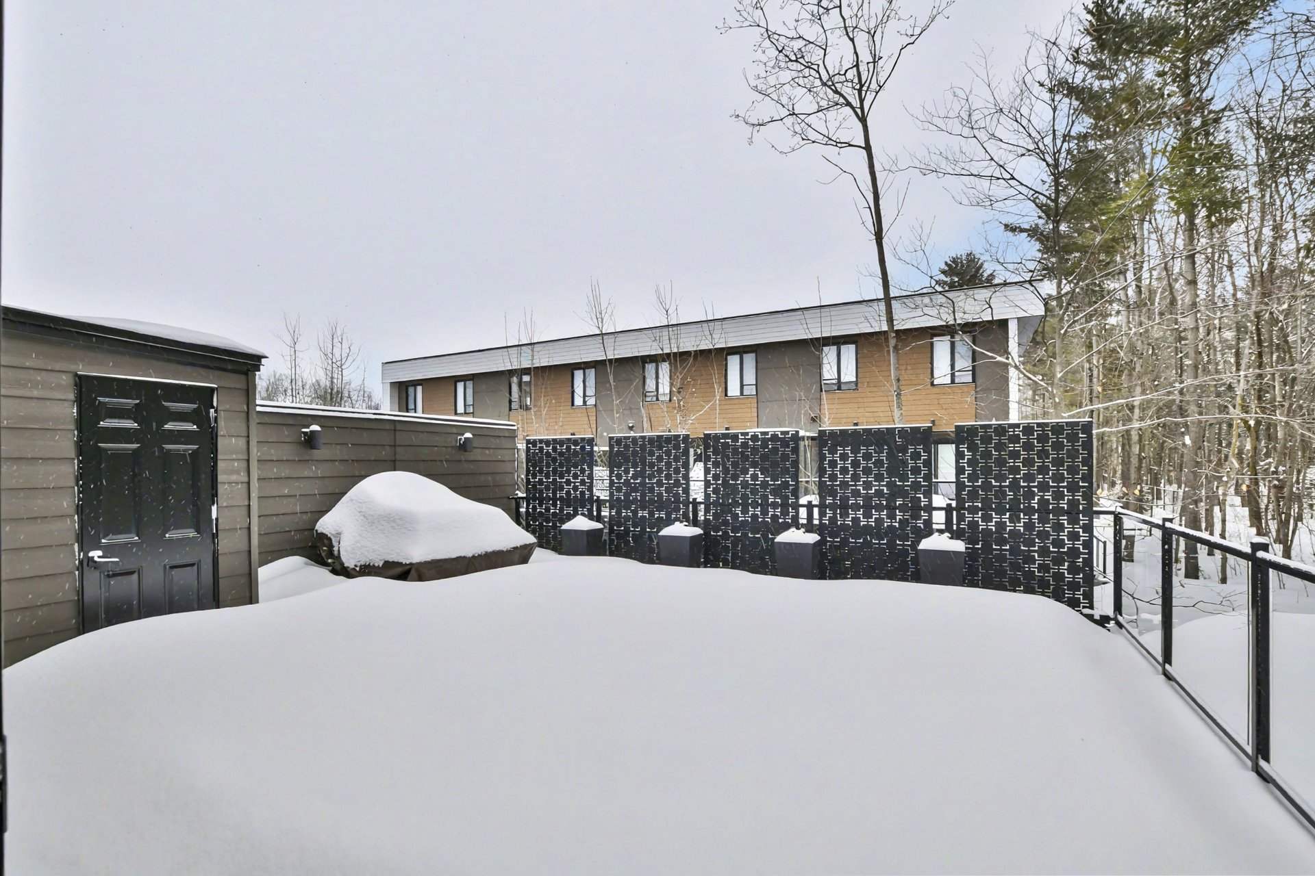 Unité de coin, une rareté à Chambéry. Superbe maison de ville en copropriété située à Blainville, adossée au boisé et offrant une vue exceptionnelle ainsi qu'une intimité remarquable. Concept lumineux avec plafonds de 9 pieds, cuisine avec comptoirs de quartz et salon agrémenté d'un foyer au gaz. L'étage propose 3 chambres, 2 salles de bain ainsi qu'une salle de lavage pratique. Magnifique terrasse surdimensionnée de 24 x 25 pieds avec panneaux d'intimité, prise de gaz pour BBQ, sortie d'eau et accès direct au terrain arrière. Garage avec préinstallation pour borne électrique.