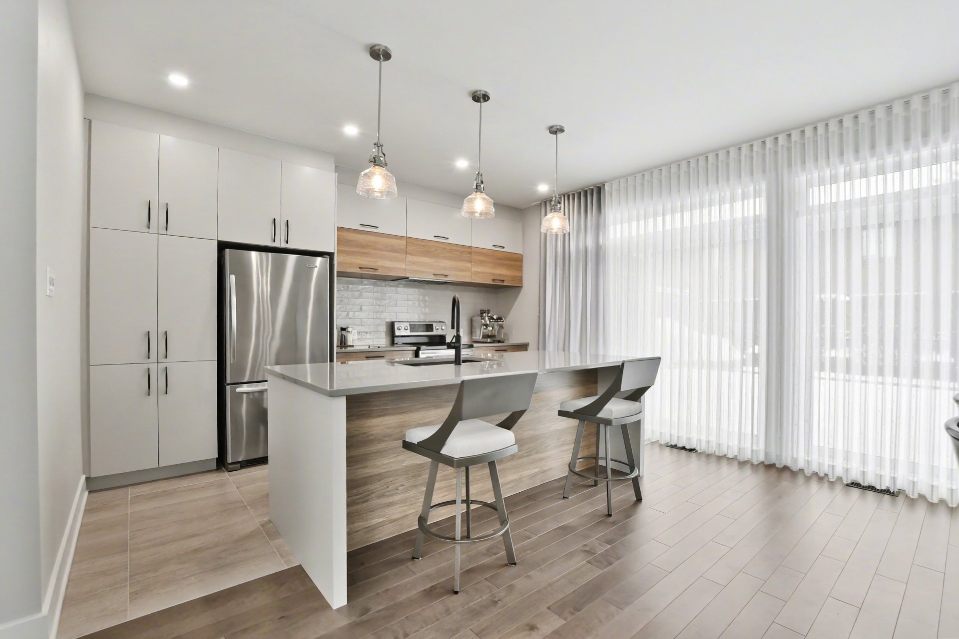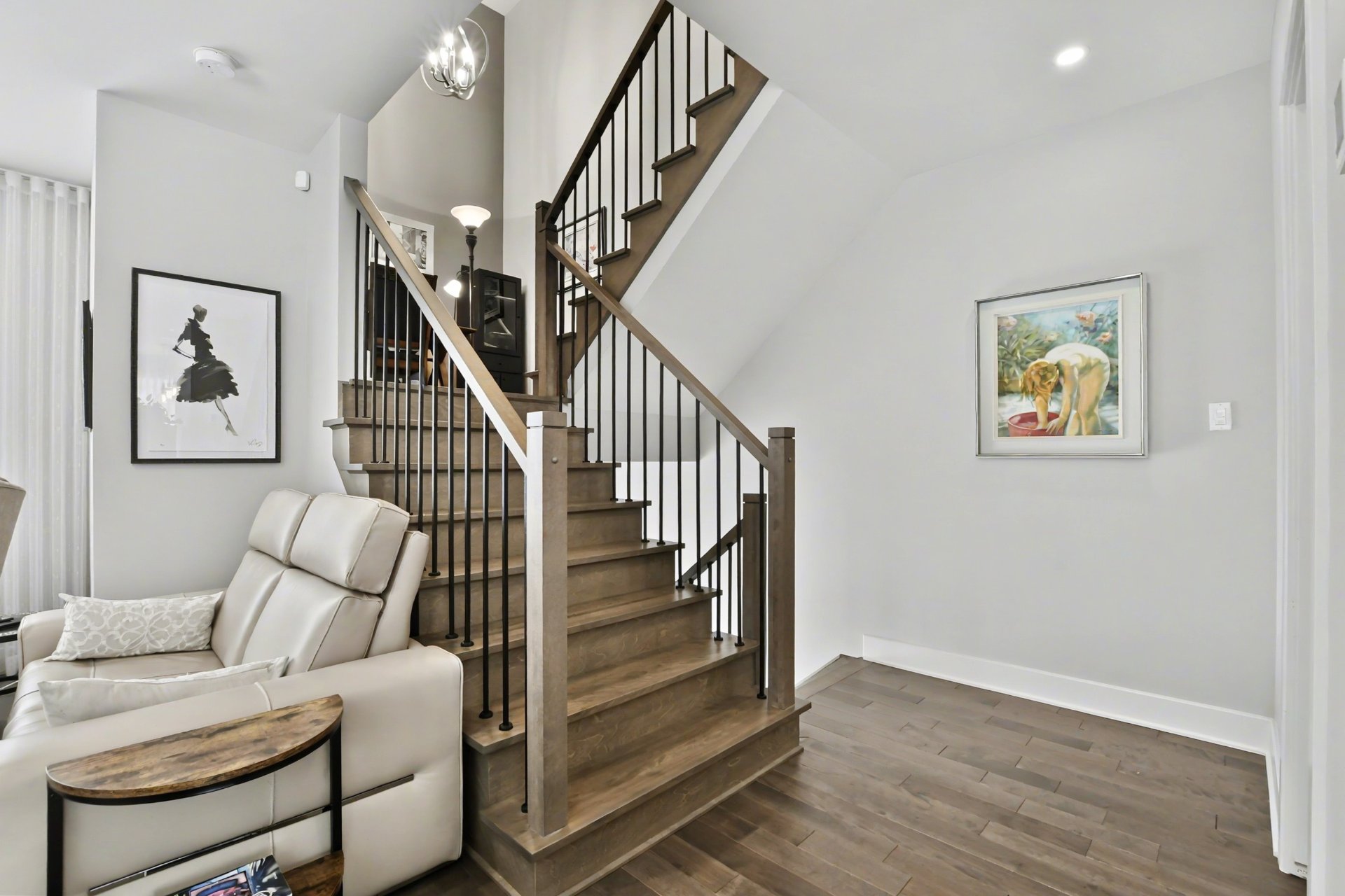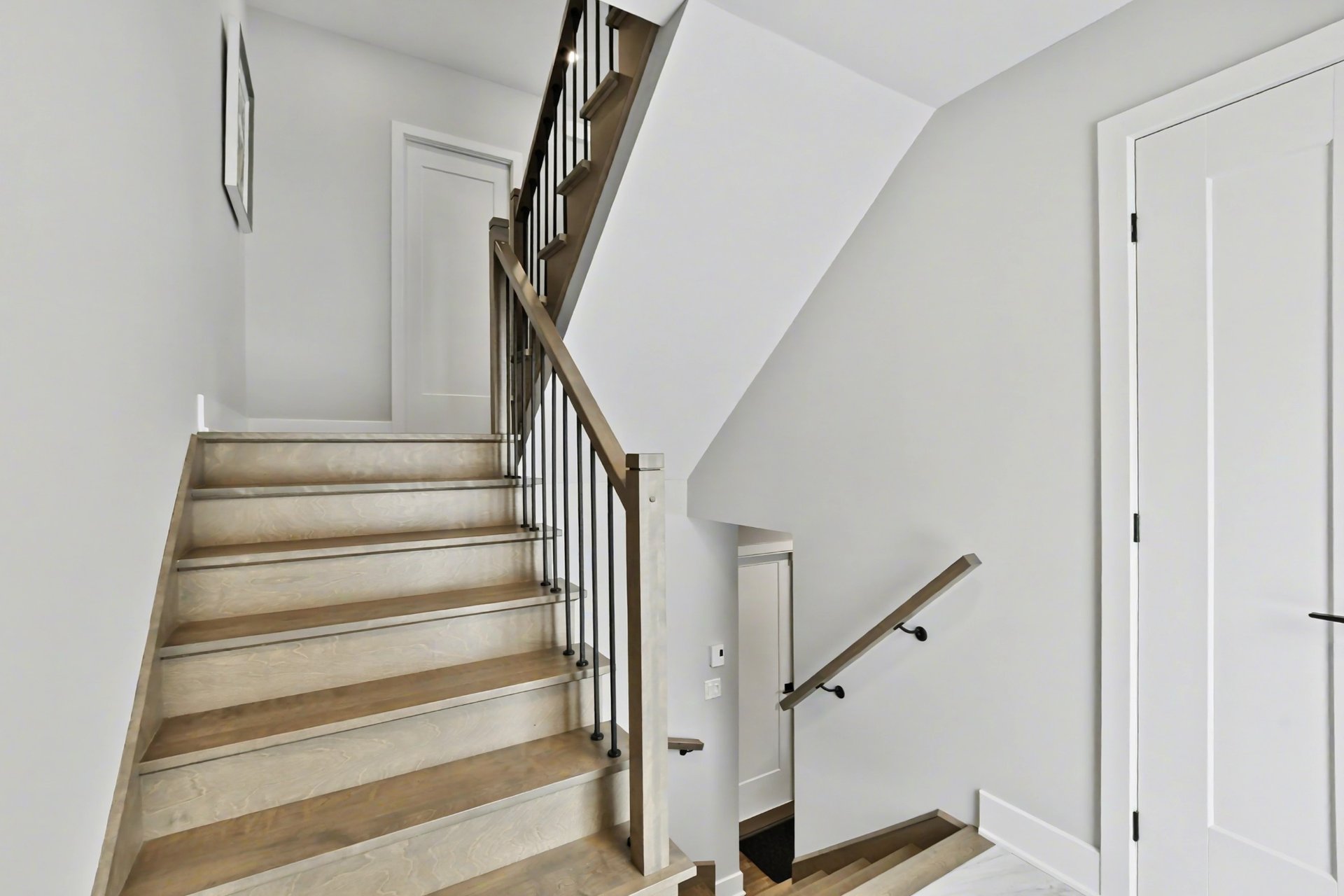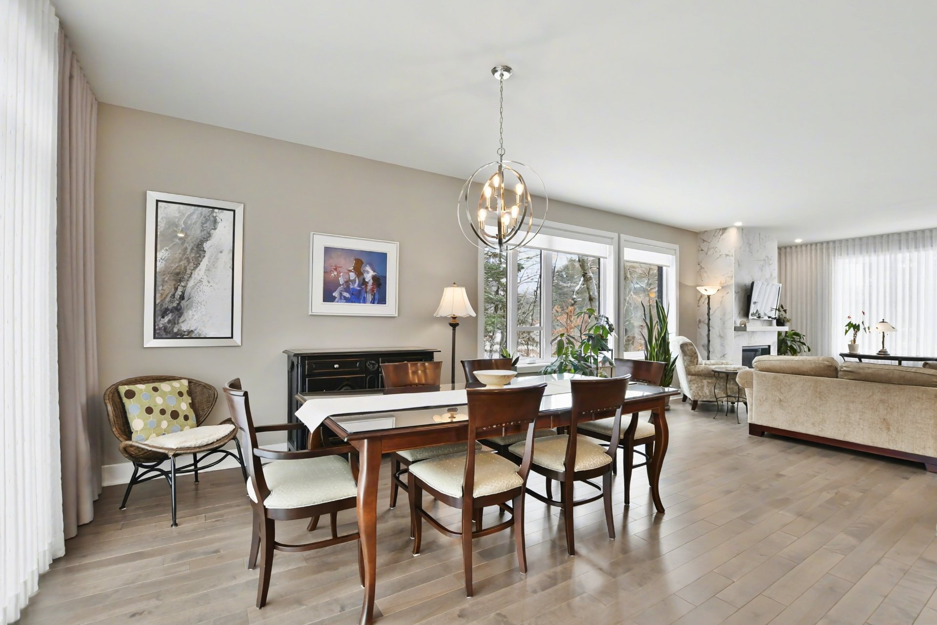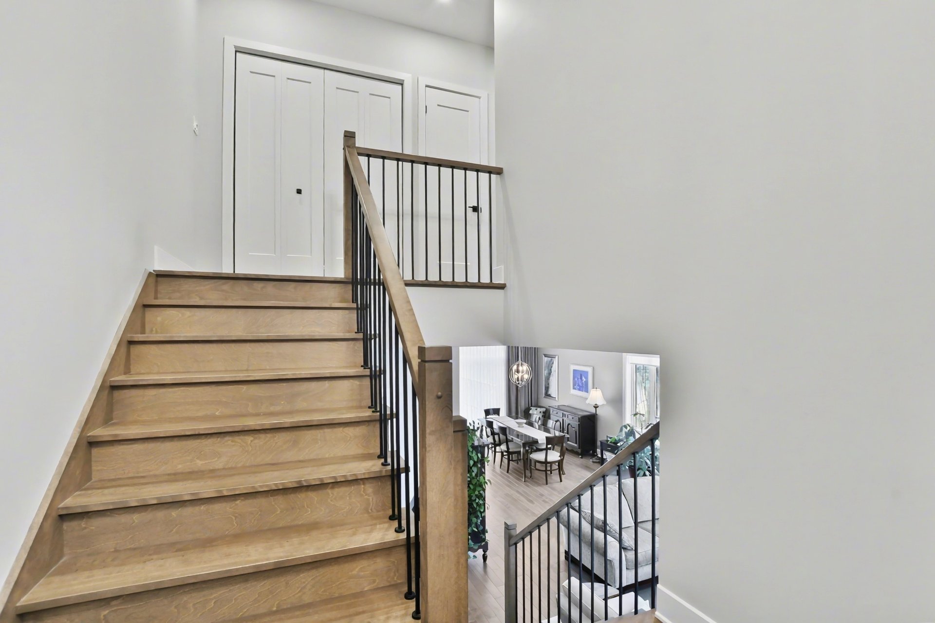 Le rez-de-chaussée propose un espace de vie lumineux et élégant, mis en valeur par de grandes fenêtres offrant une vue directe sur le boisé et des plafonds de 9 pieds. La cuisine se distingue par ses comptoirs de quartz, son design contemporain et sa fonctionnalité optimale. Le salon, chaleureux et convivial, est agrémenté d'un foyer au gaz, créant une ambiance raffinée et confortable en toute saison.