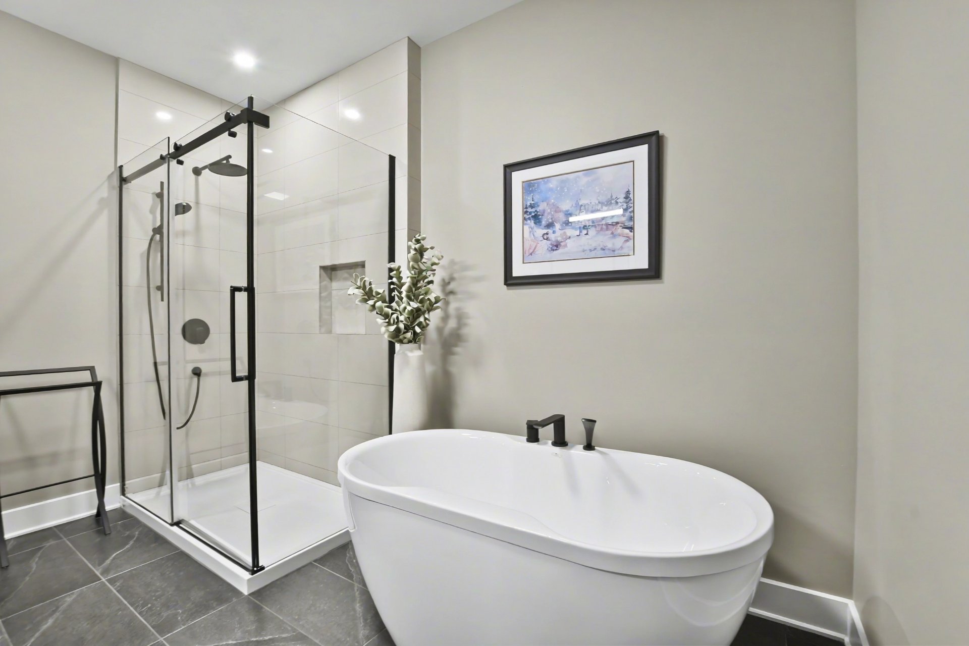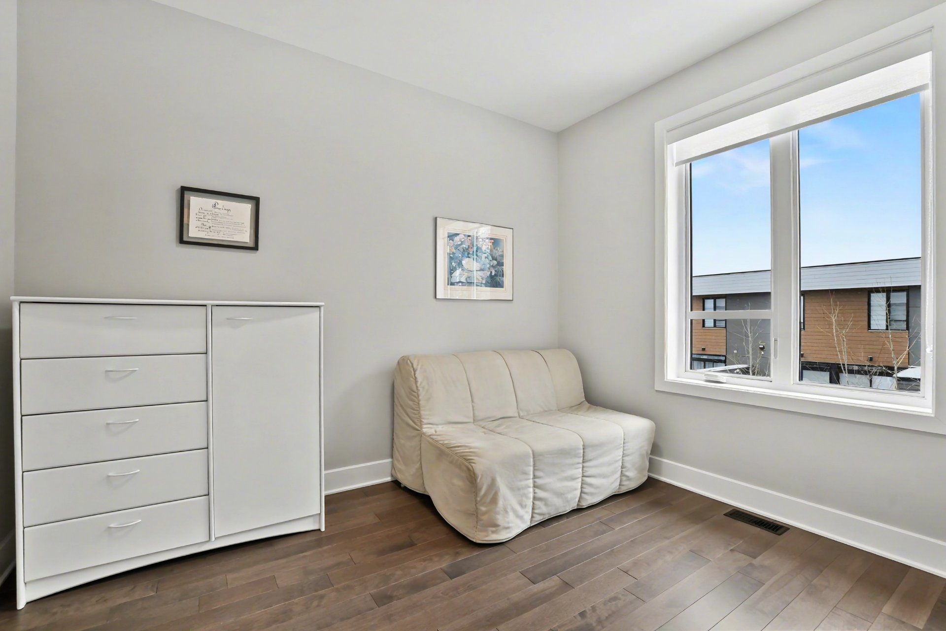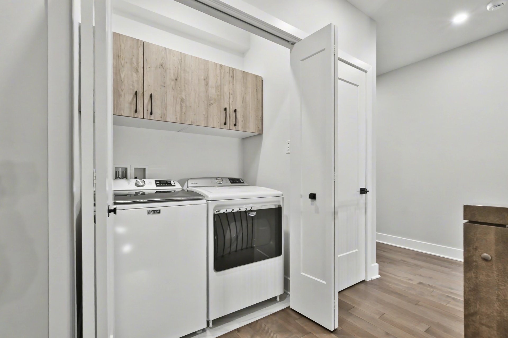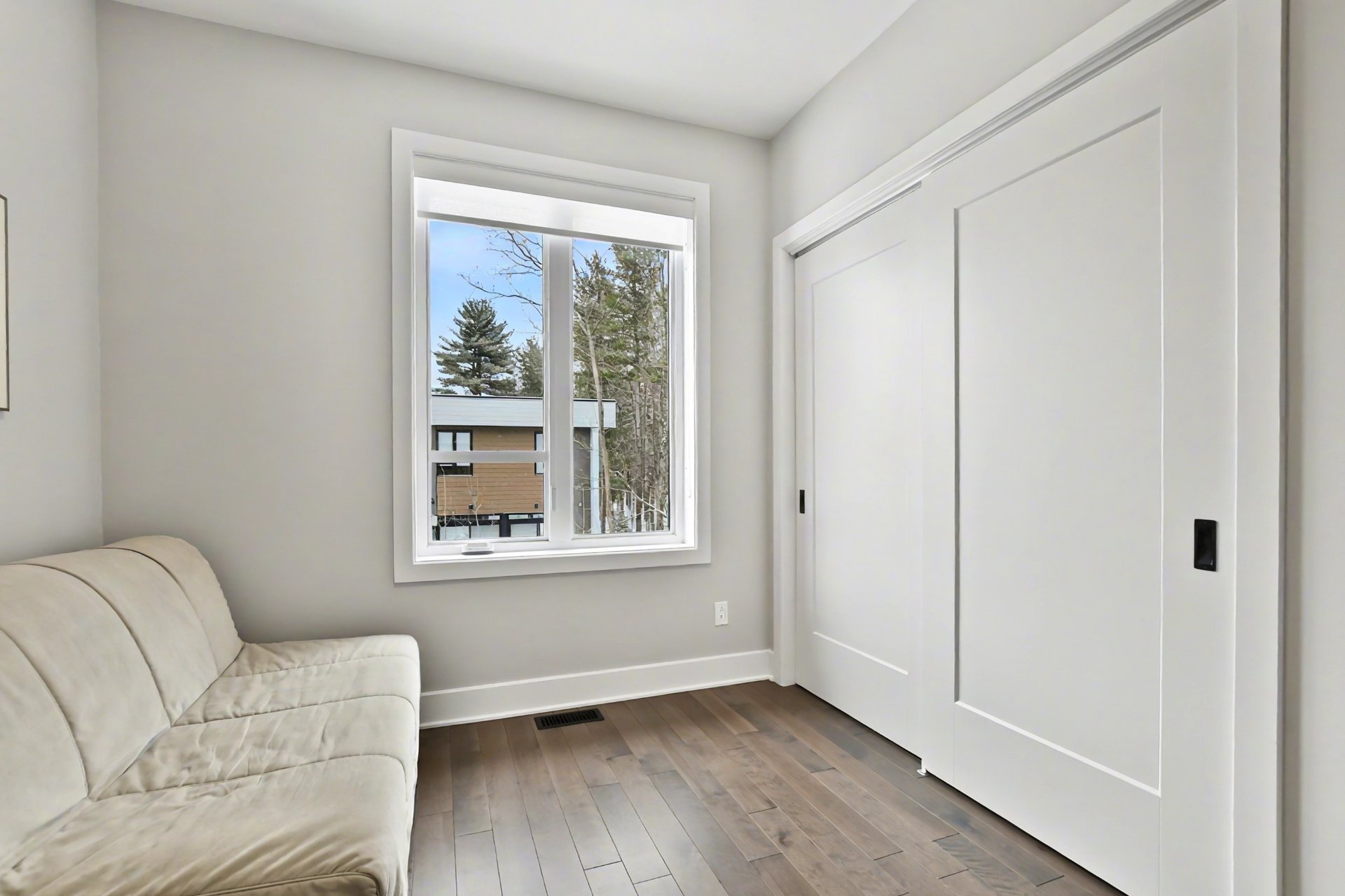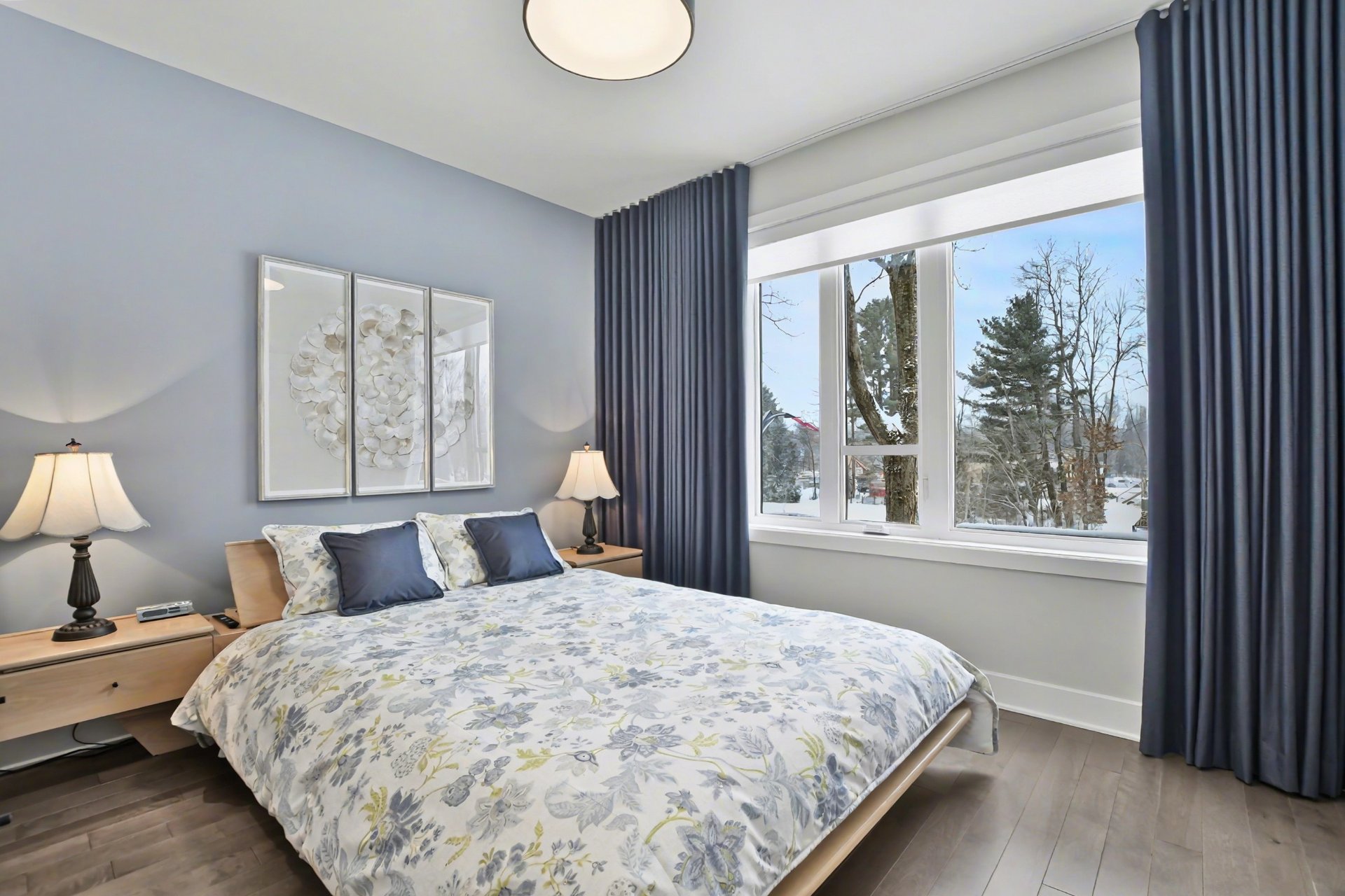 Le rez-de-chaussée propose un espace de vie lumineux et élégant, mis en valeur par de grandes fenêtres offrant une vue directe sur le boisé et des plafonds de 9 pieds. La cuisine se distingue par ses comptoirs de quartz, son design contemporain et sa fonctionnalité optimale. Le salon, chaleureux et convivial, est agrémenté d'un foyer au gaz, créant une ambiance raffinée et confortable en toute saison.