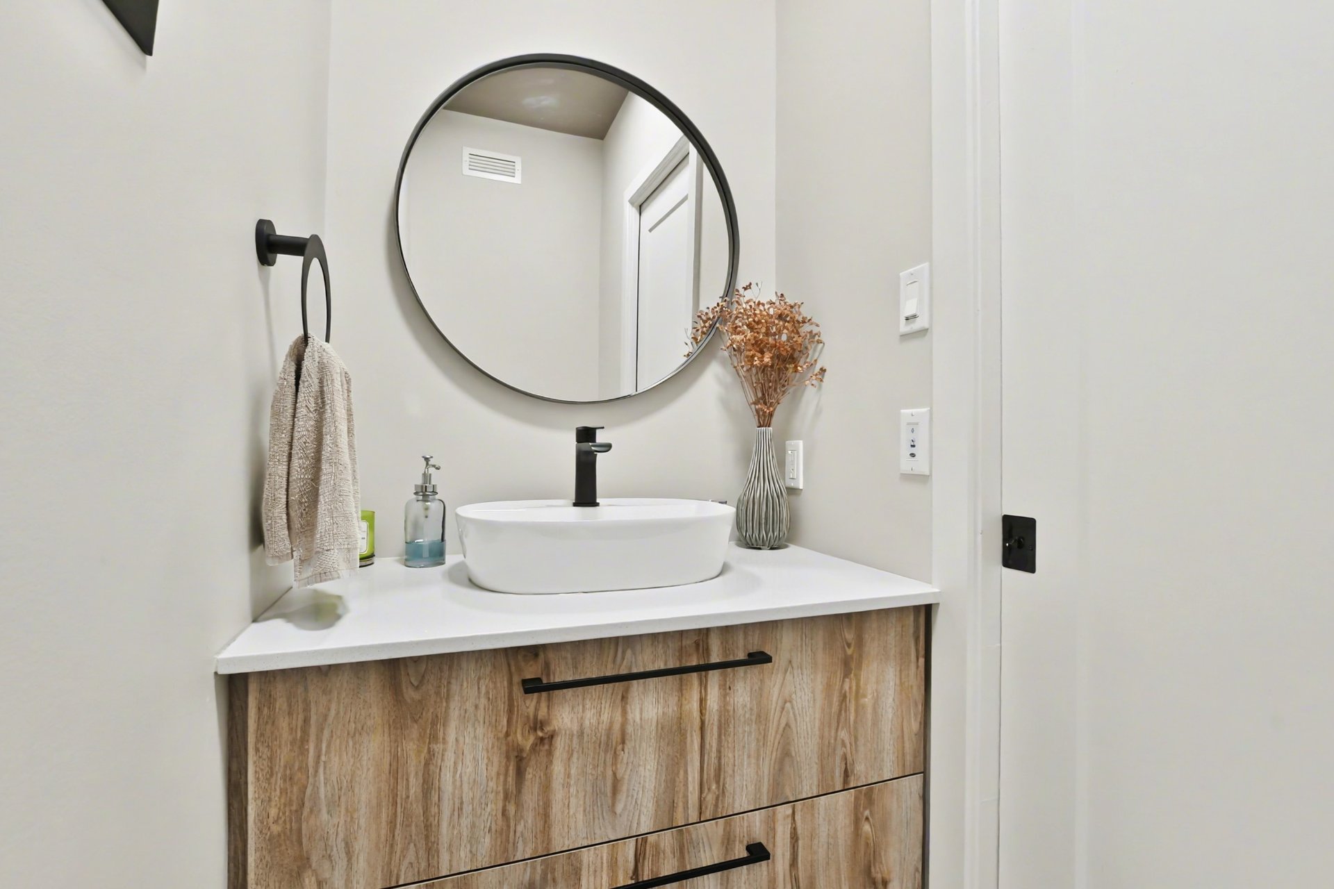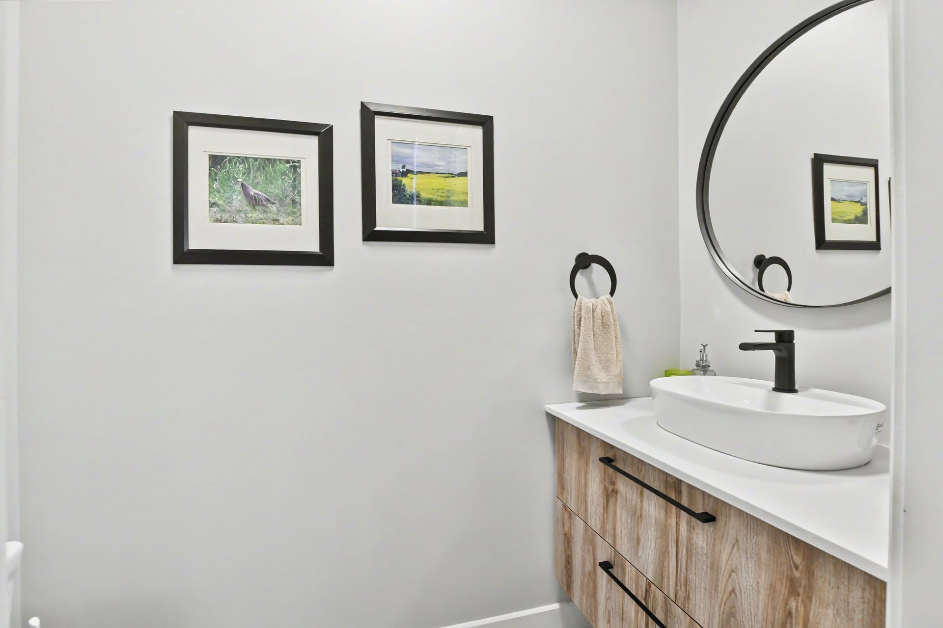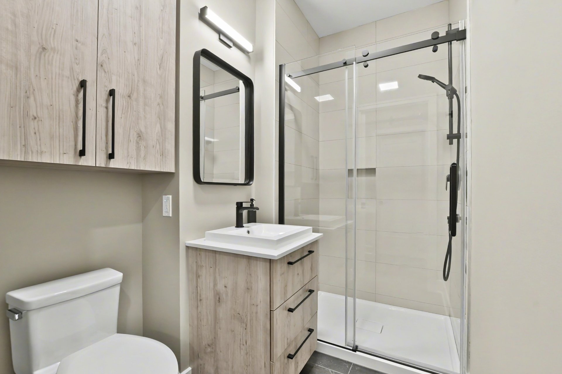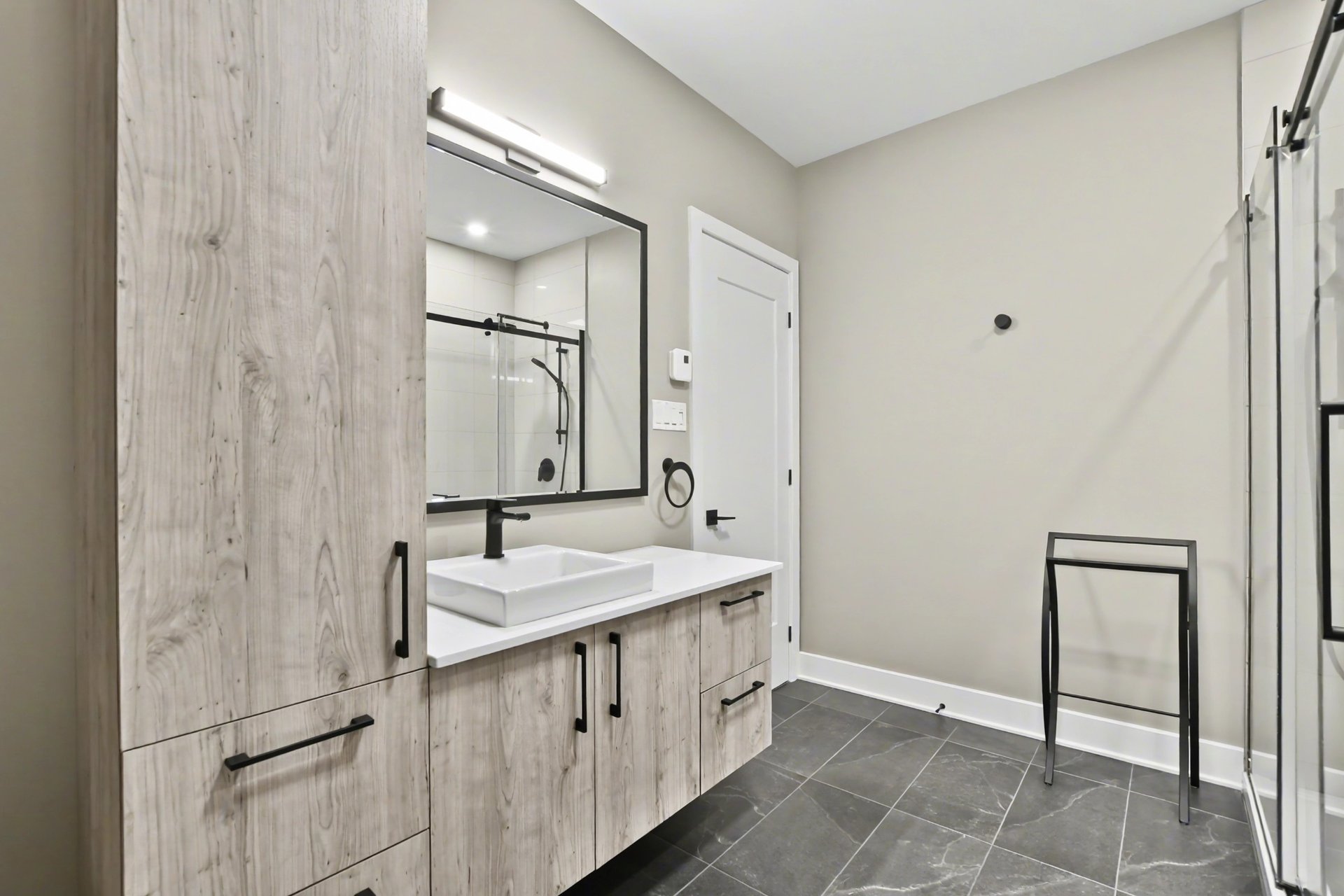 Le rez-de-chaussée propose un espace de vie lumineux et élégant, mis en valeur par de grandes fenêtres offrant une vue directe sur le boisé et des plafonds de 9 pieds. La cuisine se distingue par ses comptoirs de quartz, son design contemporain et sa fonctionnalité optimale. Le salon, chaleureux et convivial, est agrémenté d'un foyer au gaz, créant une ambiance raffinée et confortable en toute saison.