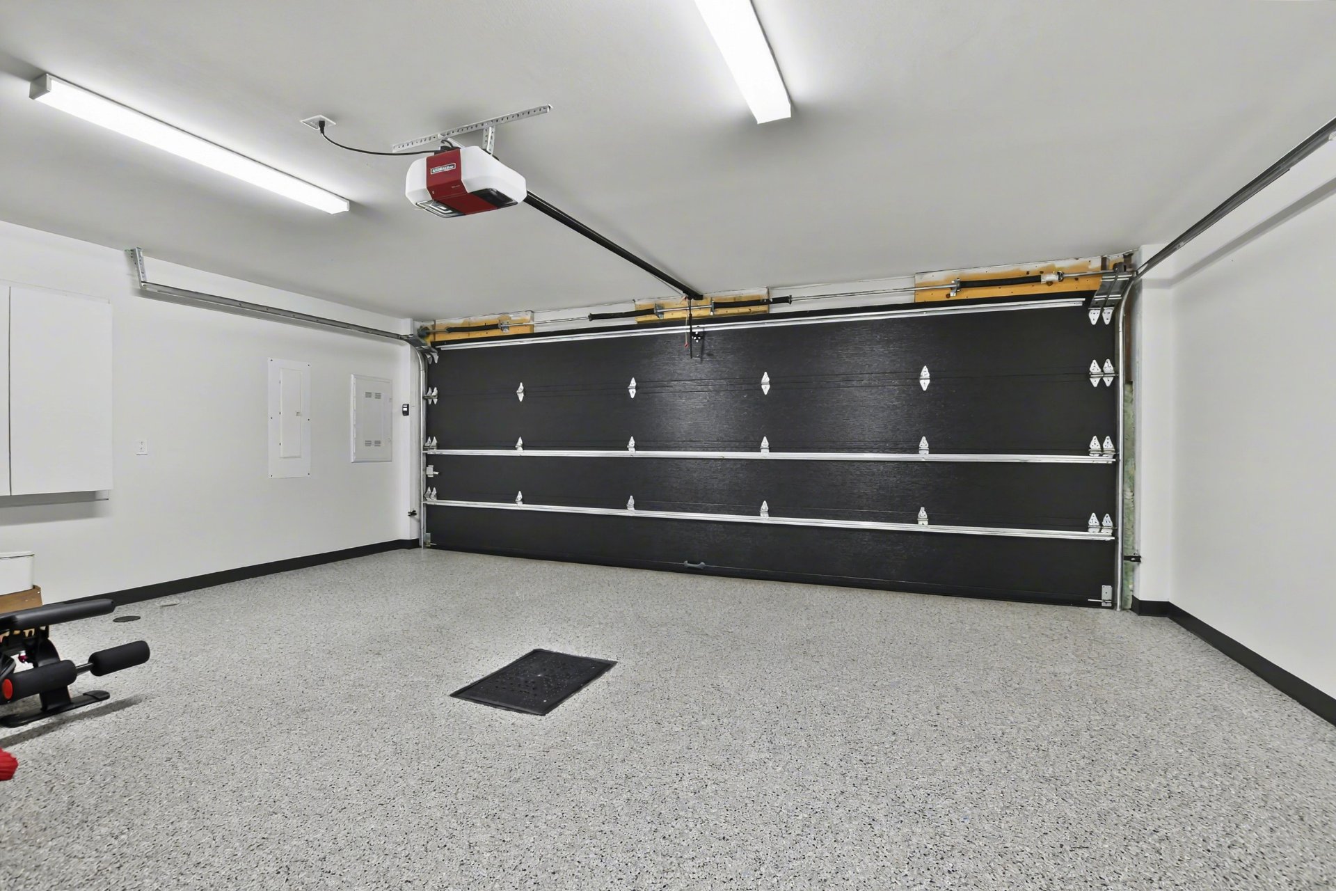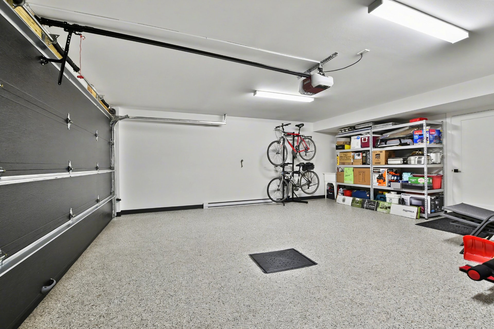 Garage de belle dimension, muni d'une pré-installation électrique pour borne de recharge de véhicule électrique.