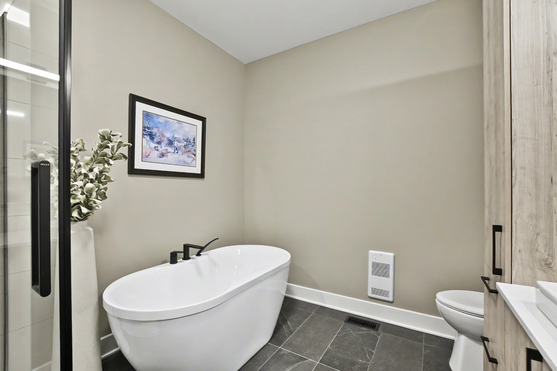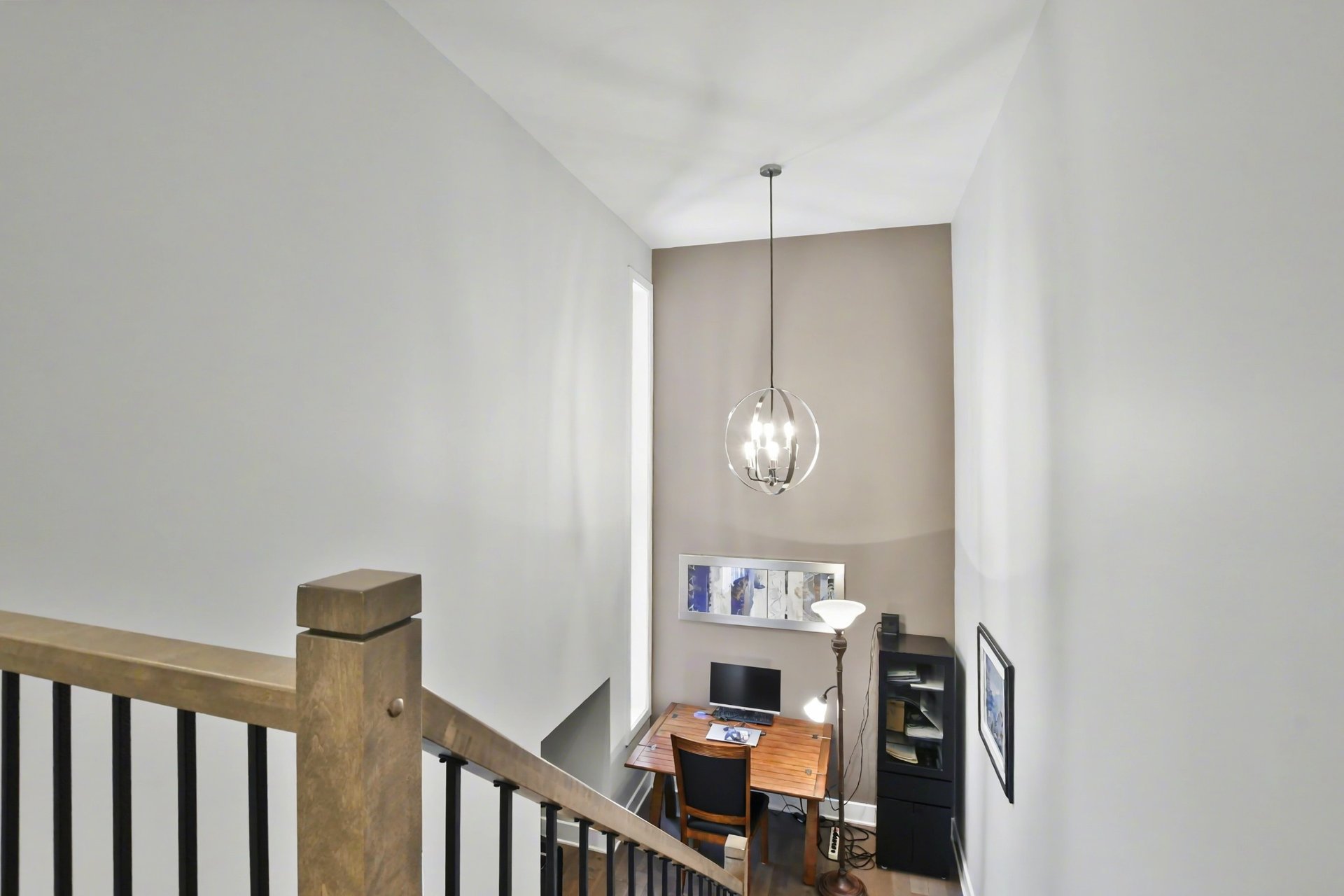 L'étage comprend trois chambres à coucher, dont une chambre principale spacieuse, ainsi que deux salles de bain complètes. On y retrouve également une salle de lavage située à l'étage, un avantage très apprécié au quotidien. Un espace polyvalent à la mi-étage peut facilement servir de bureau à domicile, coin lecture ou espace détente. Les plafonds de 9 pieds contribuent à une sensation d'espace et de luminosité remarquable.