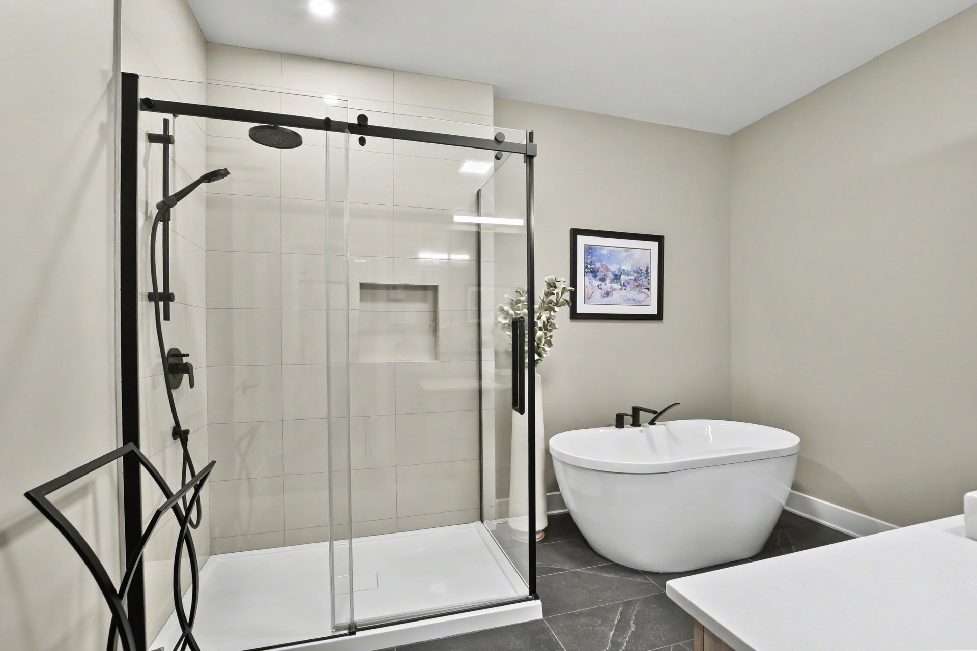 Le sous-sol offre un espace bureau ou salon supplémentaire, parfait pour le télétravail, une salle familiale ou un espace multimédia, ajoutant une grande polyvalence à la propriété.
