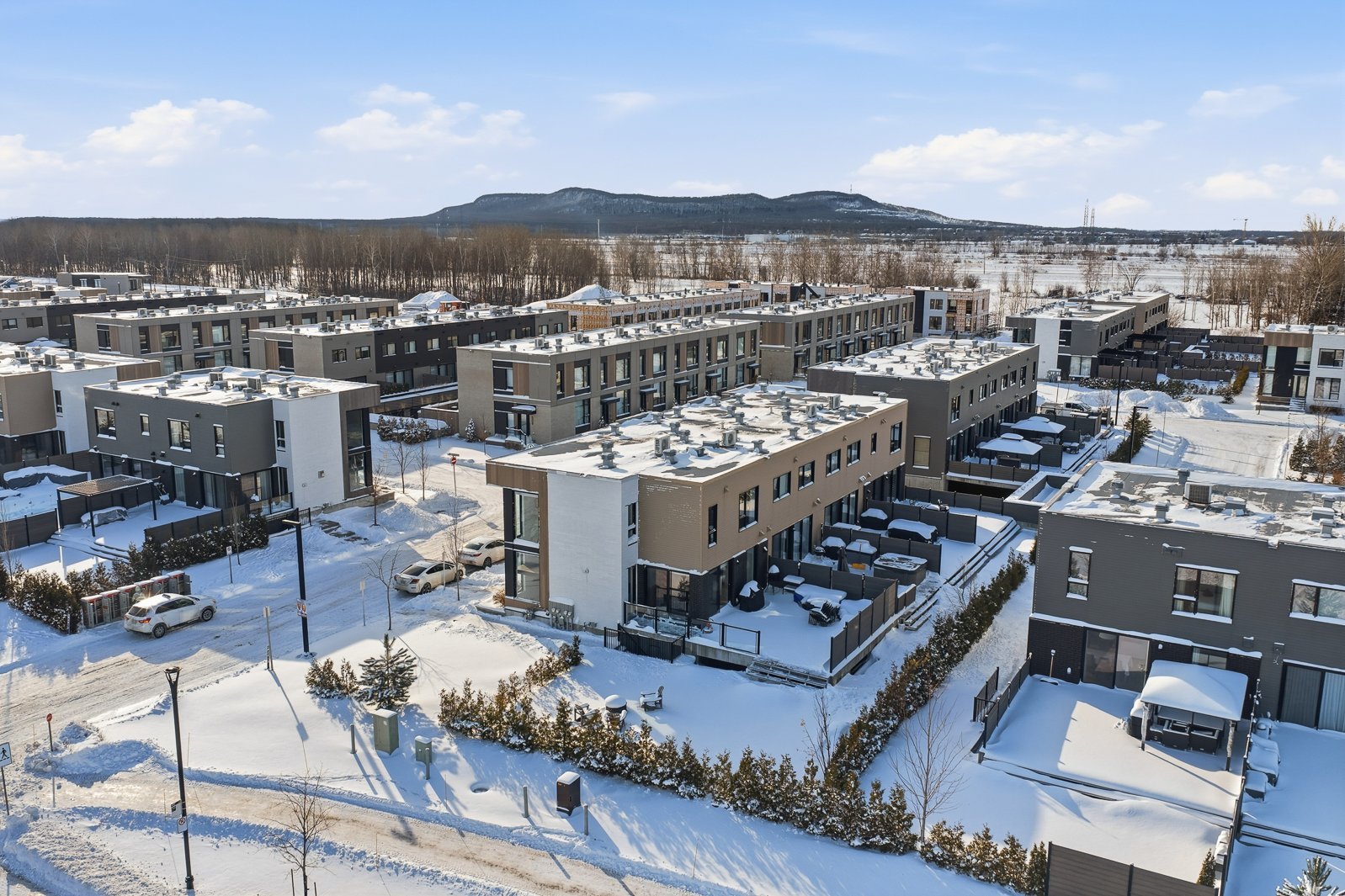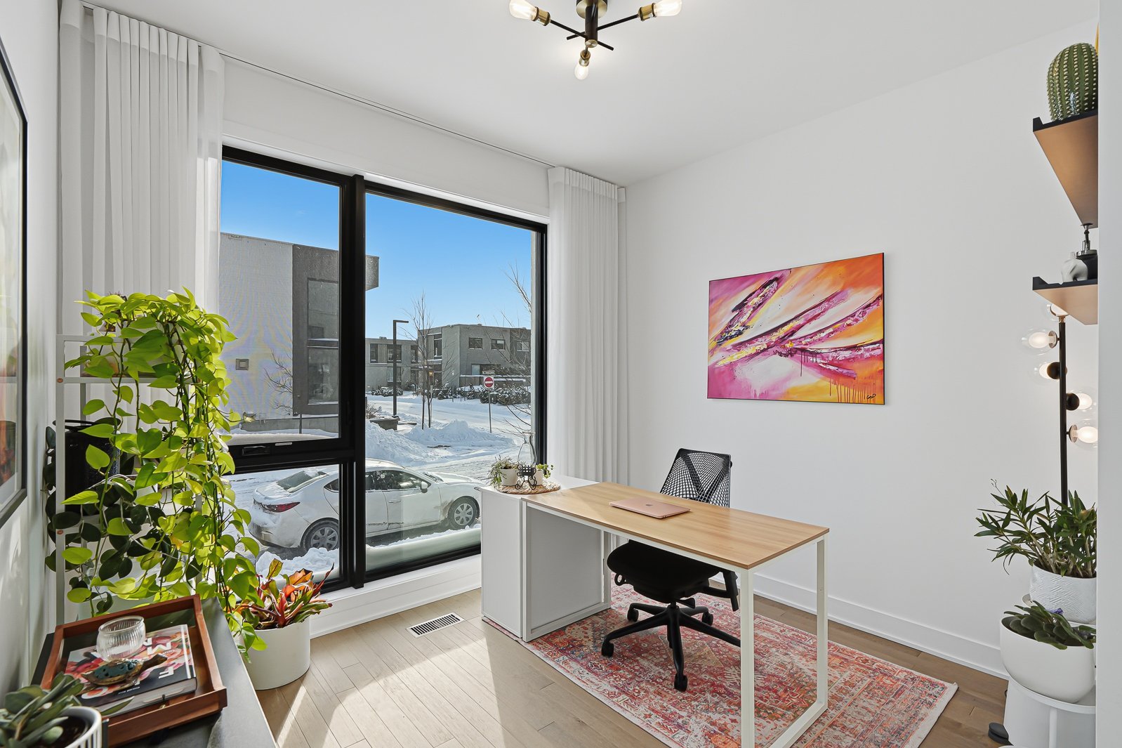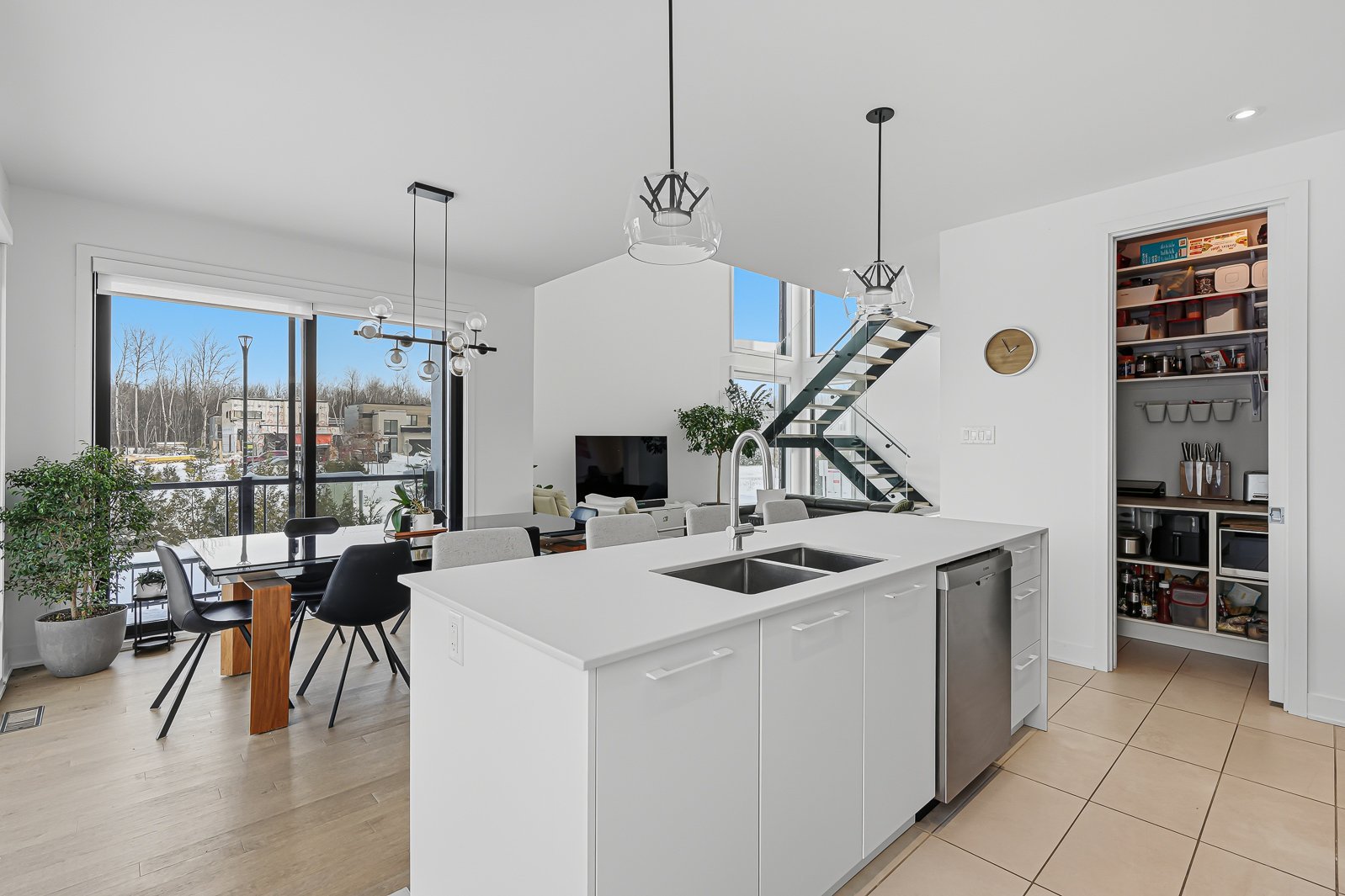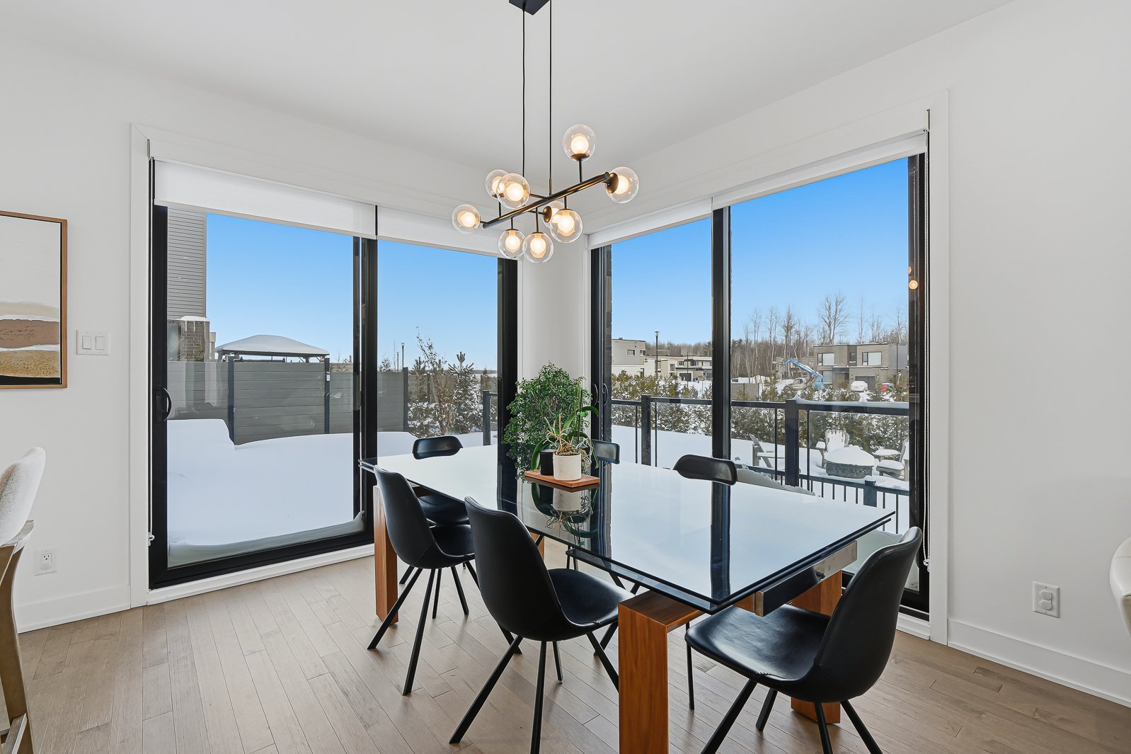 Située dans un secteur prisé de Sainte-Julie, cette maison de ville en coin se distingue par son design contemporain, sa luminosité exceptionnelle et ses volumes impressionnants. L'aire de vie à aire ouverte propose des plafonds de grande hauteur, une fenestration abondante et un escalier architectural avec garde-corps en verre. Le rez-de-chaussée comprend un bureau, idéal pour le télétravail ou un espace polyvalent selon les besoins. La cuisine moderne séduit par son vaste îlot, ses lignes épurées et ses matériaux de qualité. Les chambres offrent confort et polyvalence. Le garage double ajoute un atout pratique.