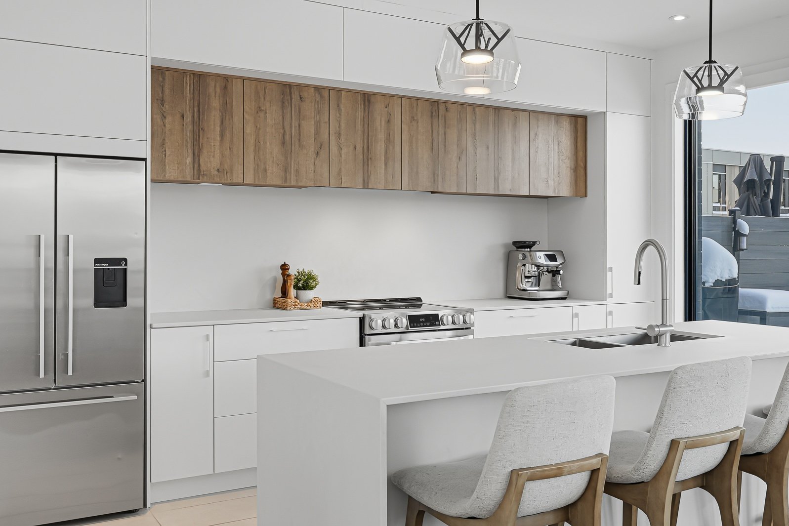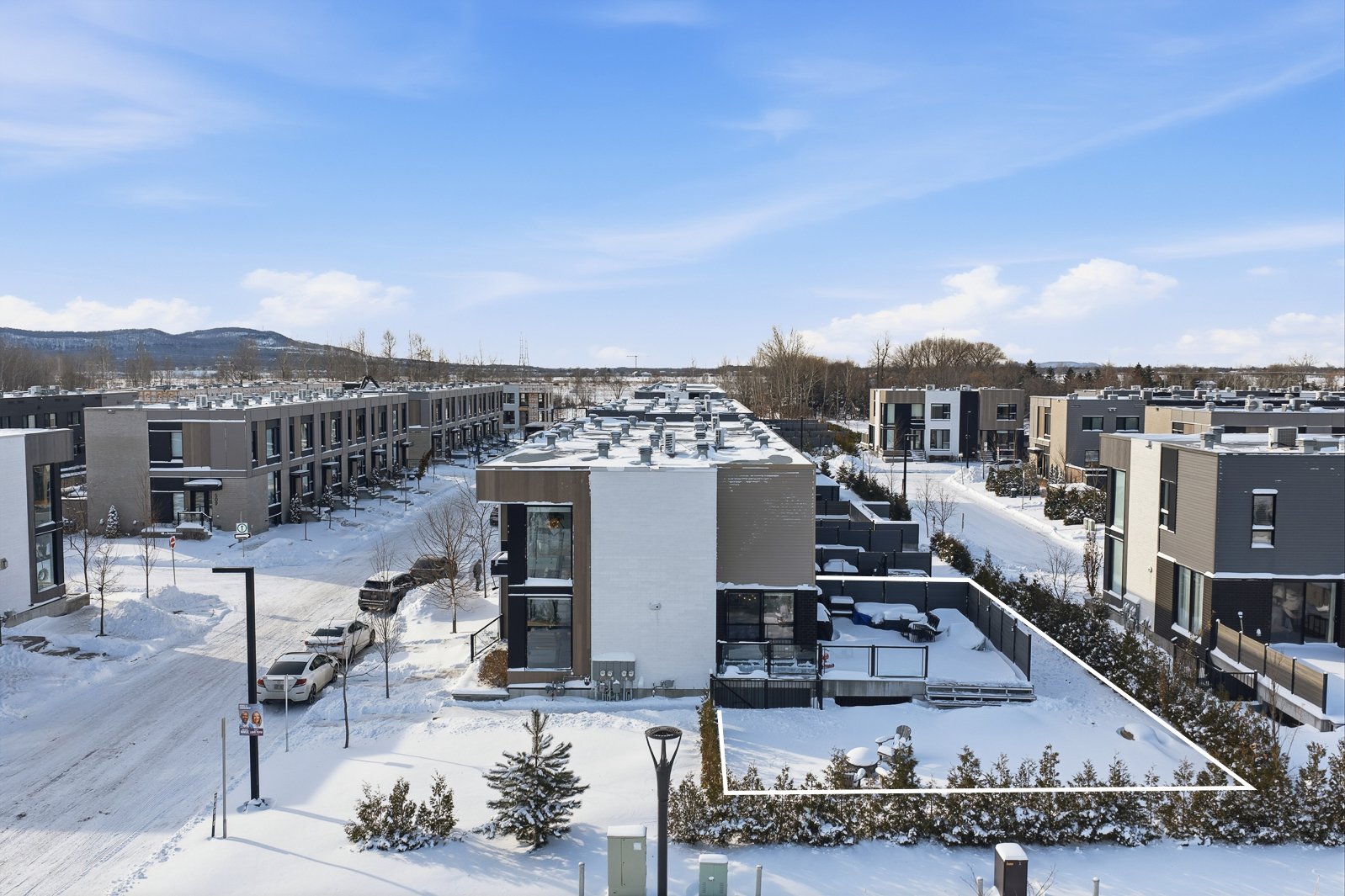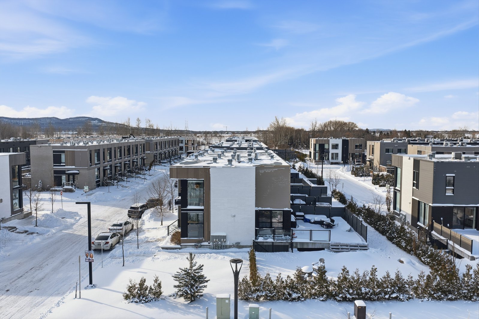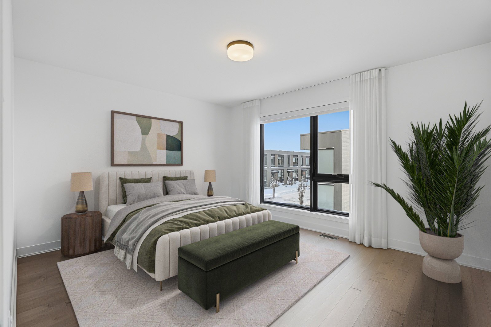 Située dans un secteur prisé de Sainte-Julie, cette maison de ville en coin se distingue par son design contemporain, sa luminosité exceptionnelle et ses volumes impressionnants. L'aire de vie à aire ouverte propose des plafonds de grande hauteur, une fenestration abondante et un escalier architectural avec garde-corps en verre. Le rez-de-chaussée comprend un bureau, idéal pour le télétravail ou un espace polyvalent selon les besoins. La cuisine moderne séduit par son vaste îlot, ses lignes épurées et ses matériaux de qualité. Les chambres offrent confort et polyvalence. Le garage double ajoute un atout pratique.
