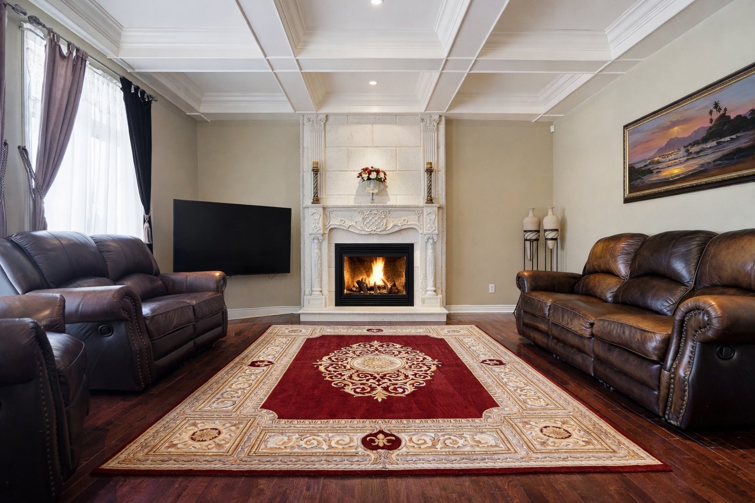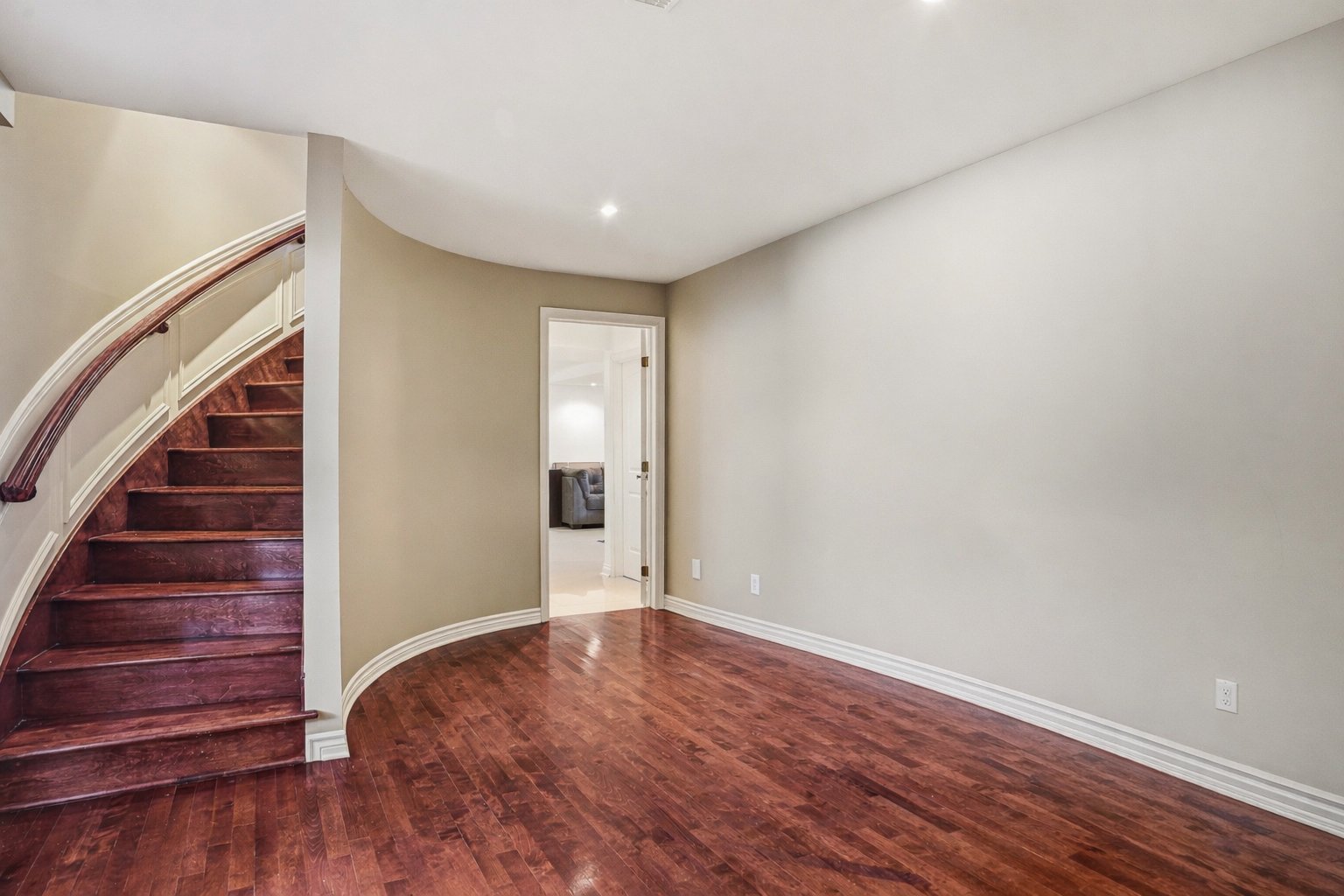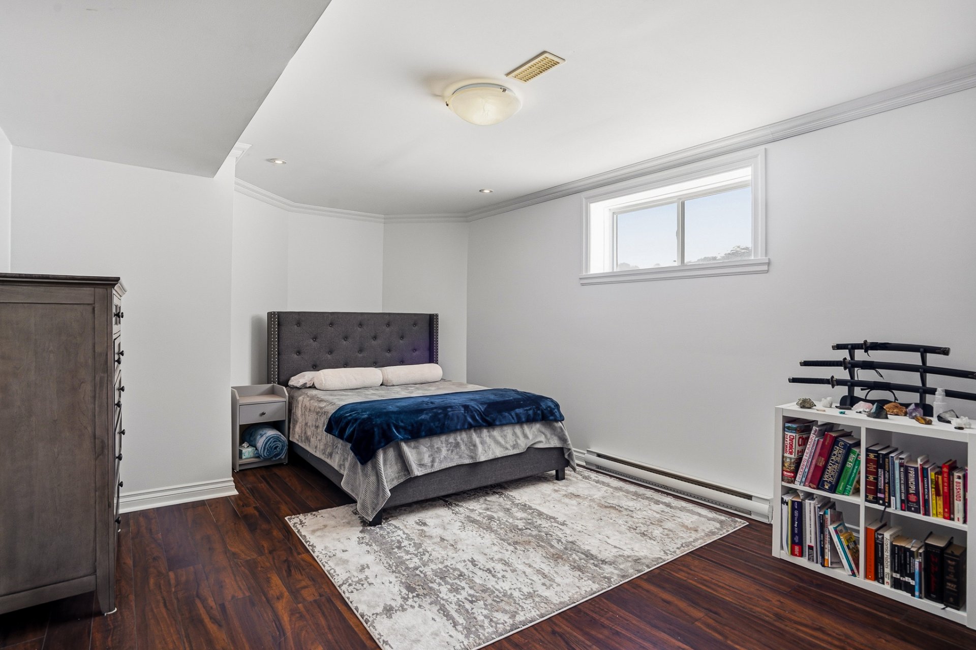 Le sous-sol aménagé comprend une grande salle familiale ou salle de jeux avec coin salon, une chambre à coucher, une salle de bains avec douche ainsi que des espaces de rangement supplémentaires.
