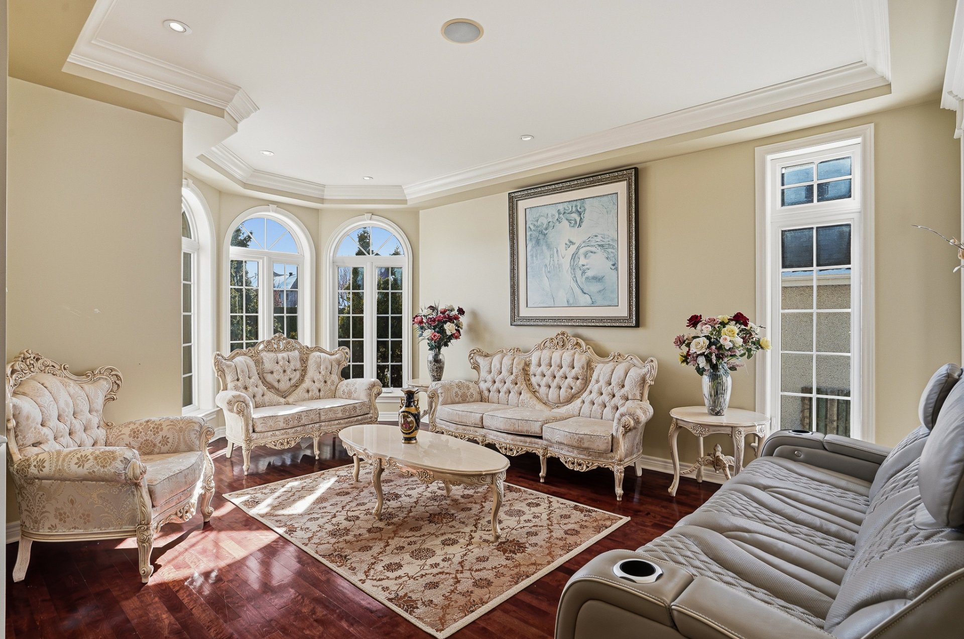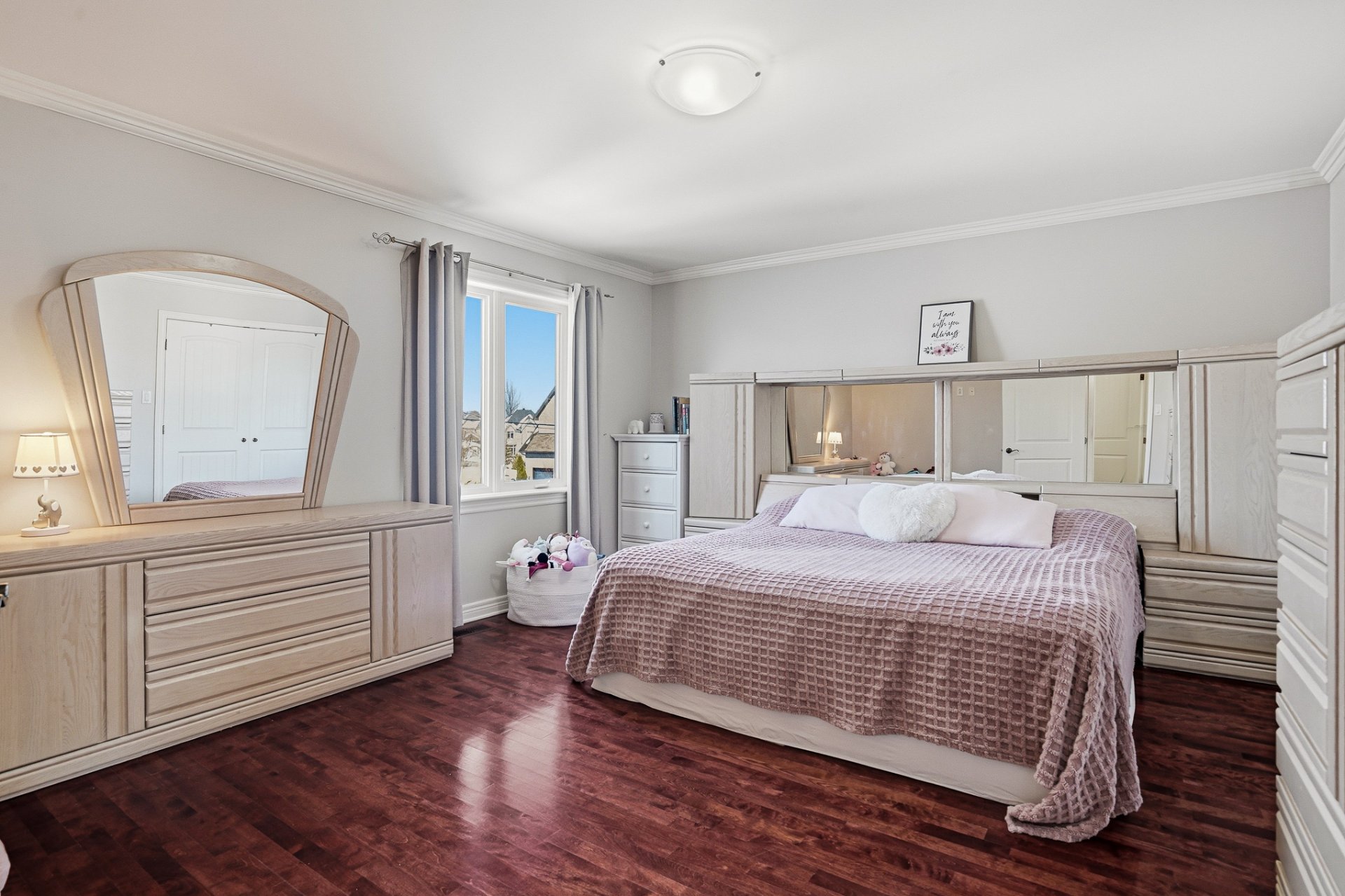 À l'étage, un espace boudoir avec fenêtre peut servir de coin lecture ou de bureau. On y retrouve trois chambres de bonnes dimensions, dont la chambre principale avec salle de bains attenante comprenant deux éviers et un walk-in. Les deux autres chambres se partagent une seconde salle de bains complète.