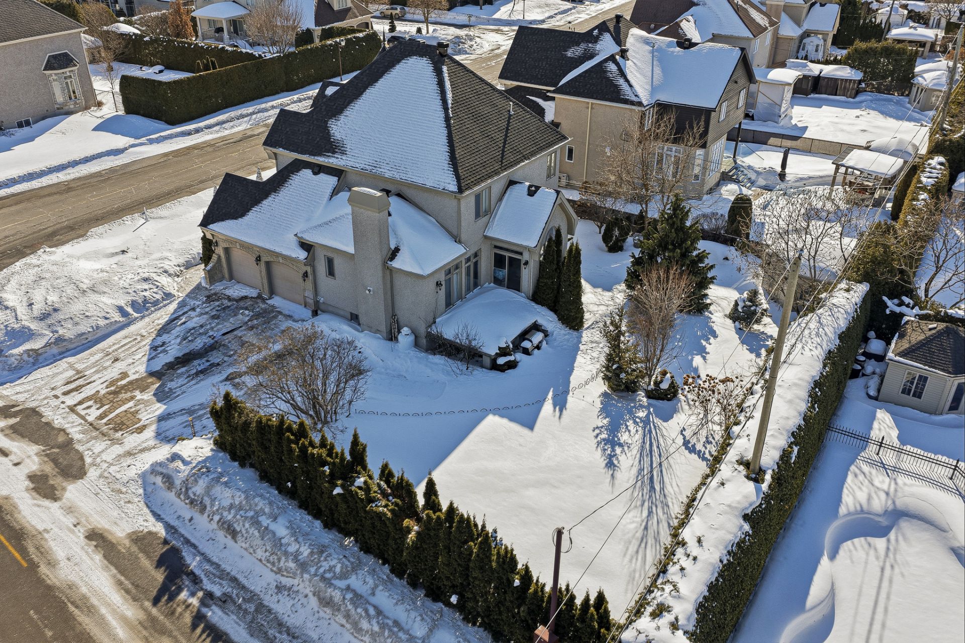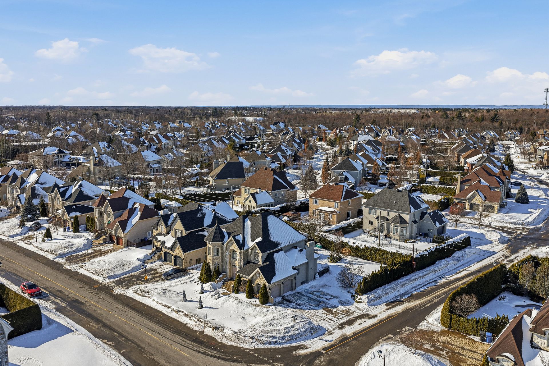 Située sur un terrain de coin de 10 783 pi² dans le secteur recherché de Fontainebleau à Blainville, cette propriété spacieuse offre un environnement idéal pour la vie familiale.