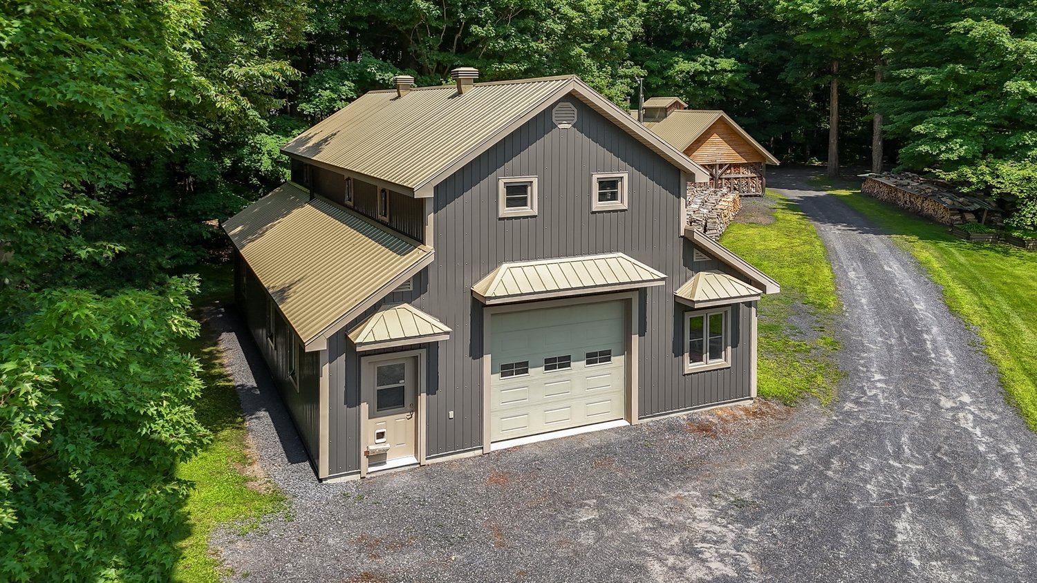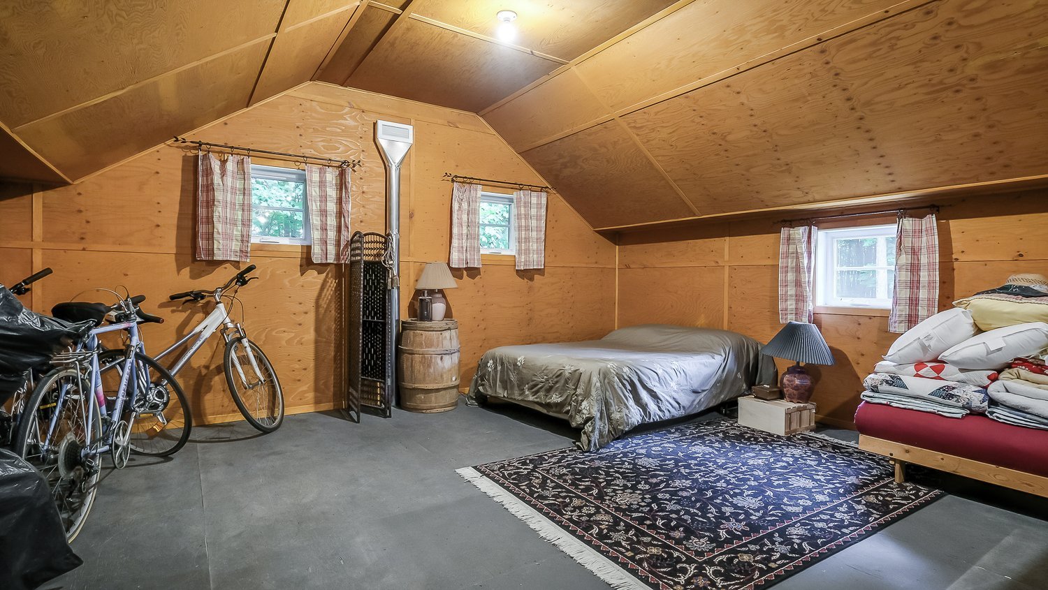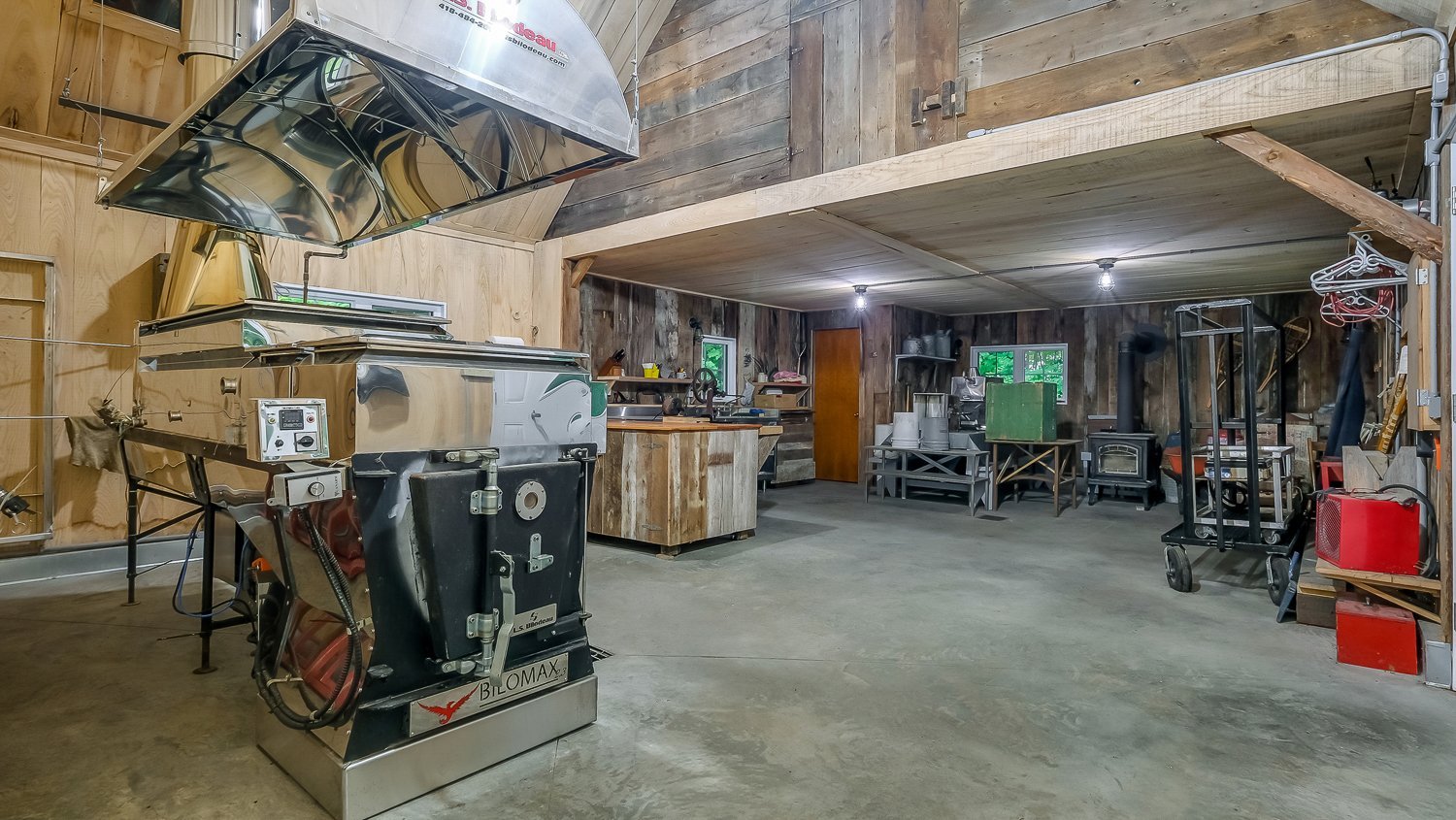 Un vaste garage détaché, muni d'un plancher chauffant, vient compléter cette propriété. Adjacente à celui-ci, une aire de repos aménagée avec cuisinette, salon et salle de bain offre un espace polyvalent idéal pour accueillir des invités, loger un employé saisonnier ou simplement profiter d'un coin détente après une journée en nature.