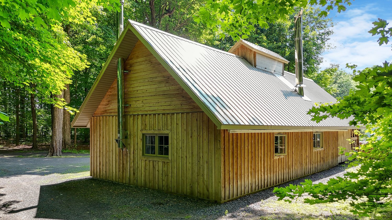 L'extérieur vous séduira par son cadre paisible et sa grande intimité, à l'abri des regards, où la forêt majestueuse et les espaces dégagés se côtoient harmonieusement. Ce domaine est un véritable sanctuaire pour les amoureux de la nature, les passionnés d'acériculture ou toute personne en quête d'un style de vie serein, sans compromis sur l'accessibilité.