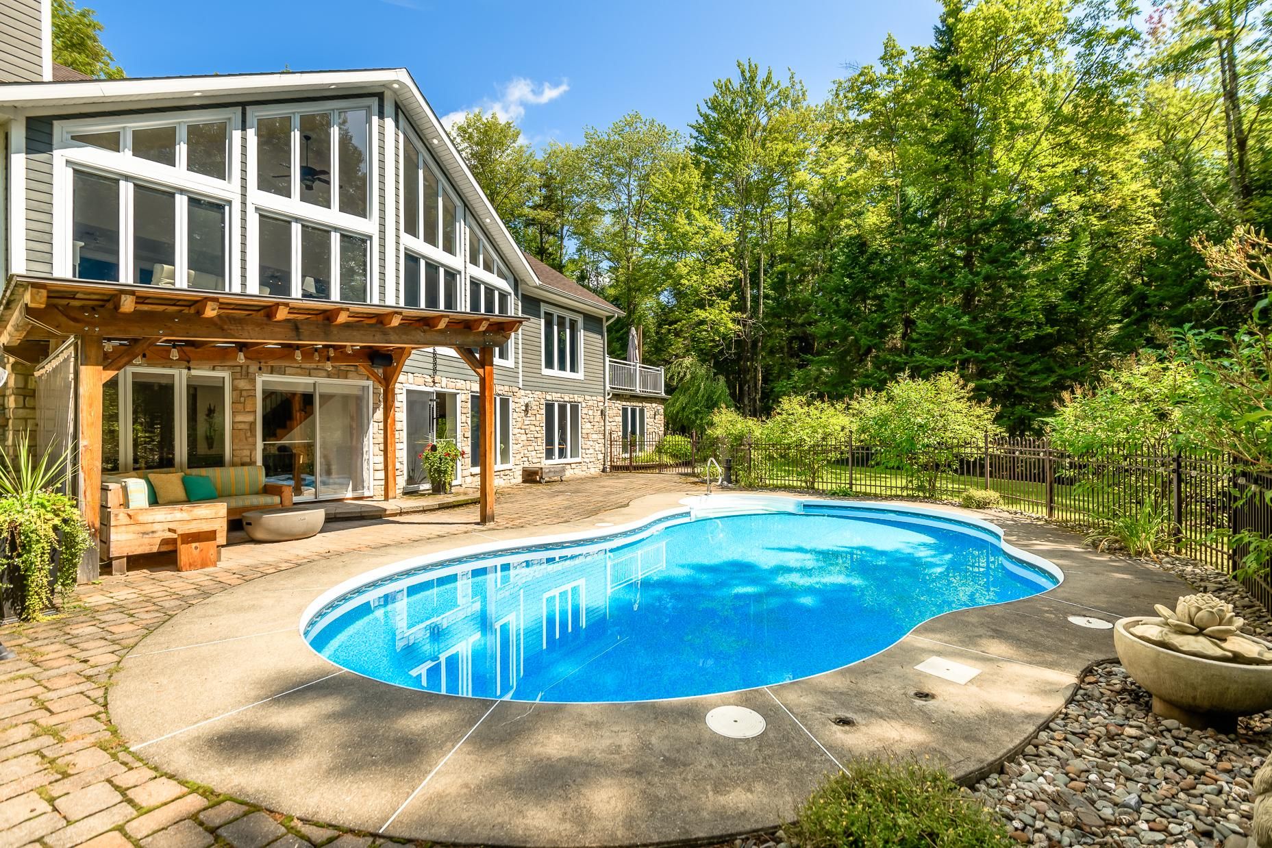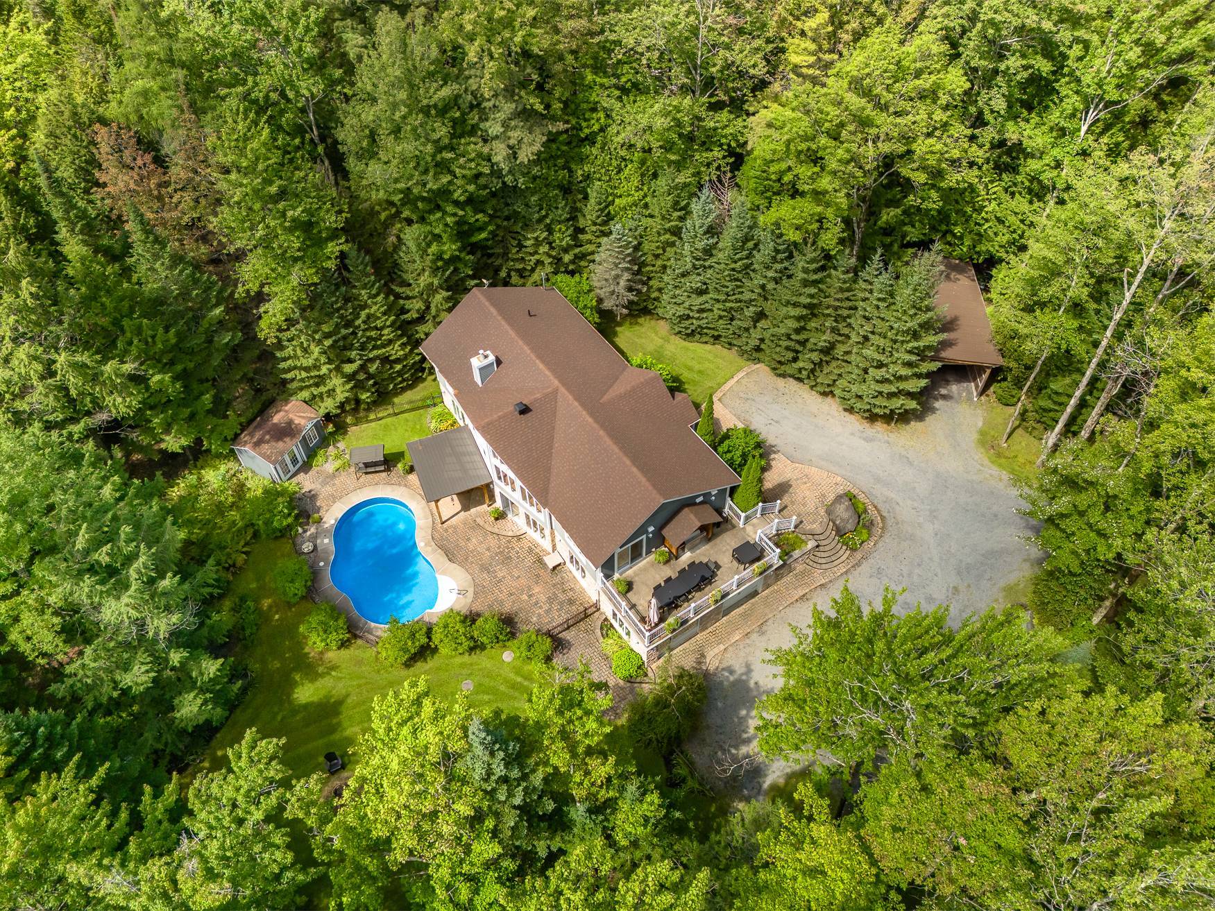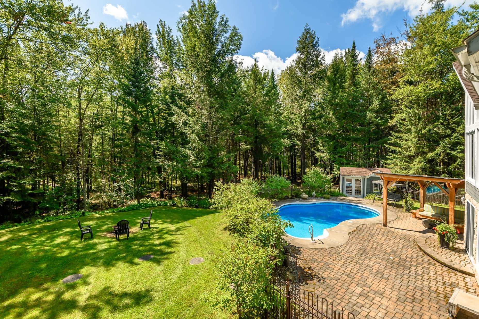 Nichée au coeur d'un magnifique boisé, cette spacieuse propriété offre un cadre de vie exceptionnel avec un sentier à l'arrière menant à un accès privilégié au lac Brome. Conçue pour accueillir six chambres à coucher, avec ses trois salles de bains, elle est idéale pour une grande famille ou pour établir une pratique professionnelle à domicile avec son accès extérieur privé. La maison bénéficie d'une lumière abondante grâce à sa généreuse fenestration et d'un rez-de-jardin qui maximise la luminosité et offre un accès direct à la piscine creusée. Un garage intégré, une grande terrasse et un abri d'auto complètent parfaitement cette demeure.