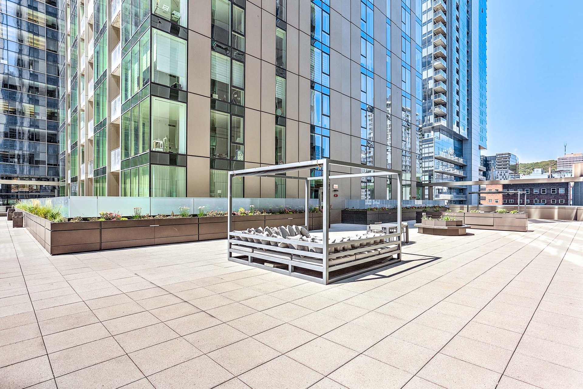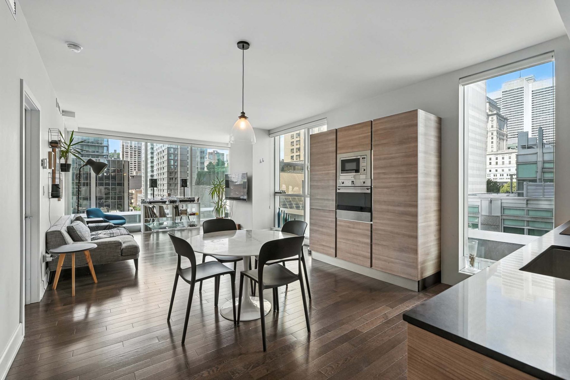 Vivez au rythme du centre-ville dans cette unité contemporaine baignée de lumière, avec vues imprenables sur l'icône montréalaise qu'est la Place Ville Marie. Plan sans perte d'espace : cuisine ouverte, salon & salle à manger avec balcon, deux salles de bain dont une attenante à la chambre principale. Exposition ouest recherchée. Immeuble réputé avec services dignes d'un hôtel 5 étoiles : piscine, gym, spa, terrasse extérieure & plus. Un mode de vie pratique, chic & sans compromis.