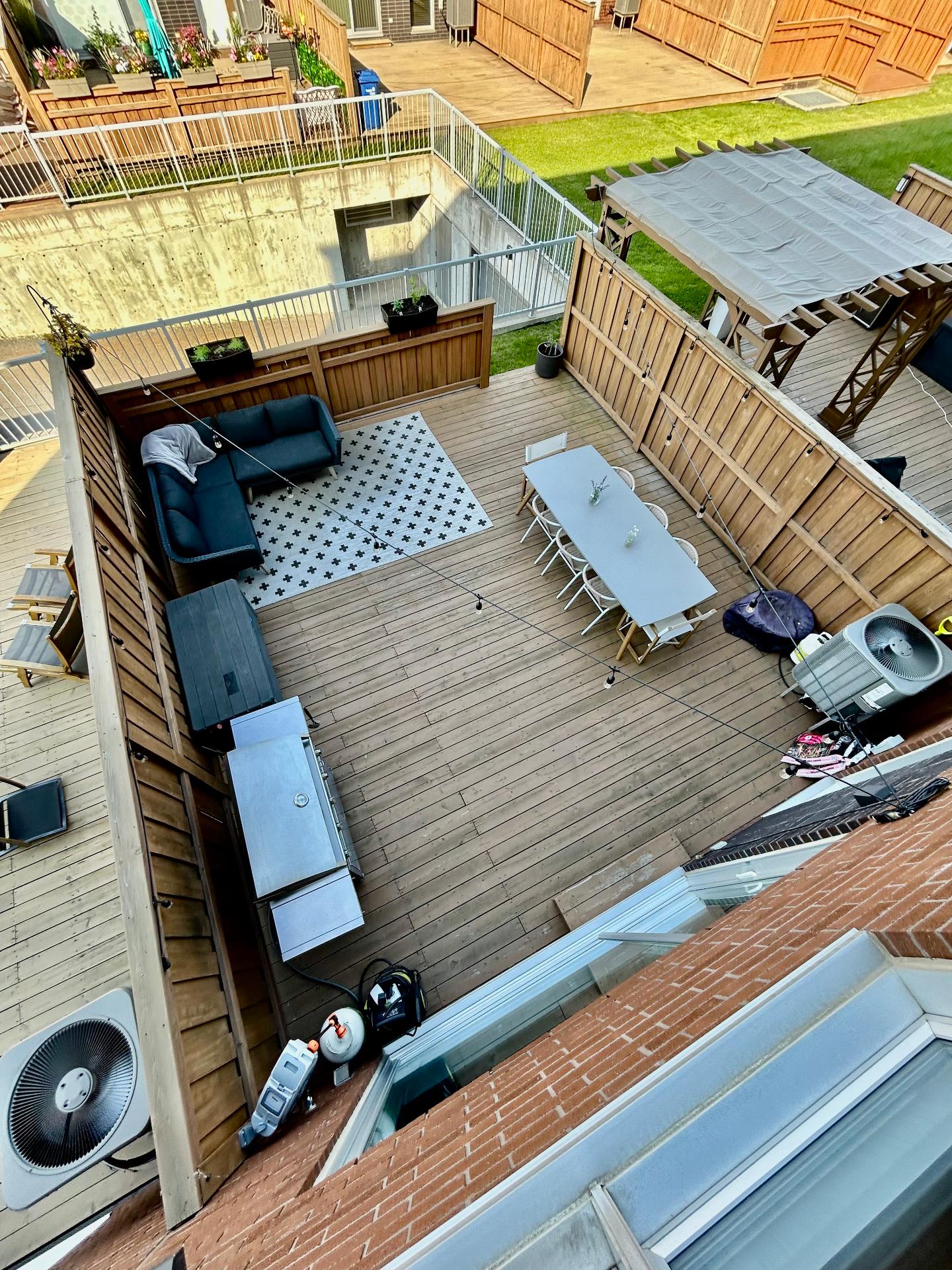 - Laveuse et sécheuse, supports à télévisions, système de haut-parleur SONOS dans le plafond de la mezzanine, lumières sur la terrasse et effets personnel des vendeurs.