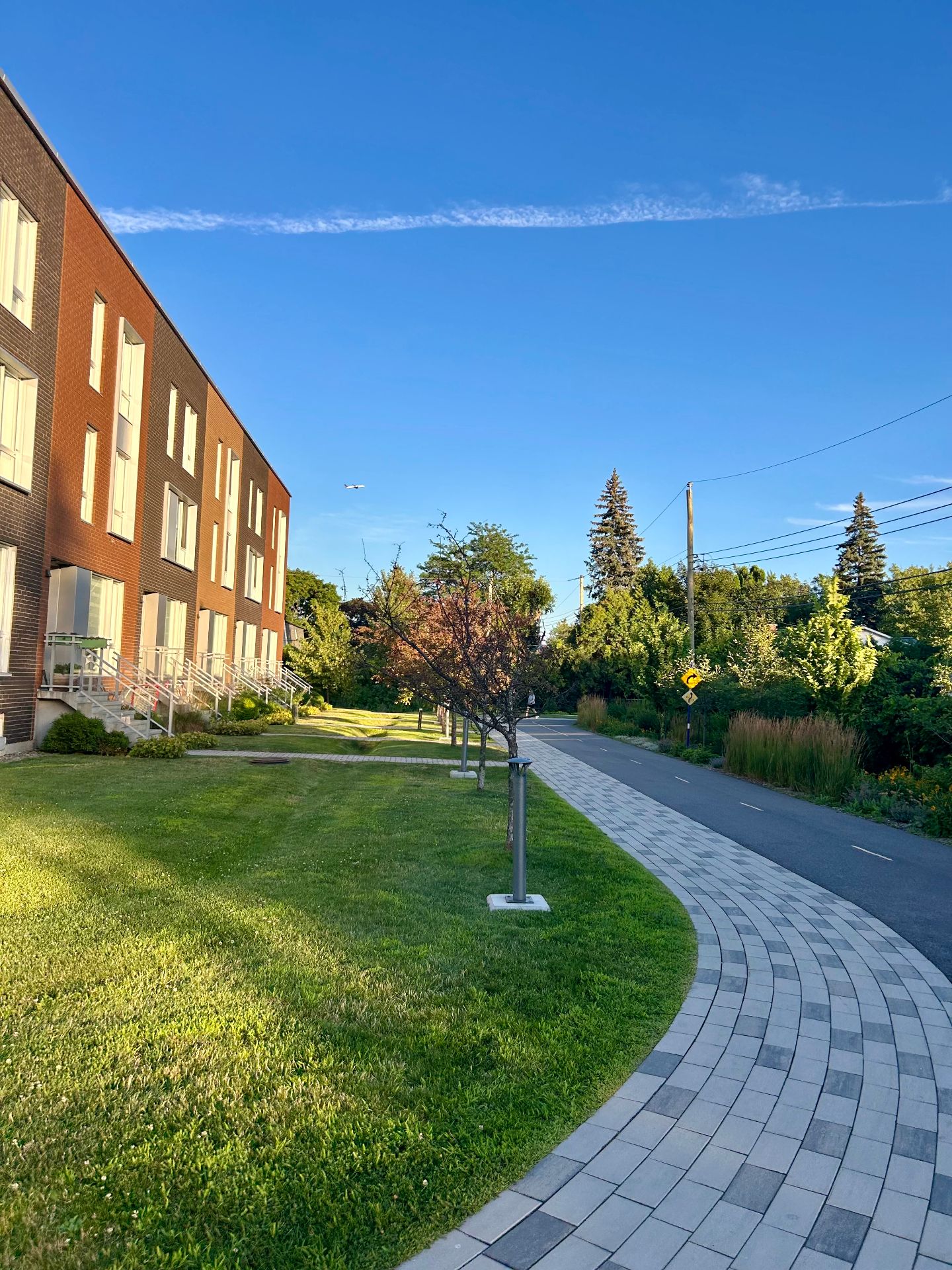 À l'avant, une piste cyclable longe la propriété, assurant une tranquillité supérieure, peu de circulation automobile et un environnement sécuritaire pour les enfants. Vous profitez également d'un accès rapide aux parcs, écoles, garderies, commerces, transports en commun et aux principaux axes routiers. Un équilibre parfait entre nature, vie de quartier et commodités urbaines.