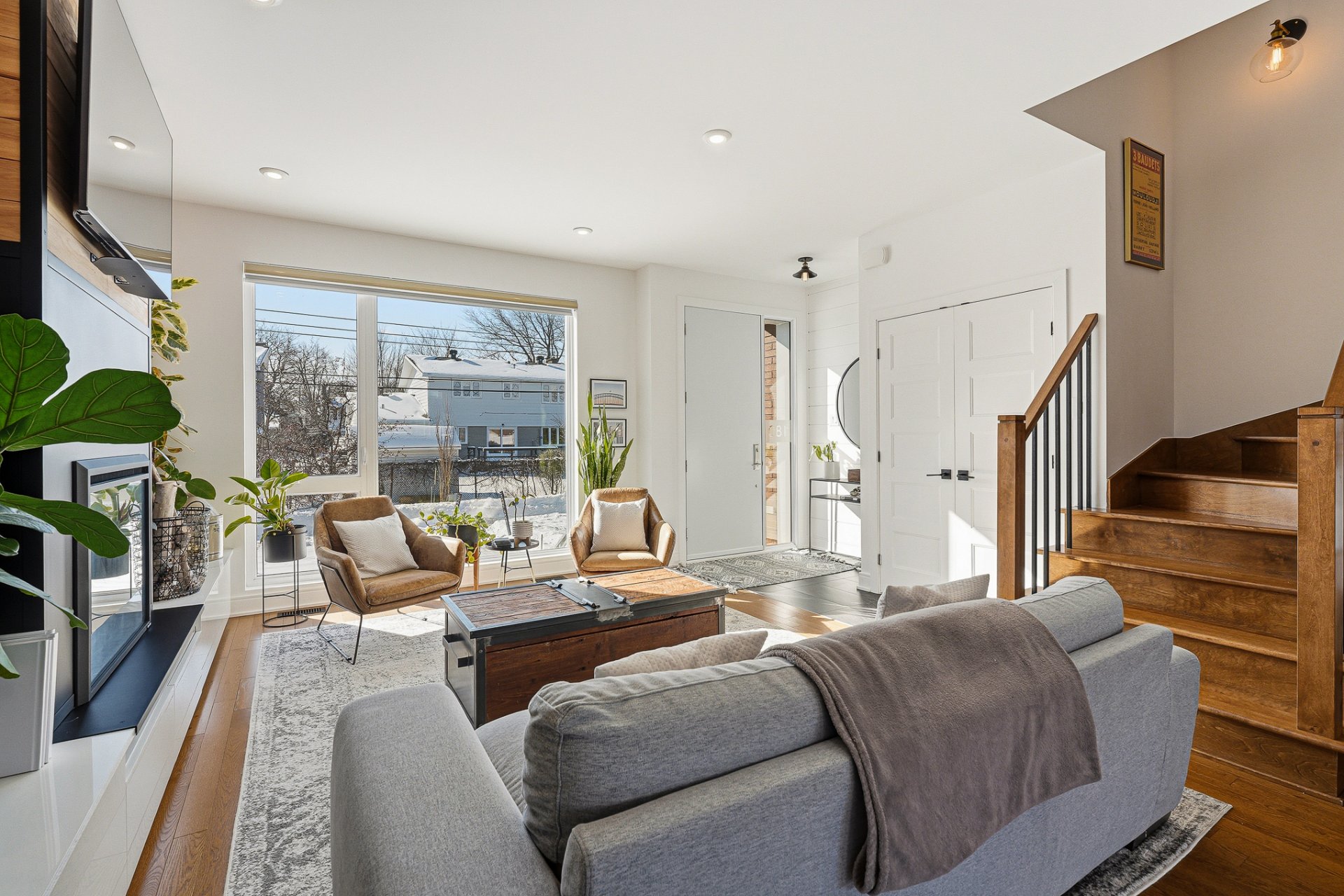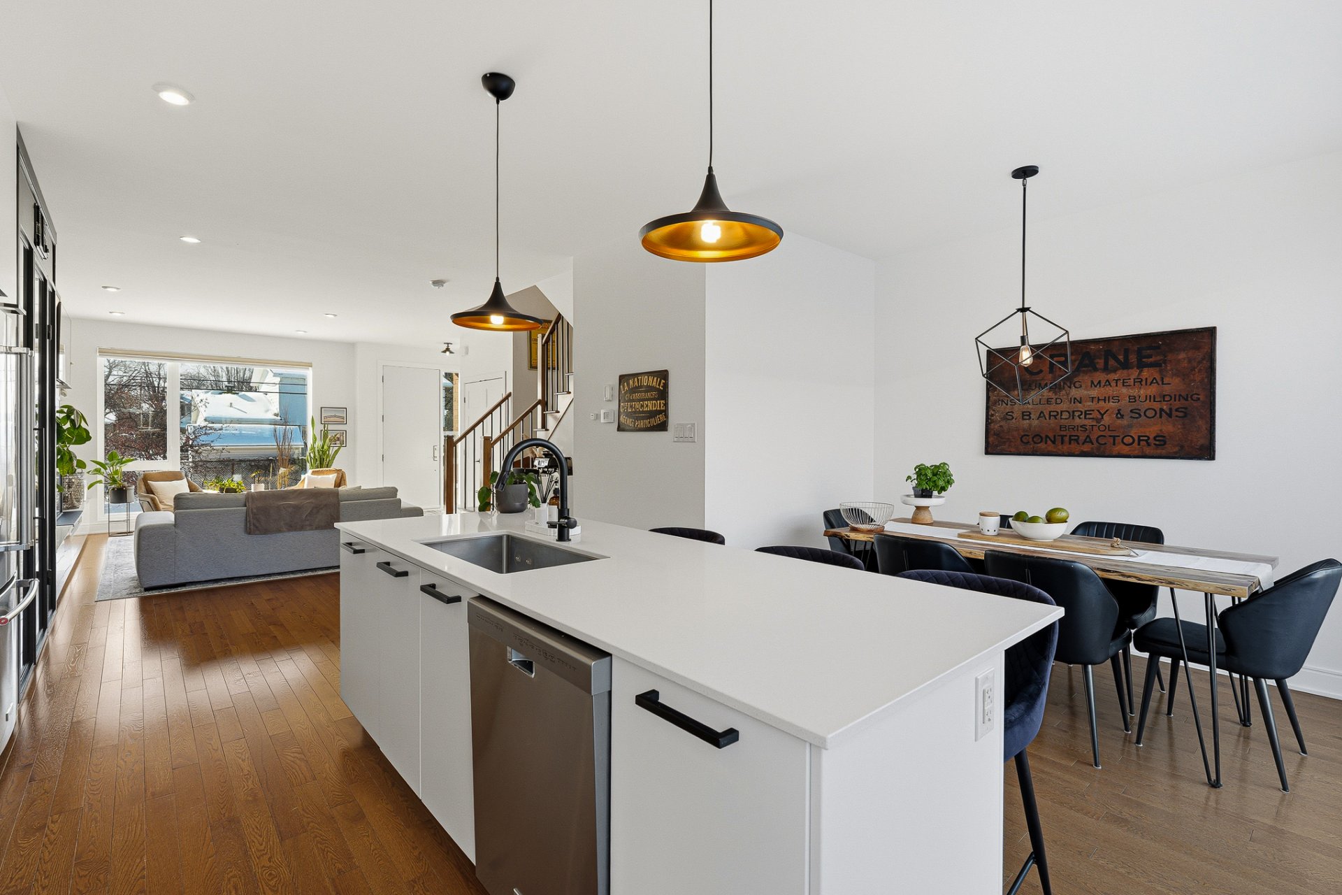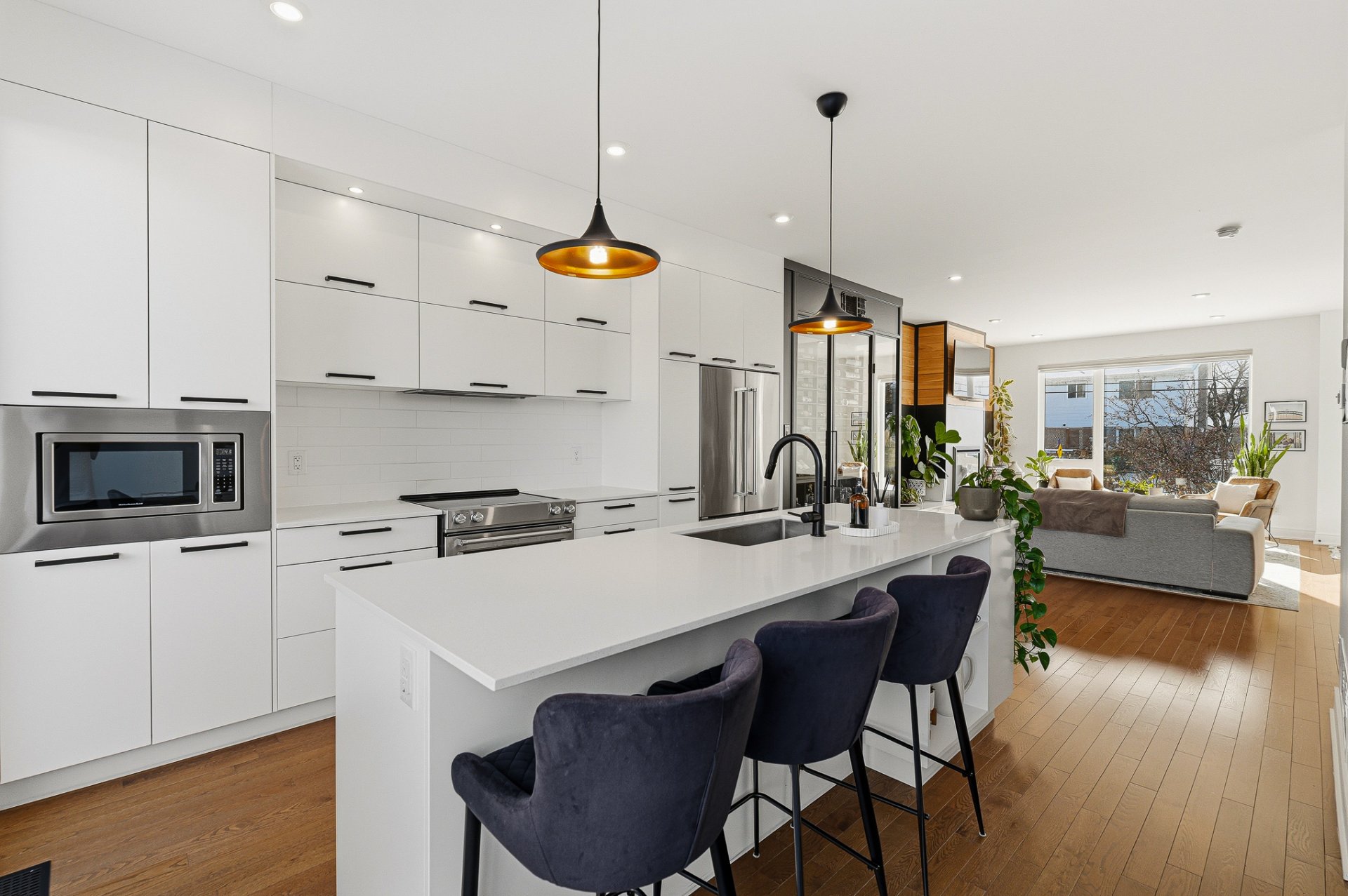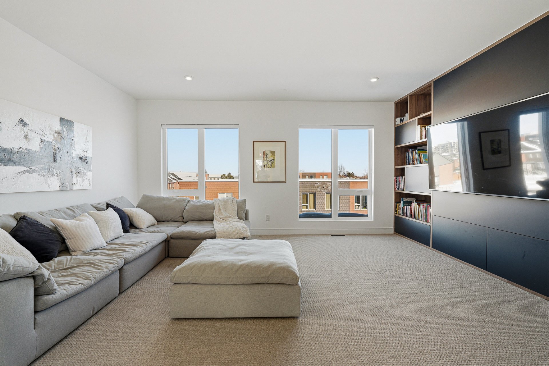 Impeccable maison de ville sur trois étages offrant des espaces lumineux, des matériaux de qualité supérieure et une configuration polyvalente. Aire ouverte avec foyer électrique, cellier sur mesure, cuisine moderne équipée et grande terrasse pour recevoir. Quatre chambres, dont une suite des maîtres avec walk-in et salle de bain attenante, vaste salle familiale, sous-sol multifonctionnel et garage double avec borne électrique. Piste cyclable à l'avant procurant tranquillité et intimité, à proximité des parcs, commerces et transports.