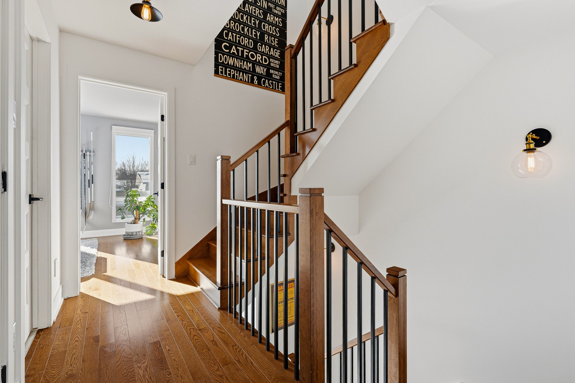 Dès le rez-de-chaussée, vous serez charmés par l'aire de vie ouverte et lumineuse. Le salon chaleureux avec foyer électrique s'intègre harmonieusement à la salle à manger et à la cuisine moderne équipée d'électroménagers inclus. Les matériaux de qualité supérieure, la fenestration abondante et le cellier sur mesure ajoutent une touche de raffinement à l'ensemble. Une salle d'eau pratique complète l'étage. À l'extérieur, profitez d'une très grande terrasse parfaite pour les BBQ, les repas en famille et les moments de détente.