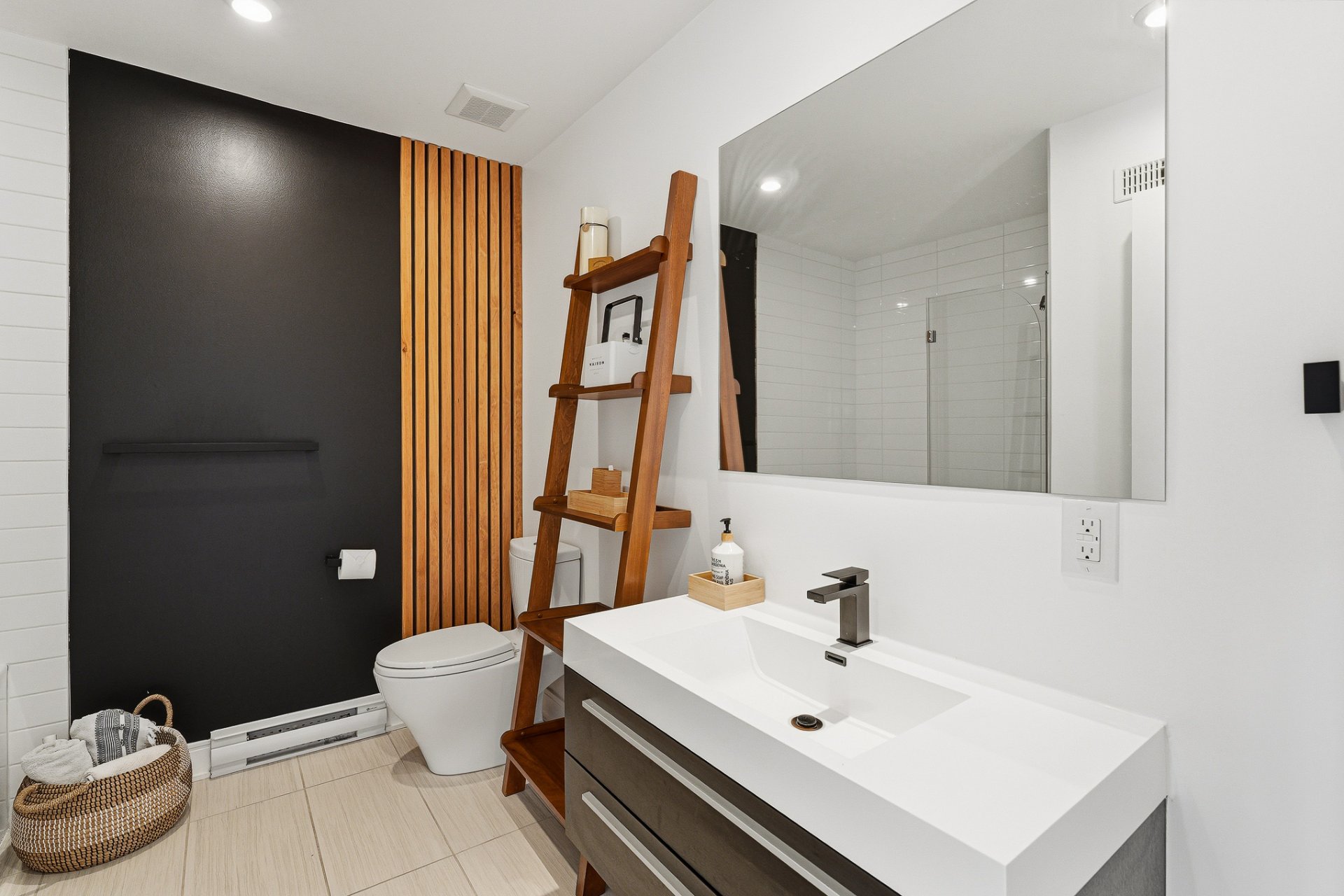 Le sous-sol offre une pièce additionnelle pouvant servir de vestiaire, bureau ou salle de jeu, ainsi qu'un walk-in de rangement. Un garage double avec borne de recharge pour véhicule électrique complète le tout.