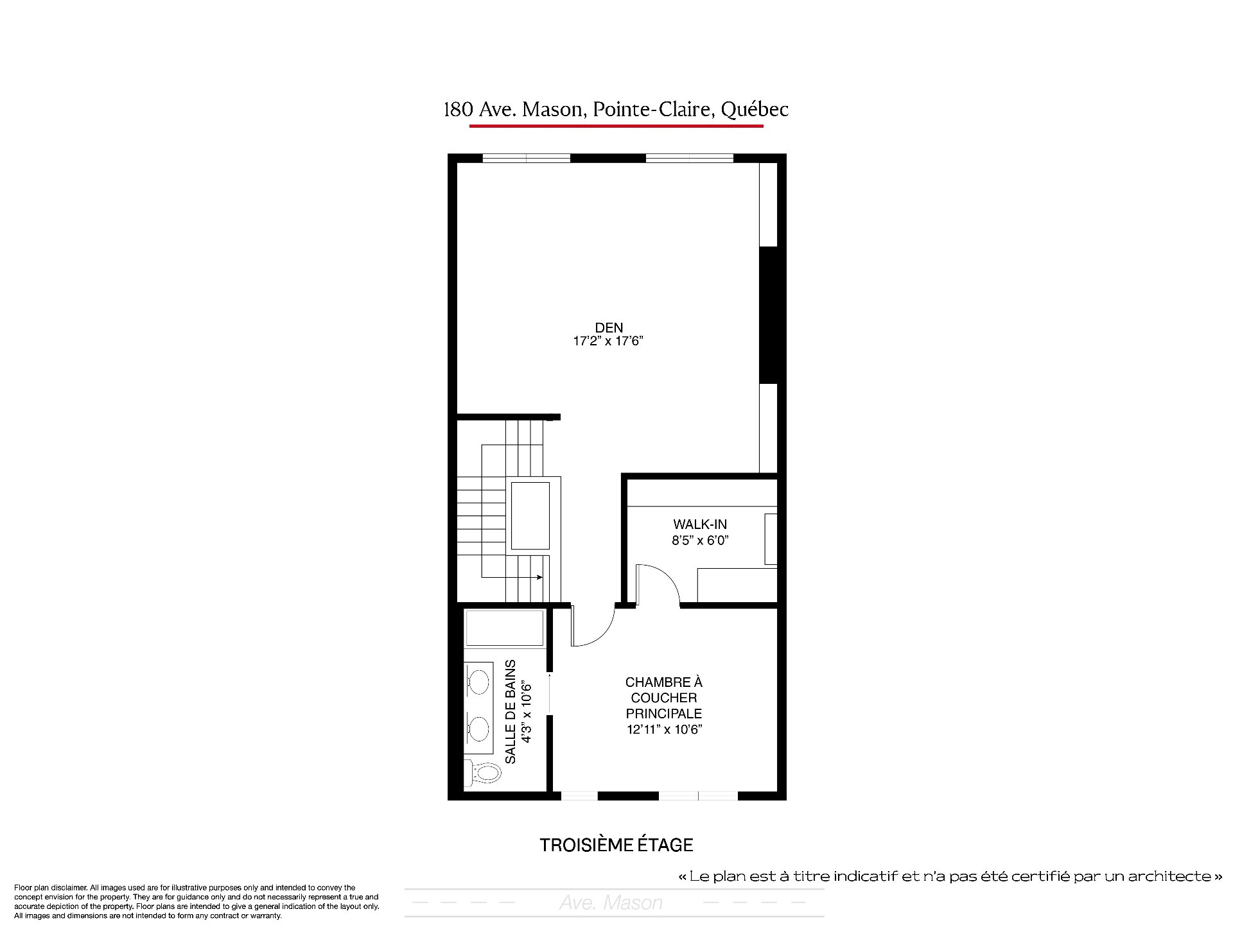 Le troisième étage propose un espace polyvalent et intime comprenant la chambre des maîtres avec walk-in et salle de bain attenante. On y retrouve aussi une grande salle familiale multifonctionnelle. Que ce soit comme salle de jeux, cinéma maison, bureau ou gym à domicile, cet espace commun est parfait pour rassembler toute la famille.