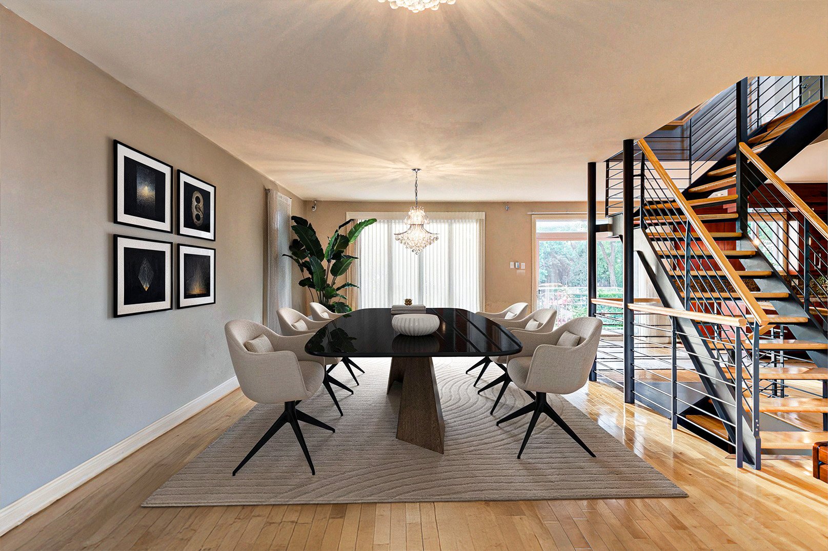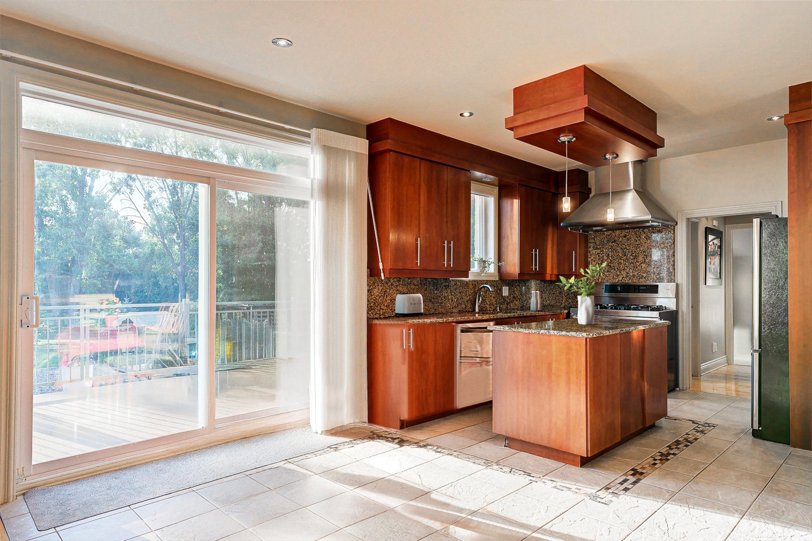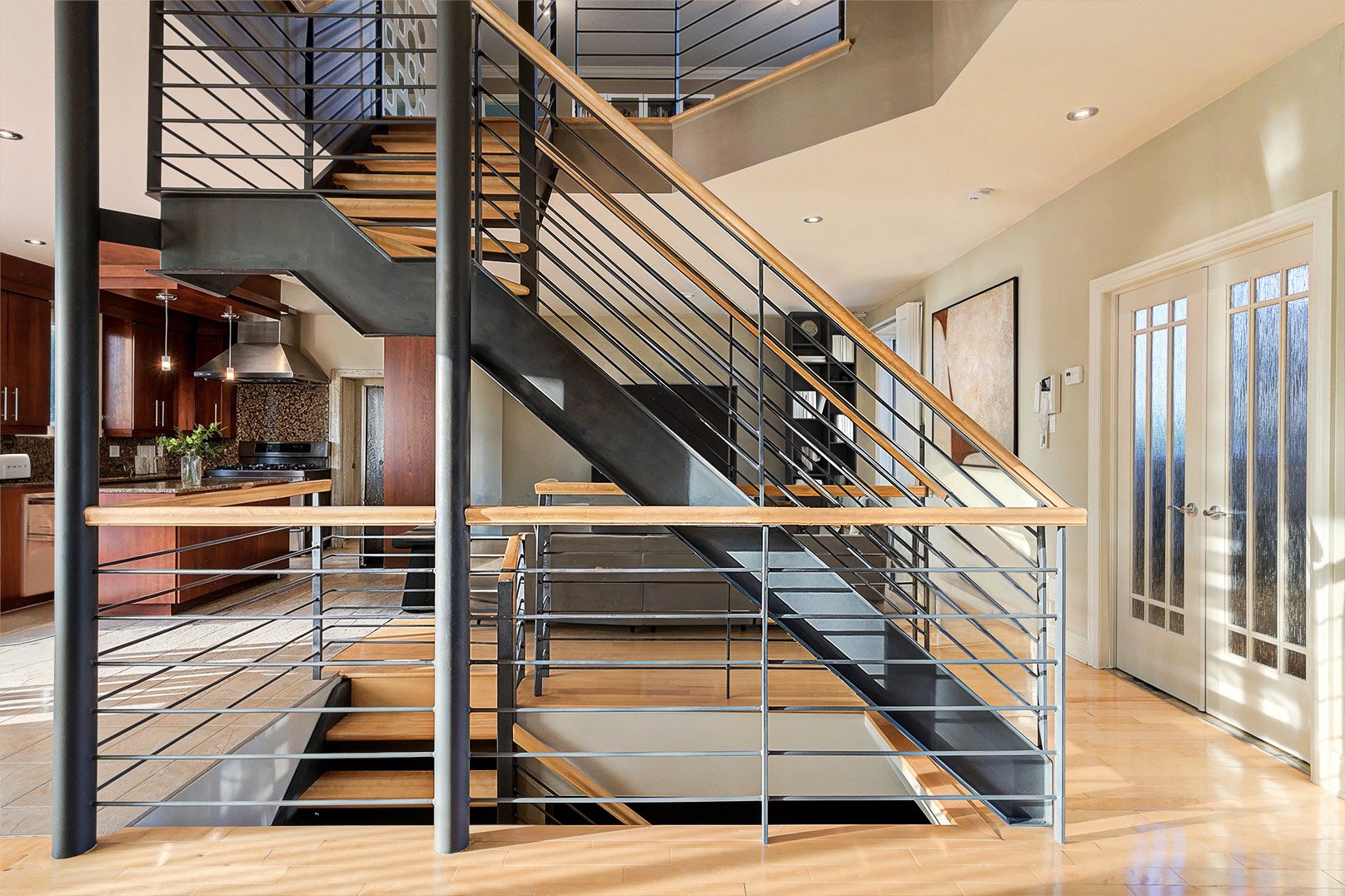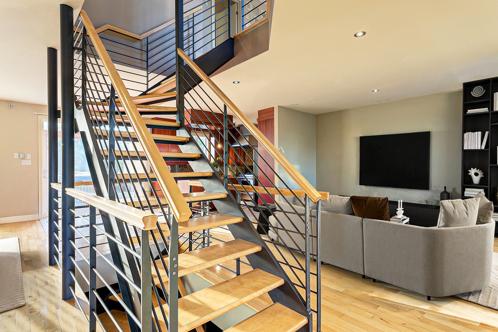 Dès l'entrée, un vestibule au charme classique, rehaussé de fenêtres ovales, ouvre sur un escalier central au design contemporain. La disposition à aire ouverte révèle des pièces baignées de lumière naturelle, des planchers chauffants, une salle à manger élégante, un salon accueillant et une cuisine gastronomique, véritable coeur de la maison, sublimée par le granit et des électroménagers de qualité professionnelle.