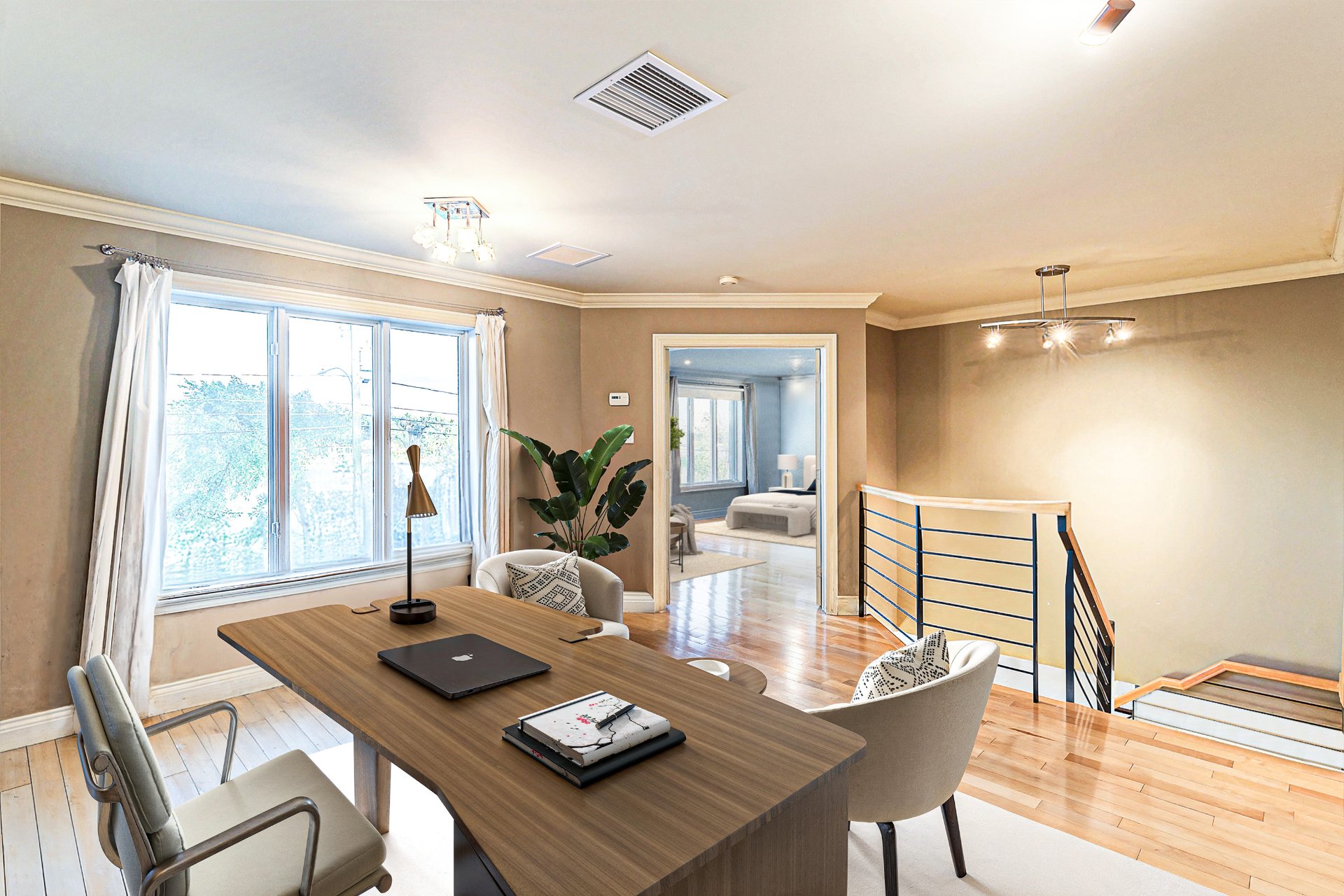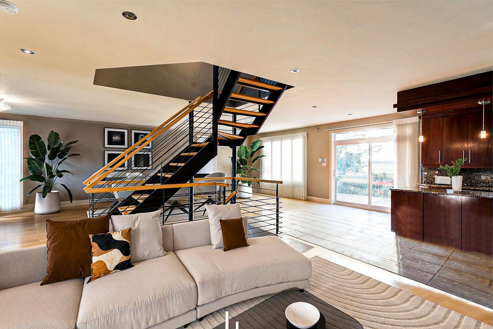À quelques minutes de la gare de Saint-Basile-le-Grand, des sentiers, écoles et services, cette demeure conjugue avec justesse prestige, quiétude et accessibilité.