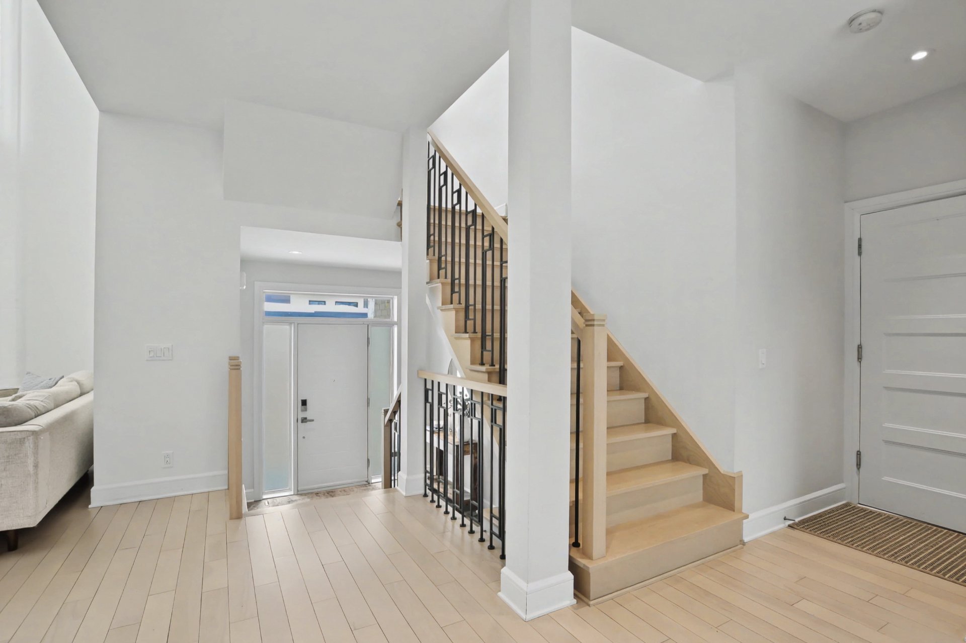 Le rez-de-chaussée à aire ouverte met en valeur une cuisine contemporaine avec beaucoup de rangement et un salon spectaculaire avec plafond de 18 pieds, offrant un effet « coup de coeur » immédiat.