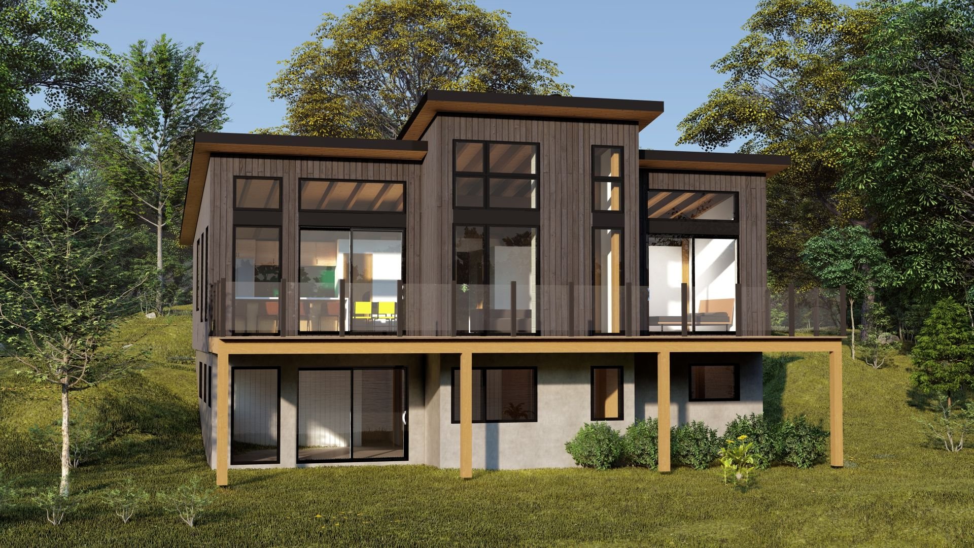 Projet Canopée à Ste-Brigite-de-Laval ; maison en structure de bois TimberFrame avec sous-sol en rez-de-jardin (sous-sol à finir) et vue sur la montagne. Offrant 2 chambres au rez-de-chaussé (ou 1 chambre plus bureau), vaste cuisine et séjour ouvert avec cathédrale et imposante fenestration vous permettant de bénéficier d'une vue incroyable sur l'environnement boisé. Comptoir de pierre, foyer, thermopompe, tout y est. Sous-sol à finir avec possibilité de 3 chambres supplémentaires. À proximité de la rivière Montmorency et à 30 minutes du centre-ville de Québec - le meilleur des 2 mondes!
