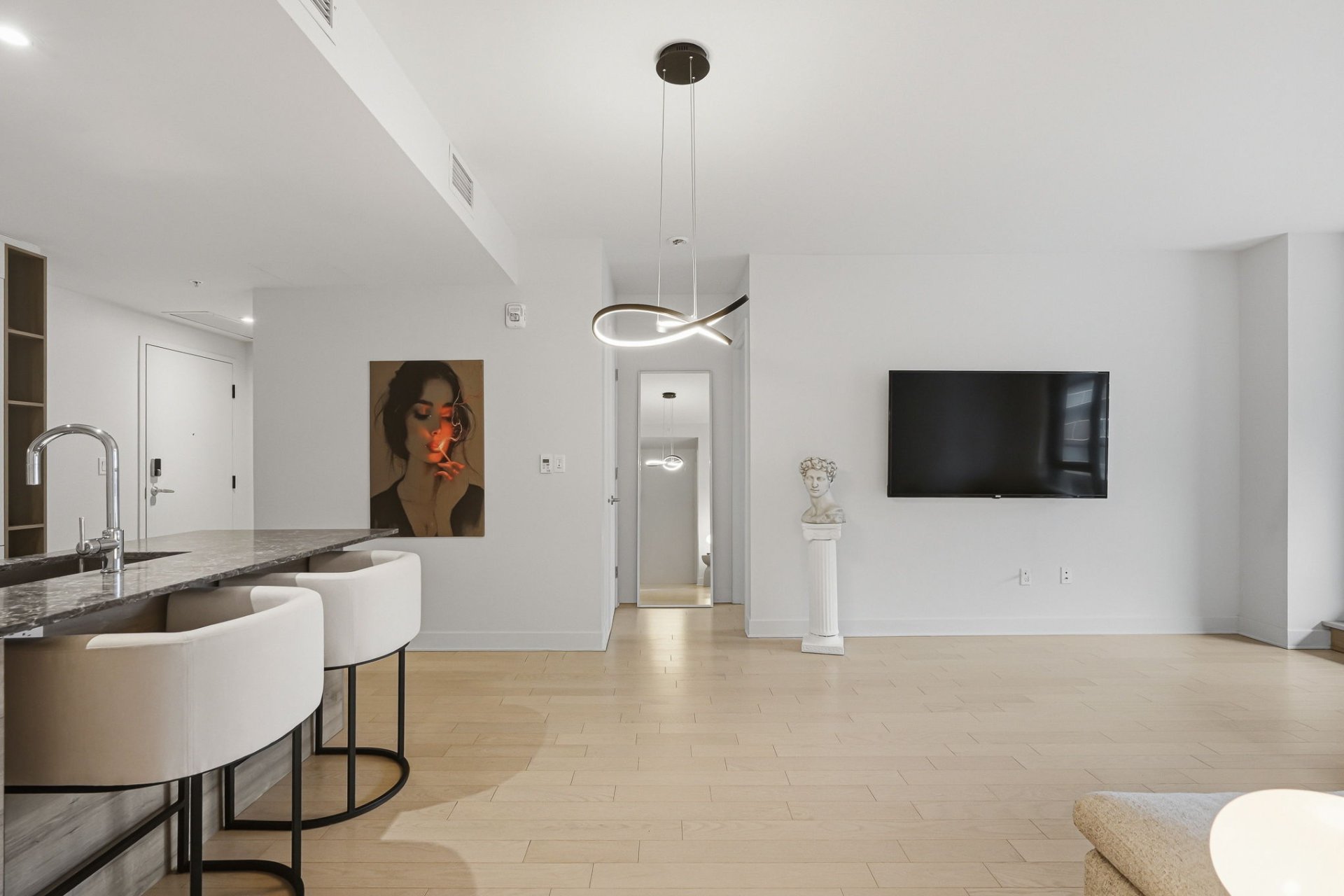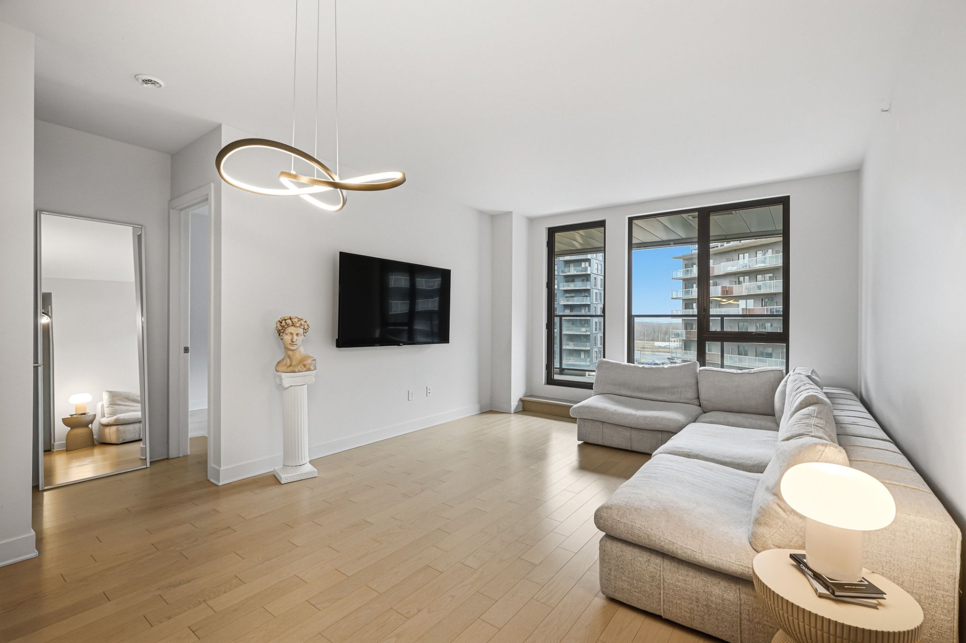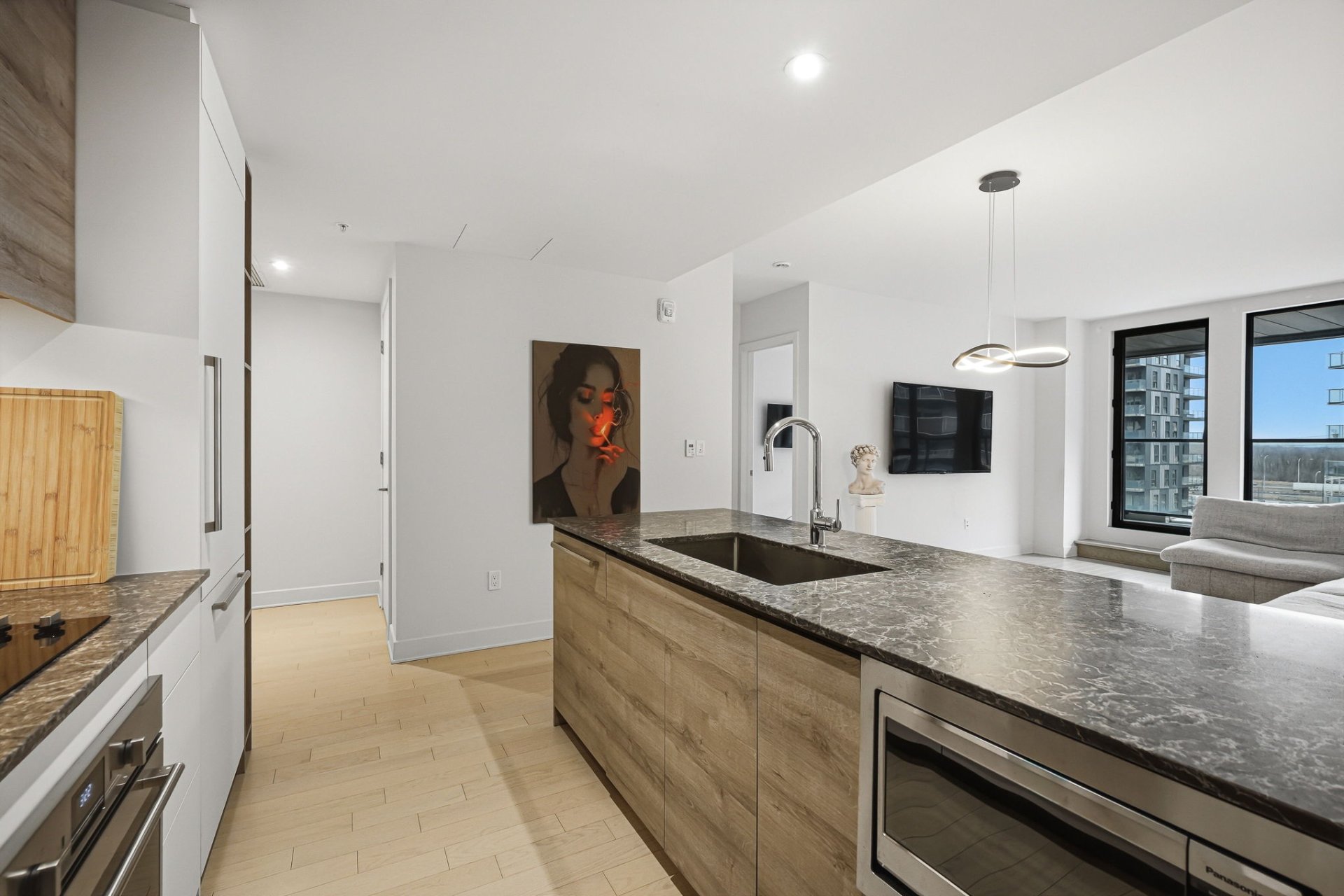 Au coeur du Solar Uniquartier se dévoile une superbe et rare unité de 2 chambres, 2 salles de bains avec terrasse couverte de 190 pc bruts. Bienvenue au Oria 1, le plus prestigieux projet de Brossard, alliant luxe et confort. Ce chic condo, impeccablement conçu, offre une vaste aire ouverte, une suite des maîtres avec walk-in et salle de bains attenante avec planchers chauffants, 3 penderies, en plus d'un garage intérieur et d'un locker. Vivez le luxe au quotidien : majestueux lobby avec gardien de sécurité, circuit spa scandinave avec piscine intérieure et sur le toit, centre sportif, skylounge & co-working. À 2 mins du REM et des services.