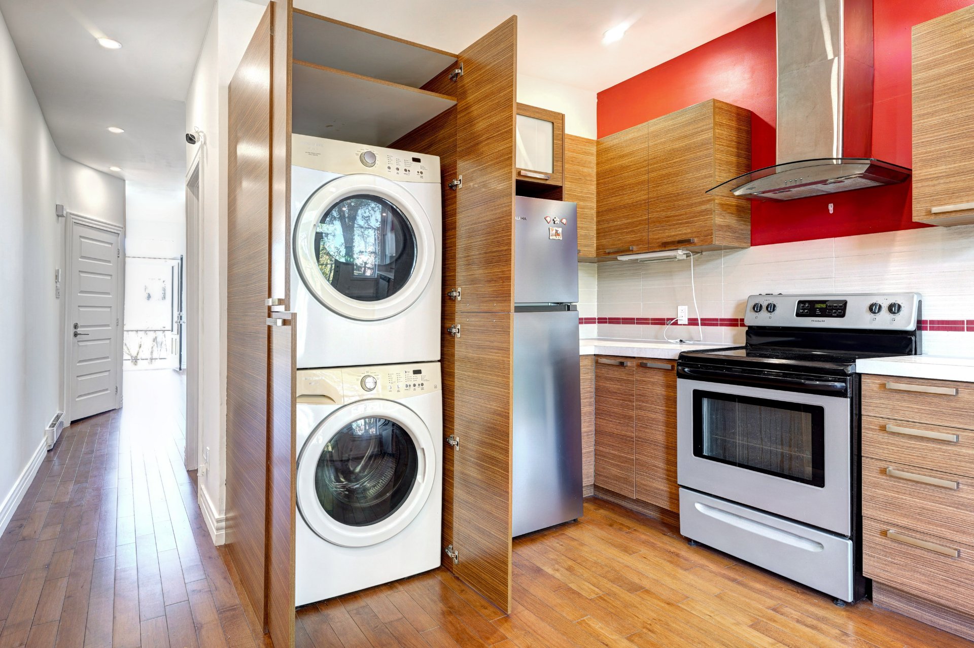 - Réfrigérateur, cuisinière, lave-vaisselle, laveuse, sécheuse, luminaires ainsi que le meuble du salon.