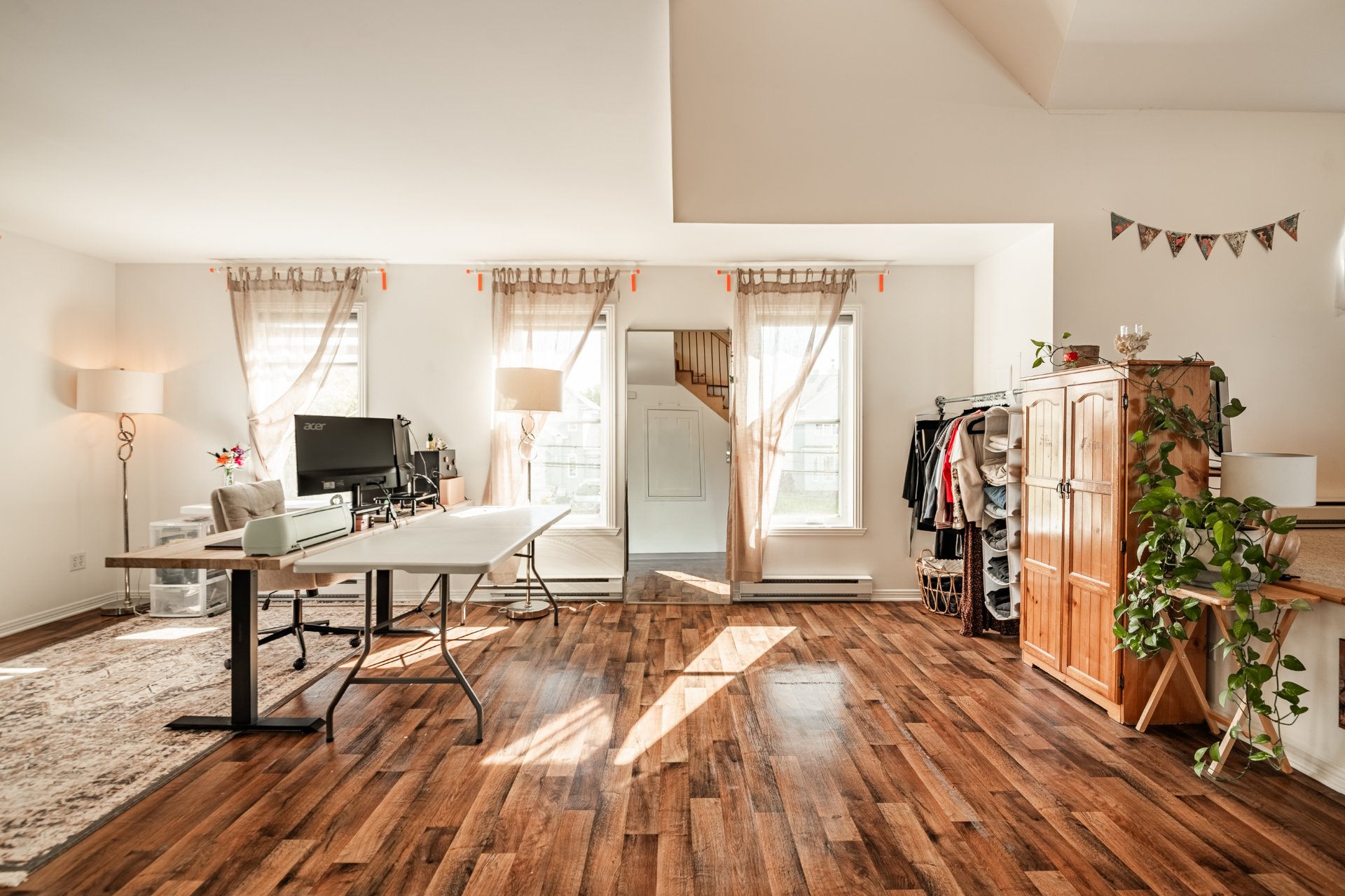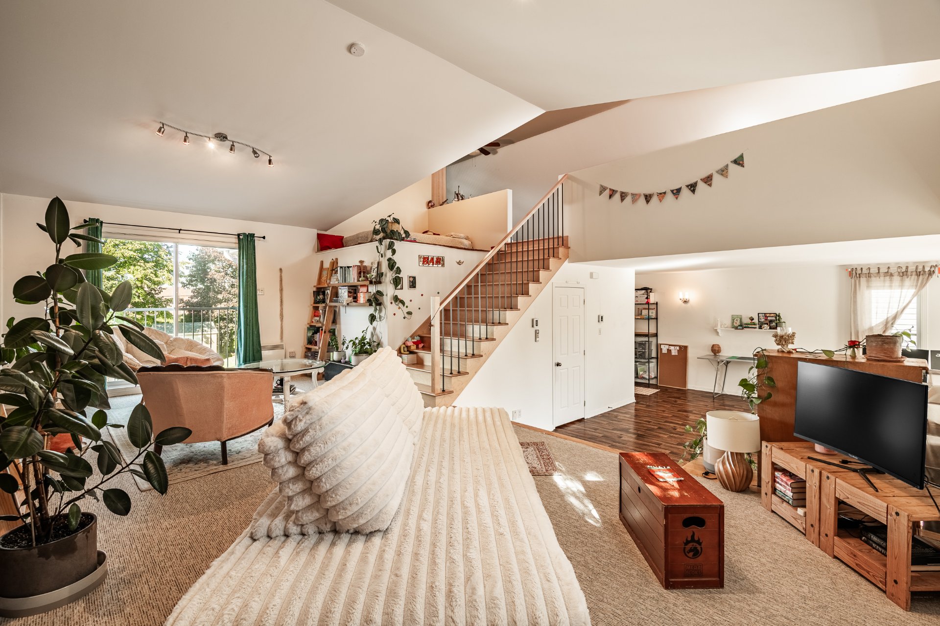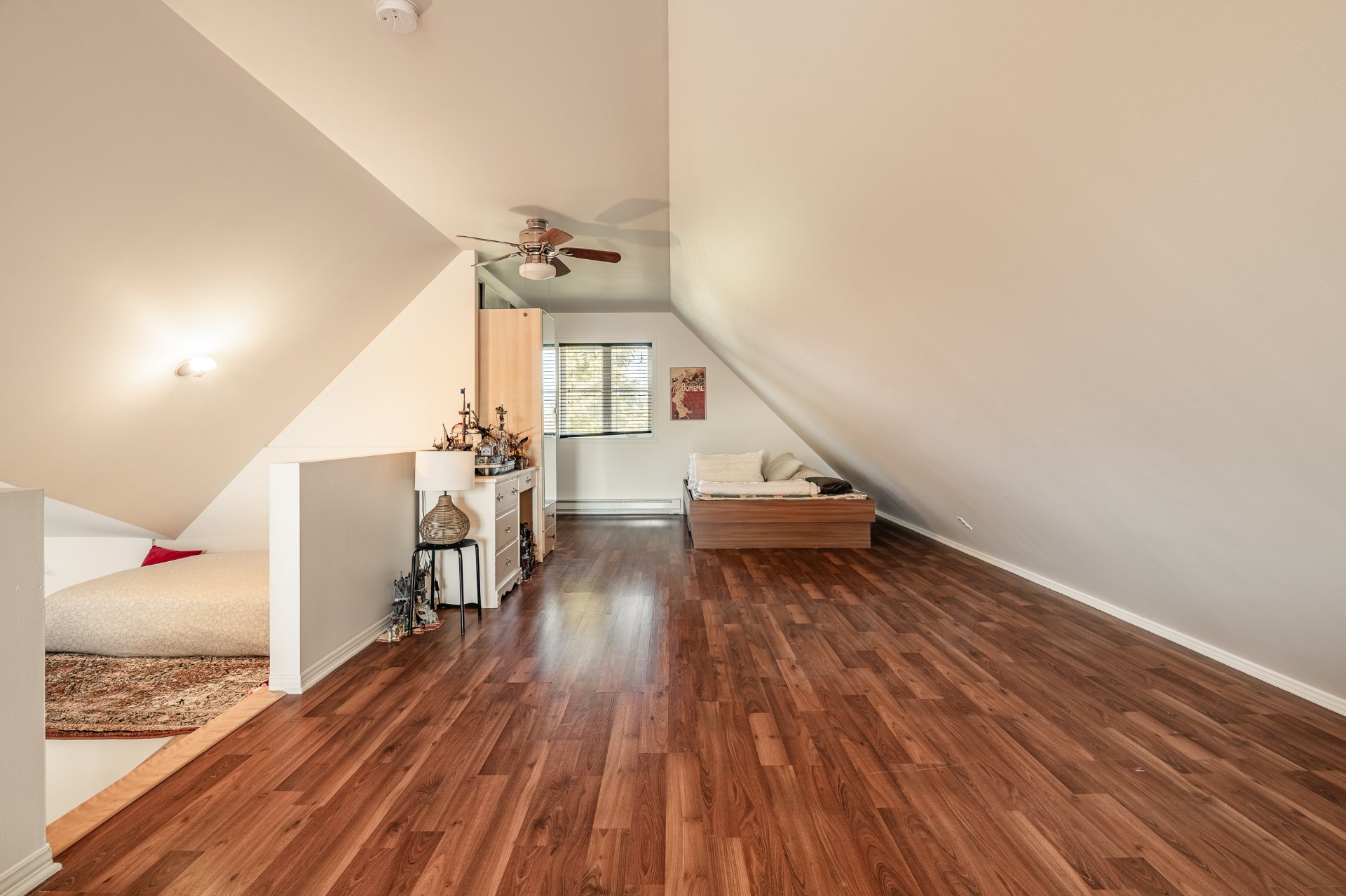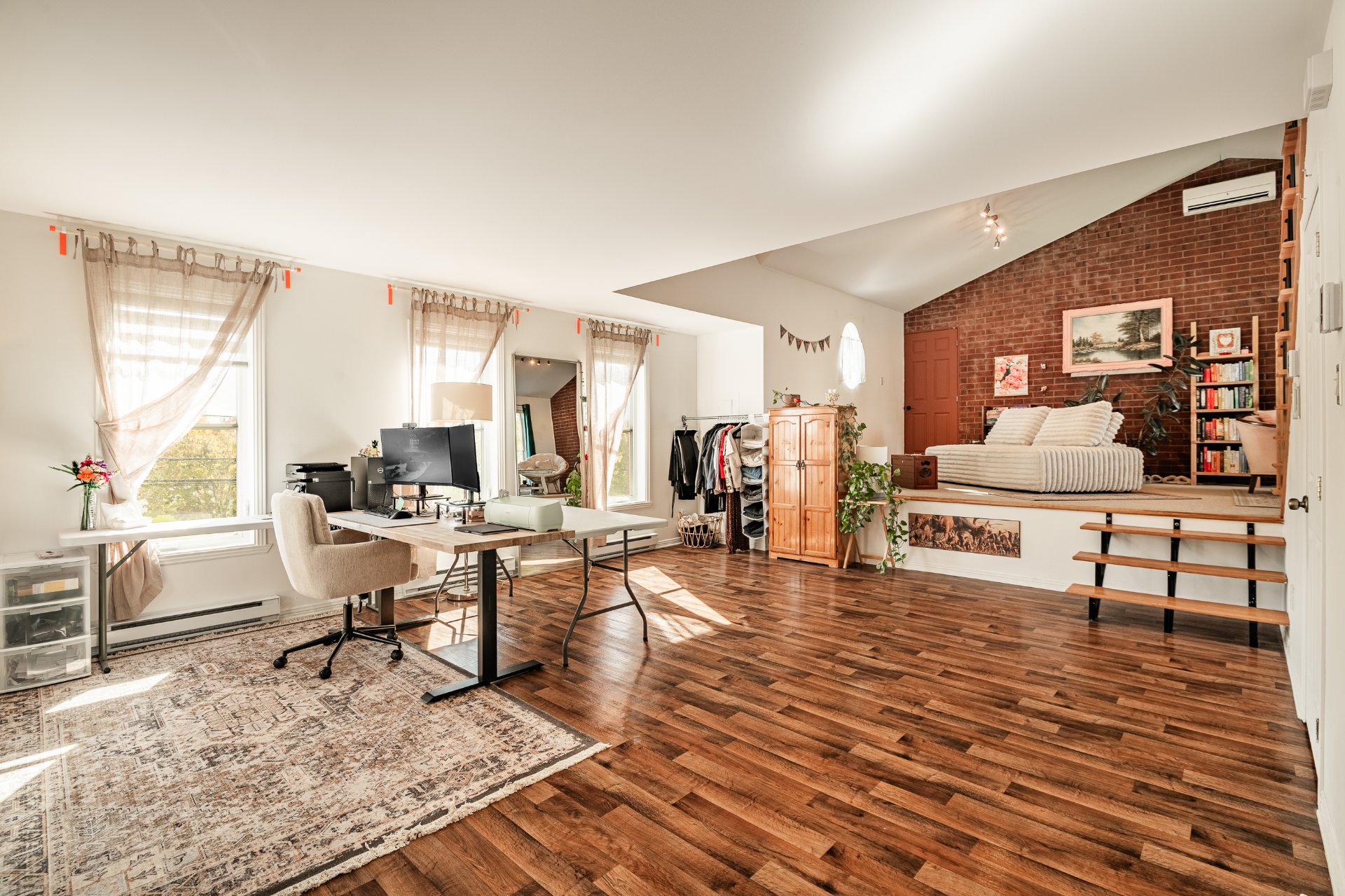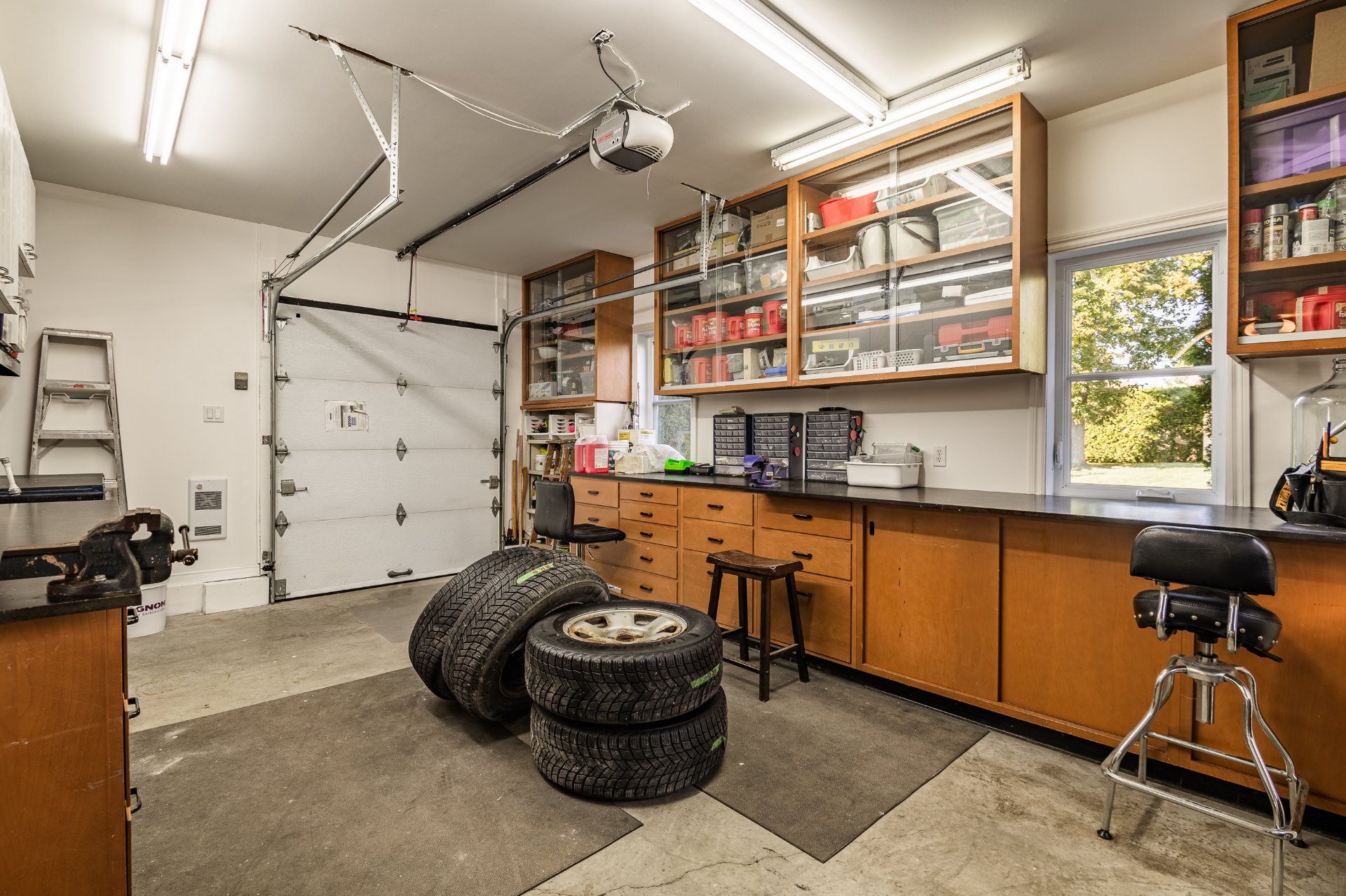 Le garage se distingue par son vaste atelier, ses rangements sur mesure ainsi que ses trois portes, dont deux à l'avant de la maison et une donnant sur la cour arrière. Il mène à un impressionnant loft habitable sur deux étages et demi, doté d'une cuisine, salon cathédrale, salle de bain et chambres additionnelles. Un espace rare et polyvalent, parfait pour loger un membre de la famille, un bureau à domicile ou un studio indépendant.