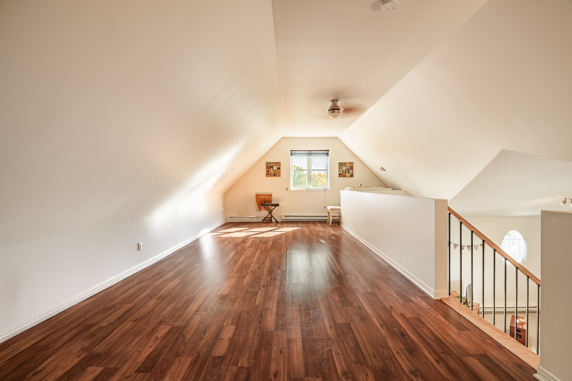 À l'étage, trois chambres spacieuses, une salle de bain complète et une salle de lavage fermée offrent un confort absolu. La suite principale, à plafond semi-cathédrale, comprend un walk-in aménagé et un vaste rangement mural.