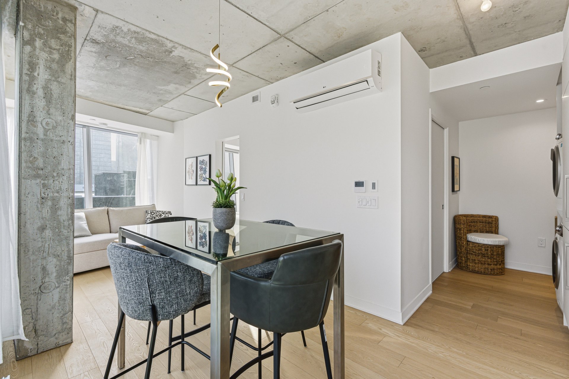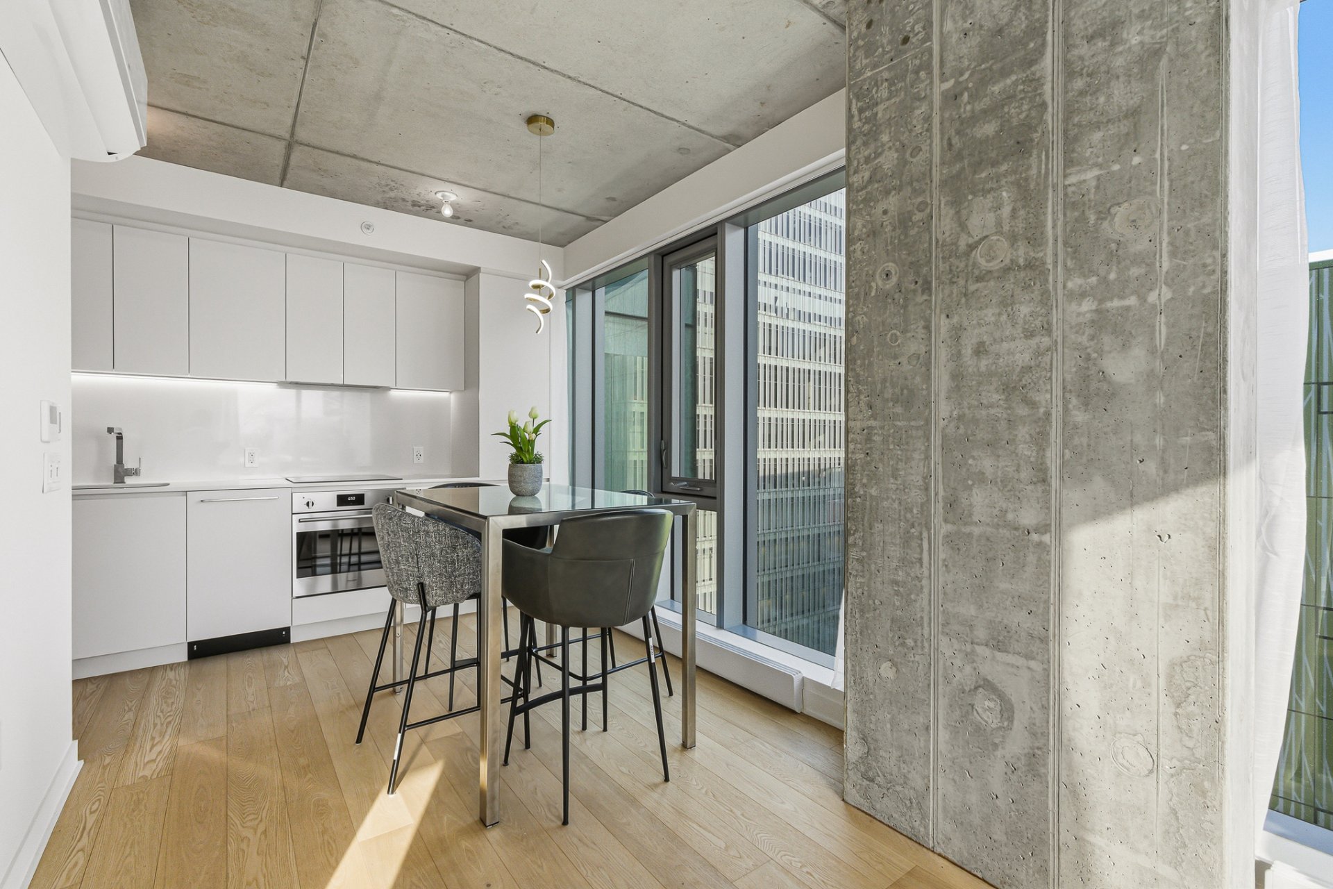 Bienvenue au 1005, situé au 10e étage vous offrant des vues imprenables de Montréal, une abondance de lumière naturelle et un plan conçus sur mesure pour maximiser la fonctionnalité de l'espace.