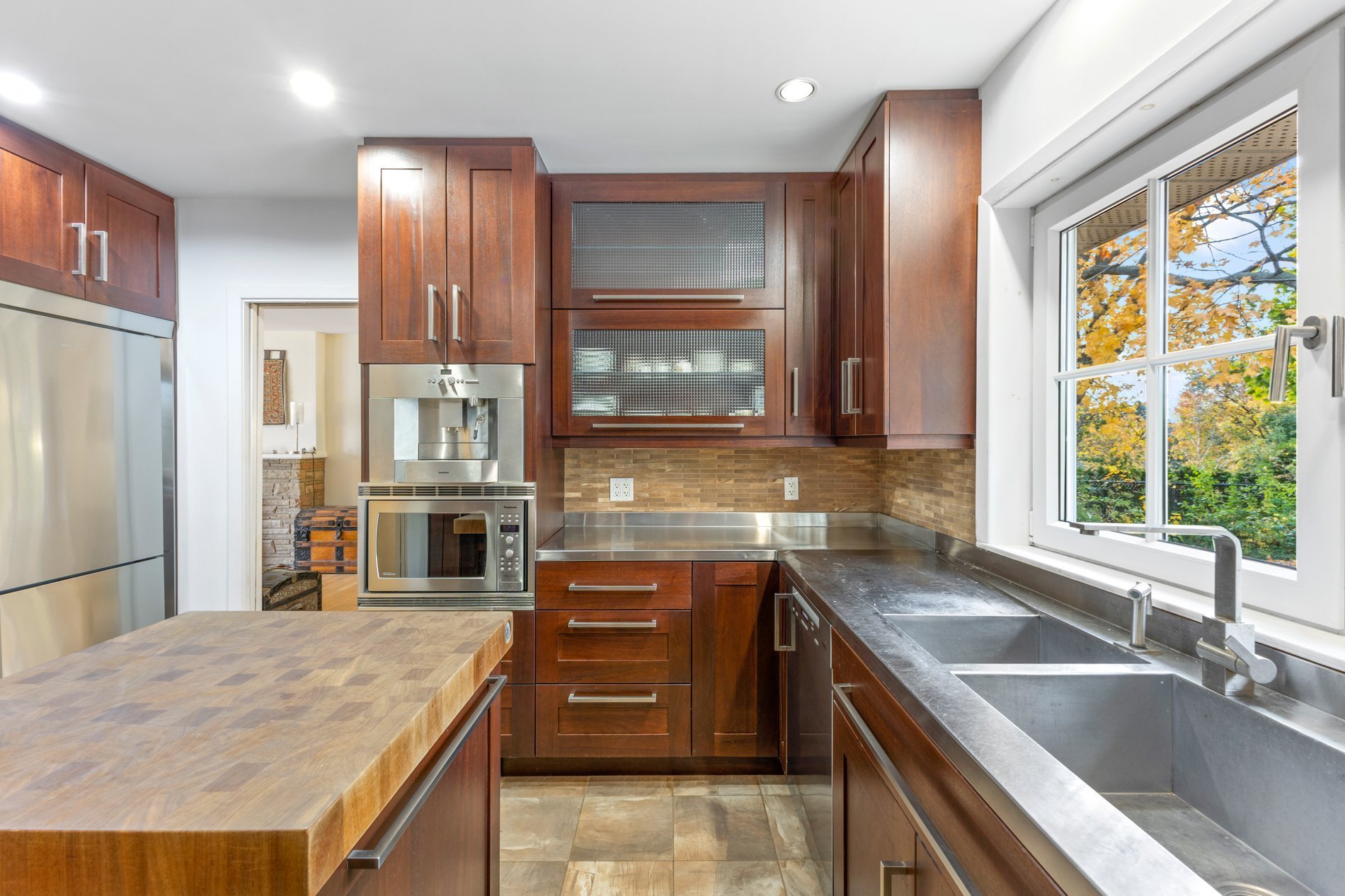 - Réfrigérateur (Fisher-Paykel), machine à expresso intégrée (Gaggenau), lave-vaisselle (Miele), cuisinière (KitchenAid), micro-ondes (Panasonic), ventilateur (Elica), îlot en bois d'érable, machine à laver et secheuse avec tiroirs de base (LG), congélateur 22 ft3, réservoir d'eau chaude 60 gal, système d'alarme (non relié), télévision dans la chambre, 2 ouvre-portes de garage.
