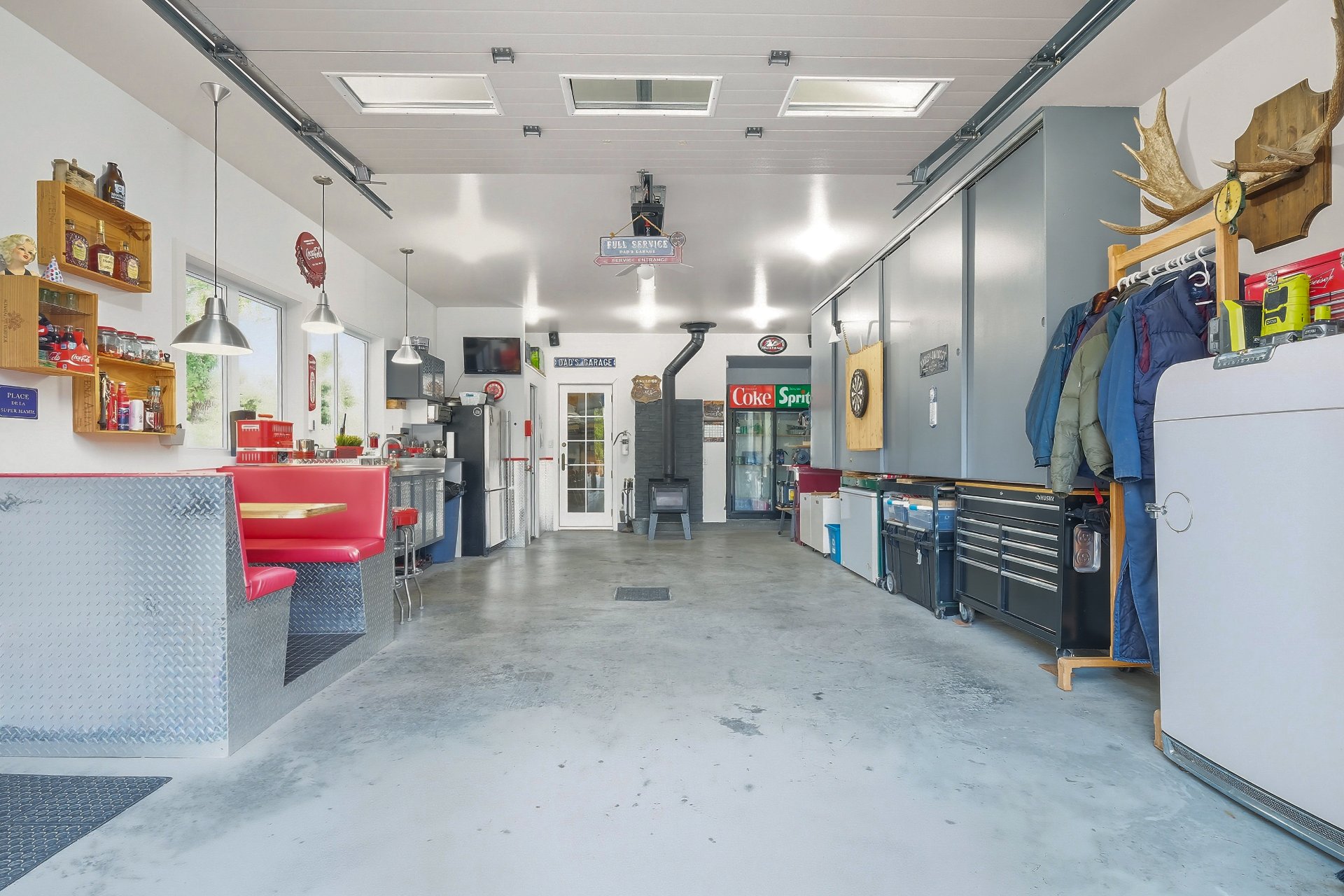 À l'extérieur, la cour est un véritable havre de paix : une grande terrasse, une piscine et un spa invitent à la détente et au plaisir. Un immense garage, véritable prolongement de la maison, complète à merveille cet espace.
