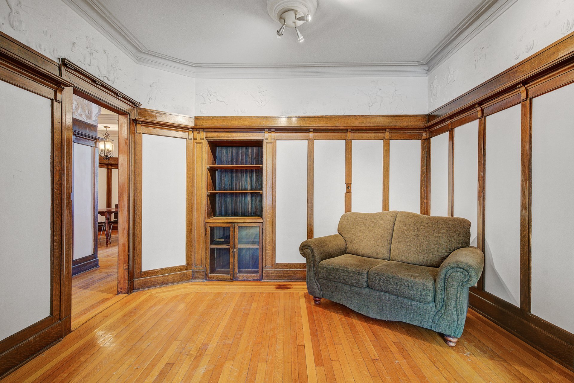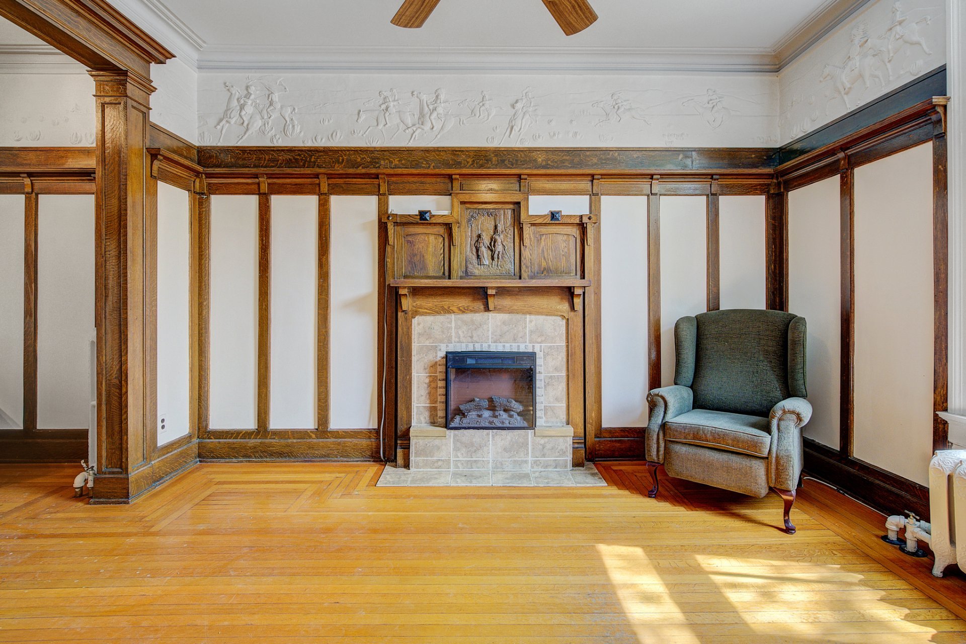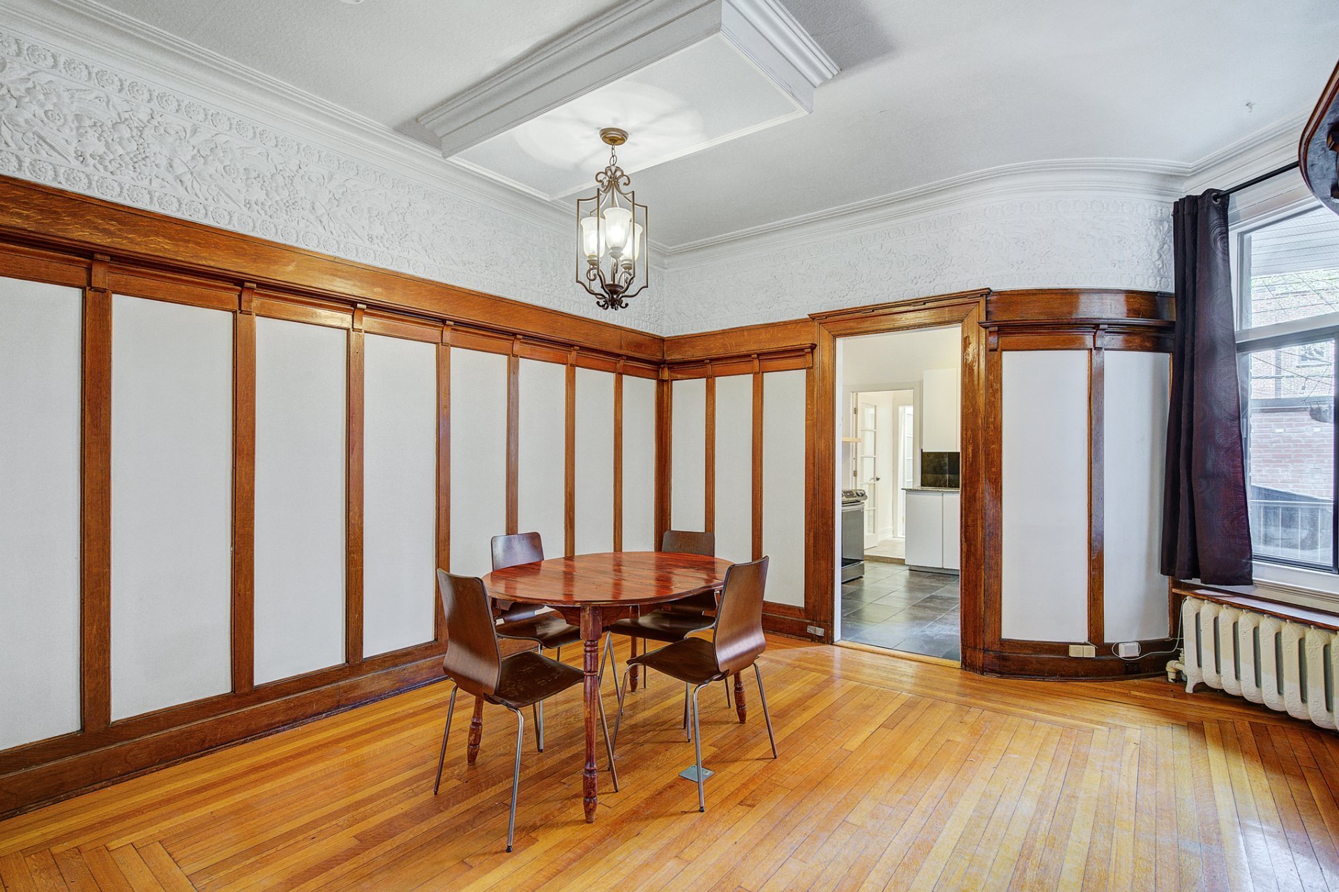 + Cachet Outremontais soigneusement conservé avec moulures, foyer décoratif, plâtres, vitraux et boiseries