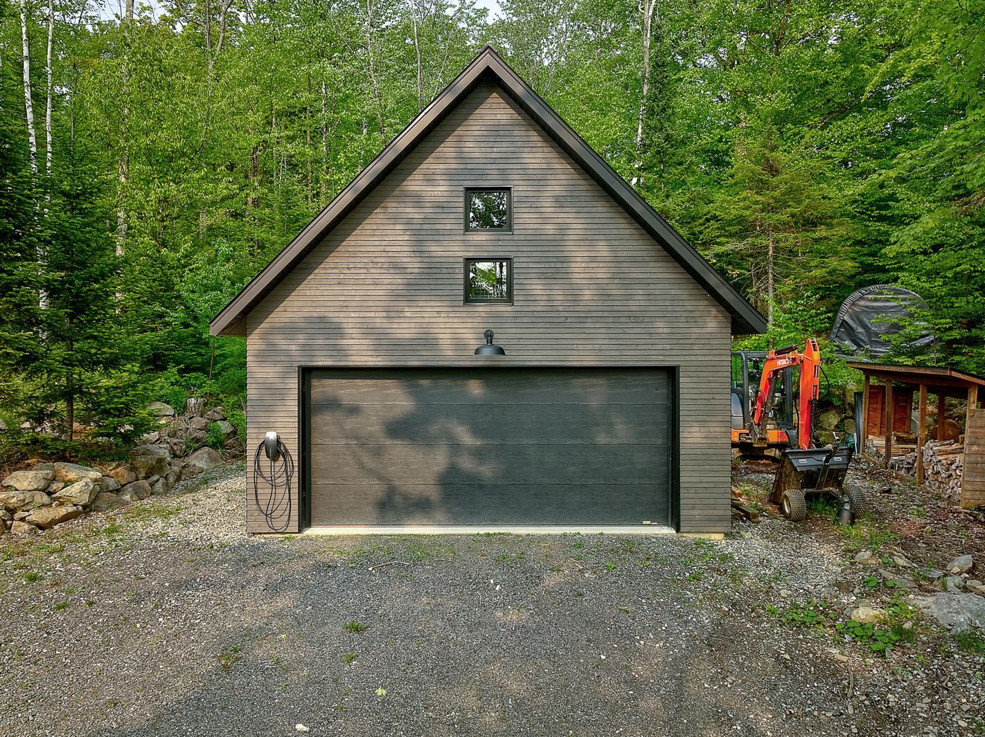 À l'extérieur, de grandes terrasses invitent à la détente avec spa Jacuzzi (4 à 6 personnes) et espace foyer. Le garage double détaché (20' x 24') dispose d'un établi, d'un ouvre-porte commercial et d'une borne de recharge pour véhicule électrique.