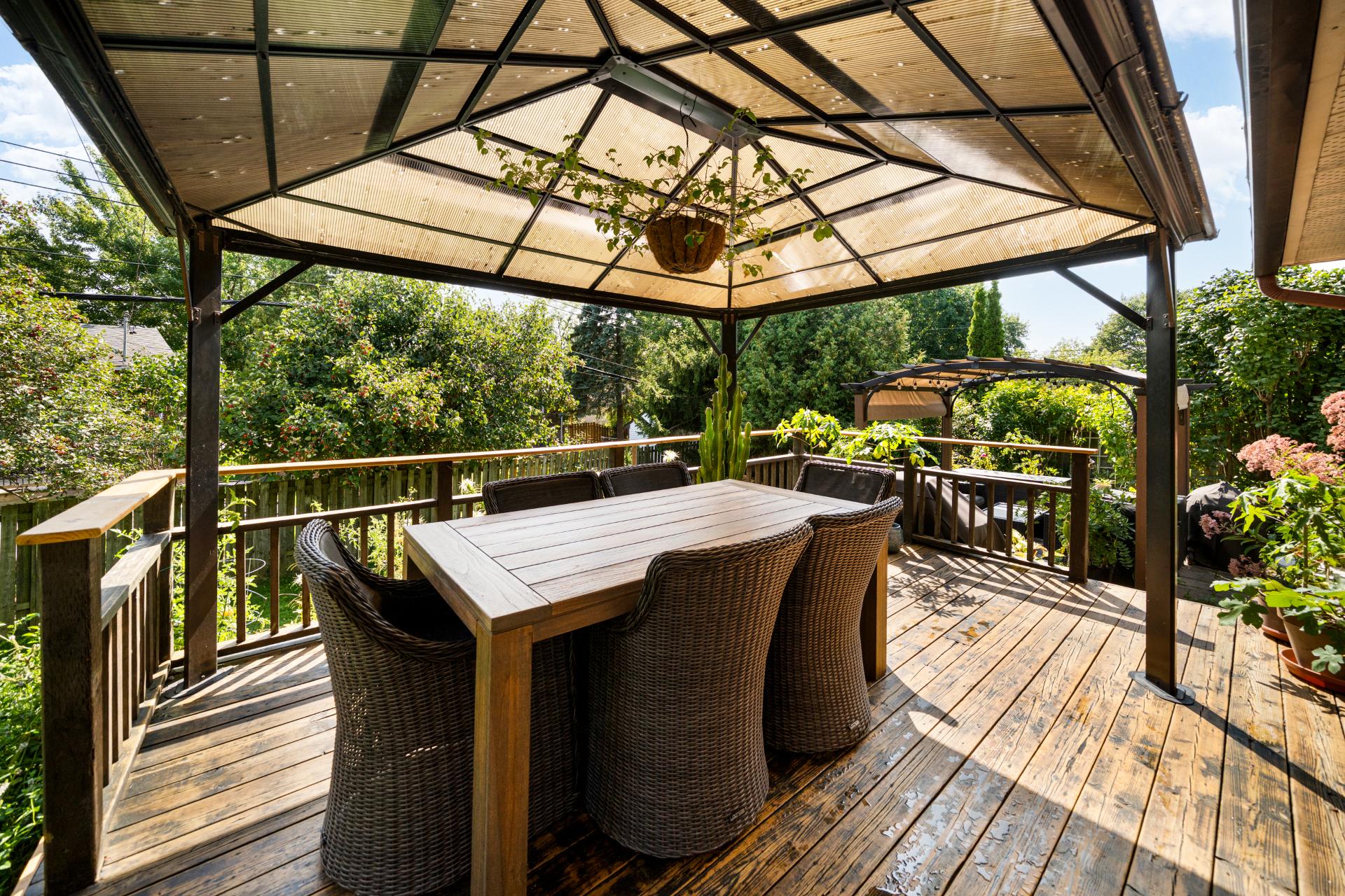 Cette propriété bien entretenue offre une configuration fonctionnelle adaptée à différents modes de vie. Le rez-de-chaussée comprend des espaces de vie et de salle à manger lumineux, ainsi qu'une cuisine située au coeur des aires de vie. Un grand gazebo aménagé directement à l'extérieur des portes-patio prolonge l'espace de vie durant la saison estivale. Une salle d'eau et la salle de lavage sont également situées à ce niveau.