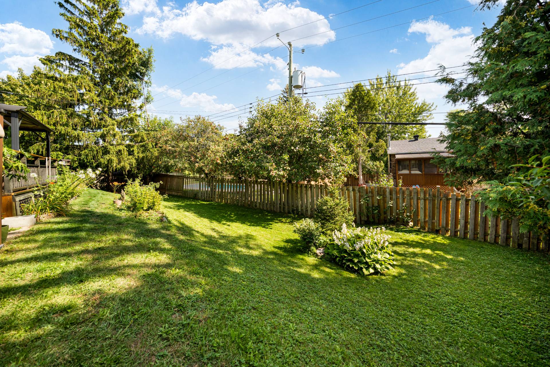 - Laveuse, sécheuse, réfrigérateur, cuisinière, lave-vaisselle, deux pergolas dans la cour arrière (vendues sans garantie), foyer électrique dans la chambre principale, luminaires, habillages de fenêtres.