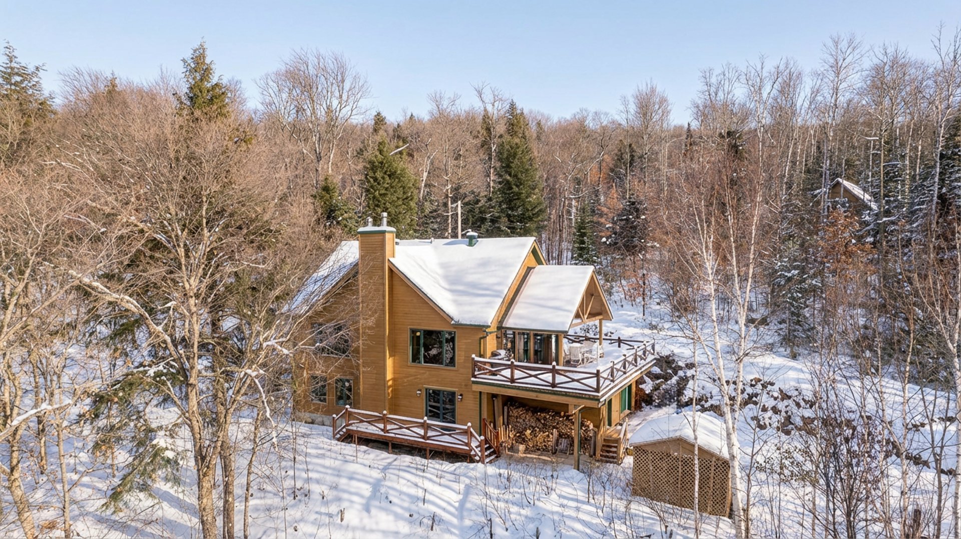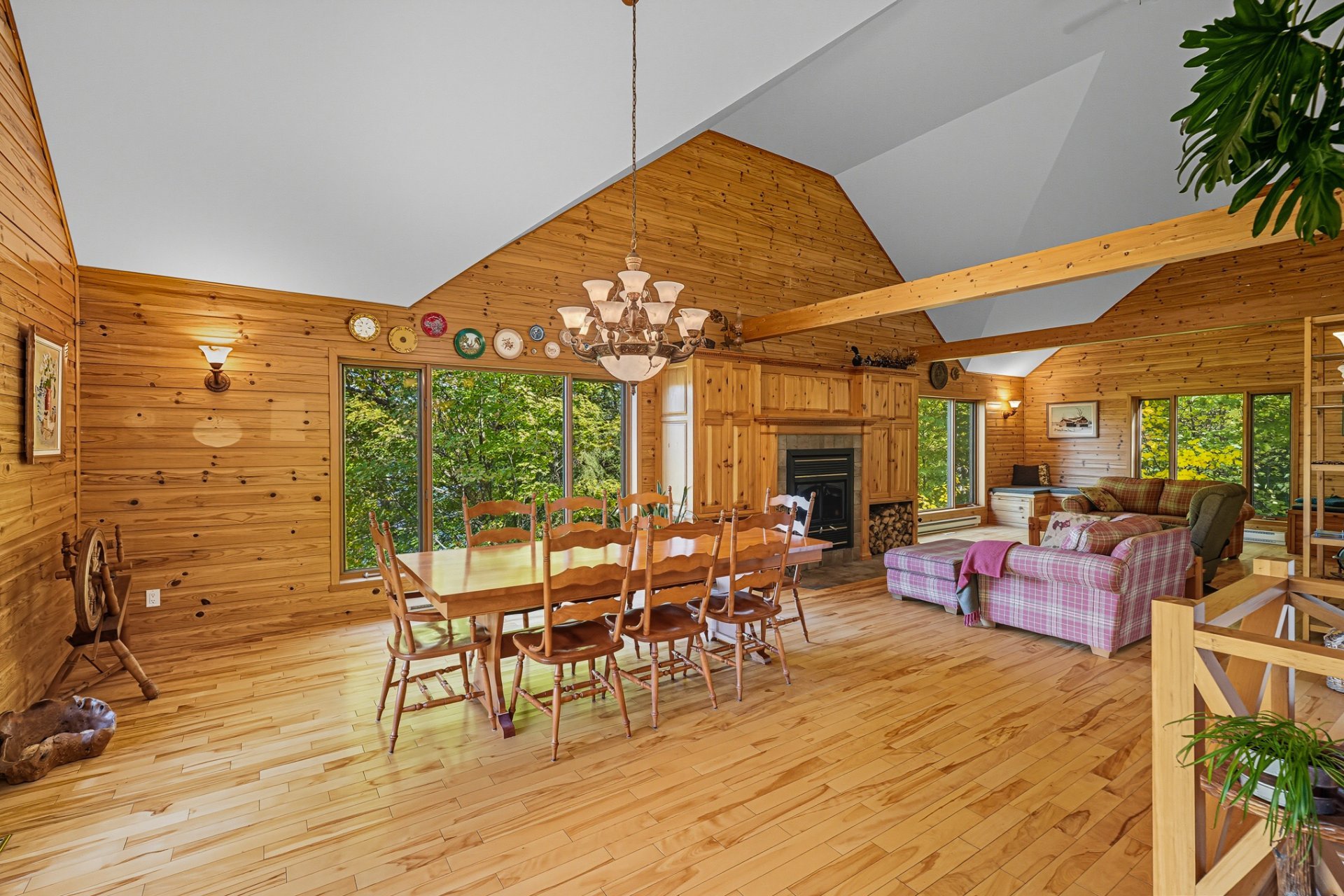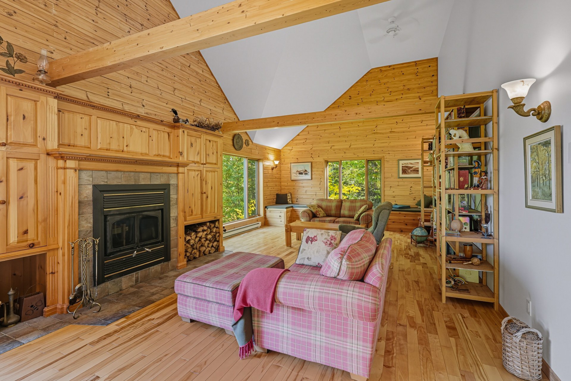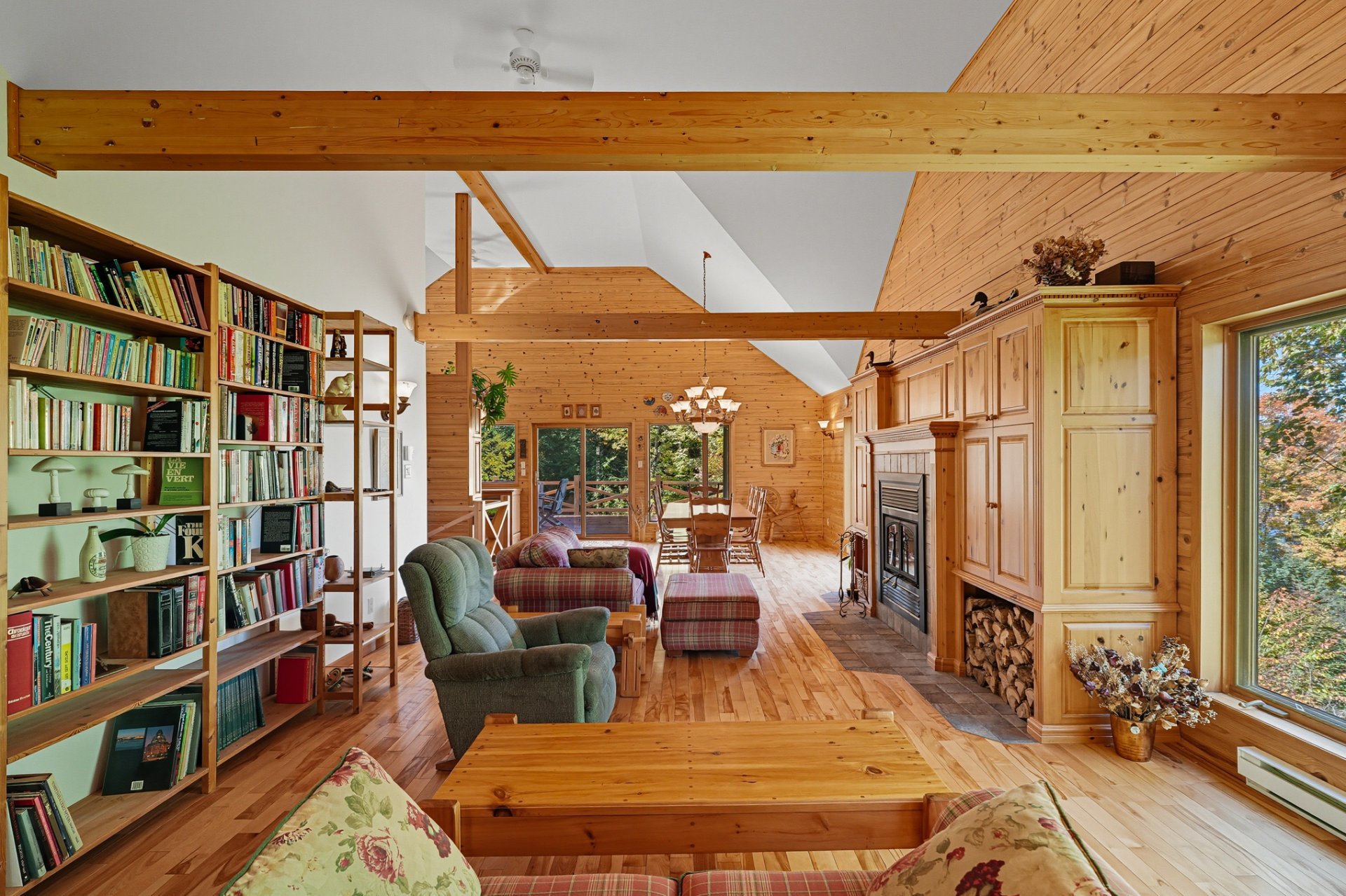 Nichée dans un environnement boisé et vallonné, cette résidence se distingue par son charme scandinave et ses espaces baignés de lumière. Son intérieur à aire ouverte met en valeur un vaste foyer central, une cuisine conviviale et de grandes surfaces en bois qui confèrent à l'ensemble une ambiance authentique et apaisante.