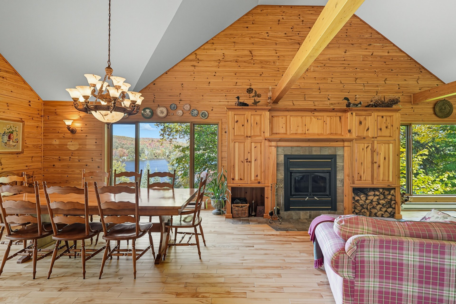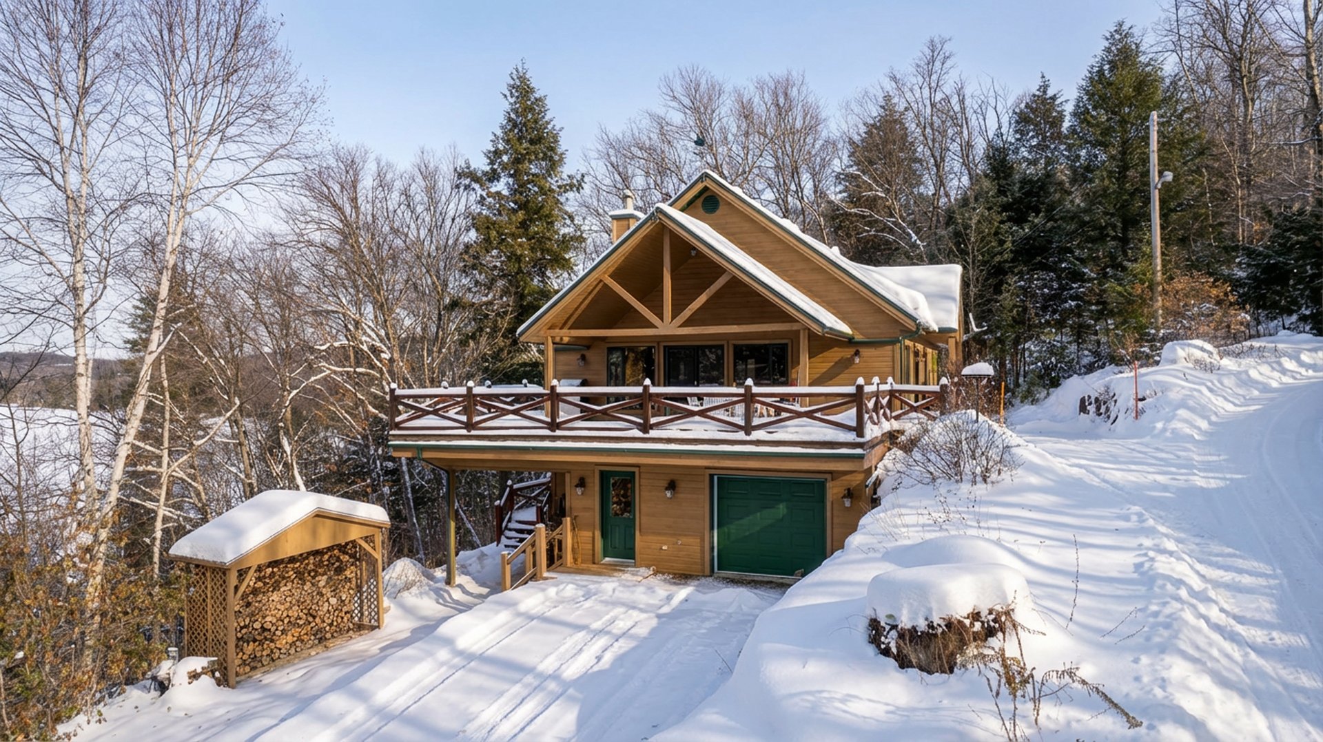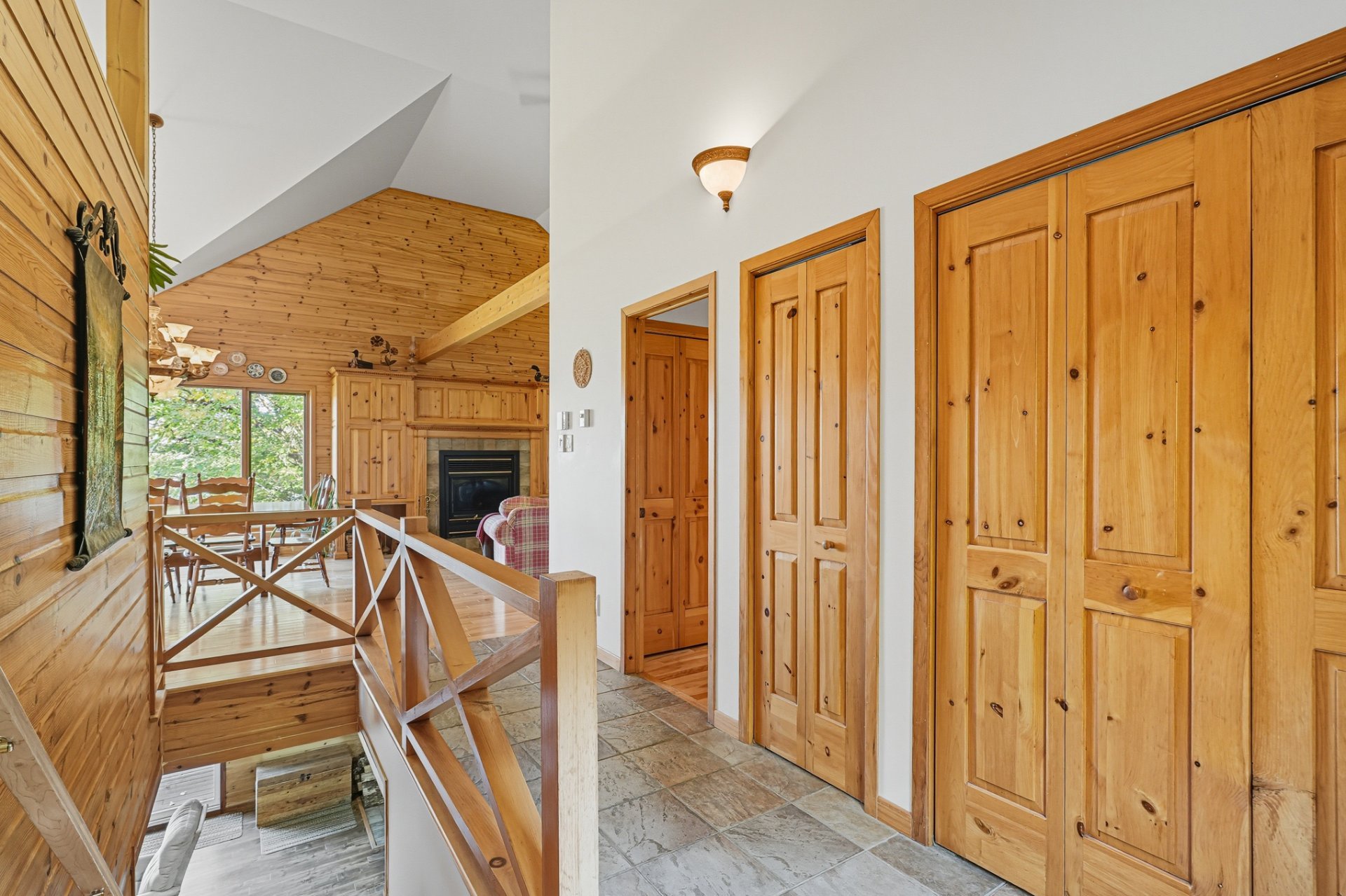 Nichée dans un environnement boisé et vallonné, cette résidence se distingue par son charme scandinave et ses espaces baignés de lumière. Son intérieur à aire ouverte met en valeur un vaste foyer central, une cuisine conviviale et de grandes surfaces en bois qui confèrent à l'ensemble une ambiance authentique et apaisante.