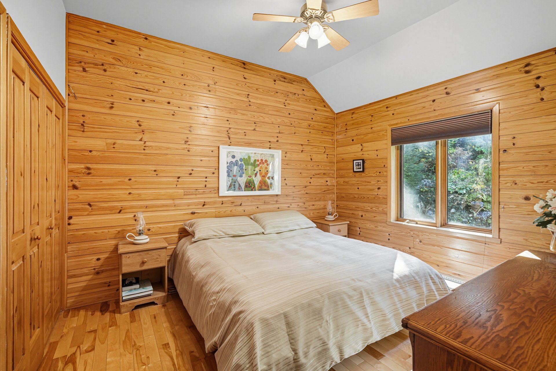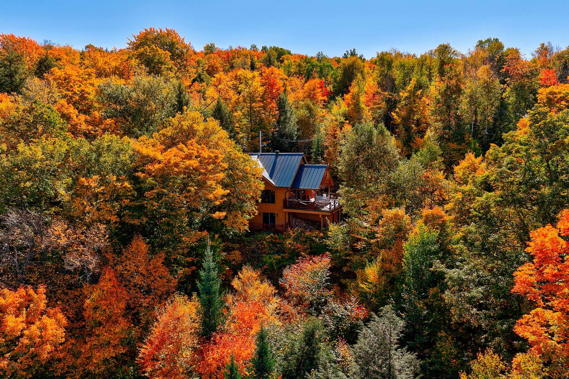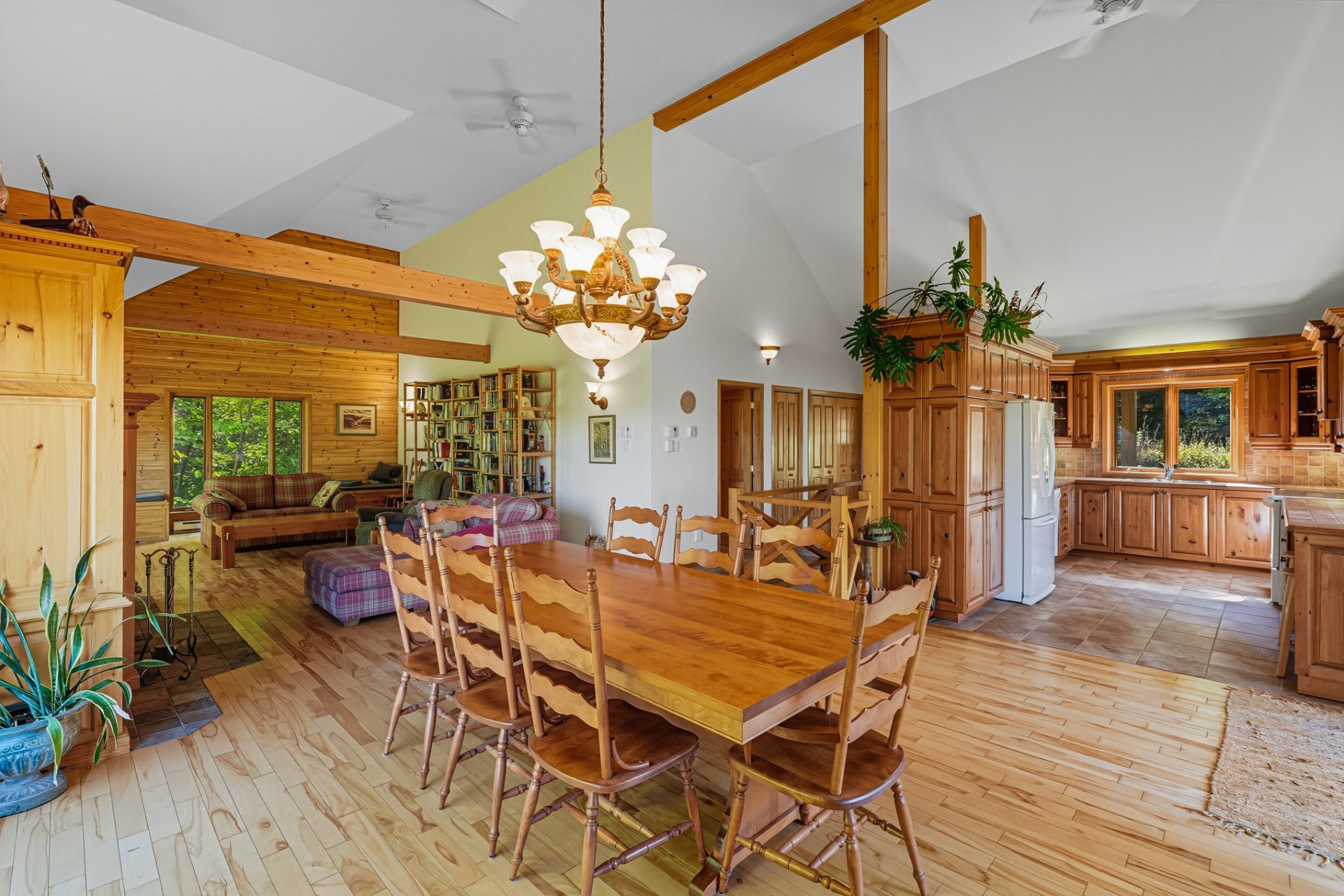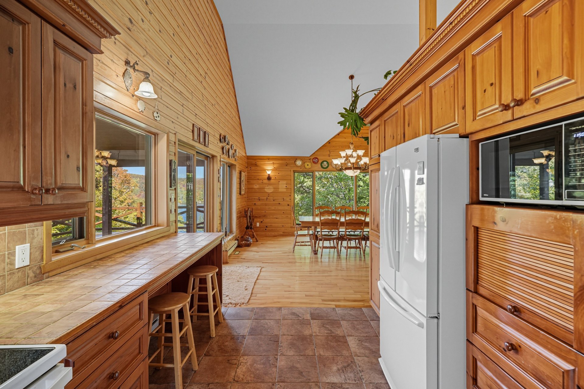 Nichée dans un environnement boisé et vallonné, cette résidence se distingue par son charme scandinave et ses espaces baignés de lumière. Son intérieur à aire ouverte met en valeur un vaste foyer central, une cuisine conviviale et de grandes surfaces en bois qui confèrent à l'ensemble une ambiance authentique et apaisante.